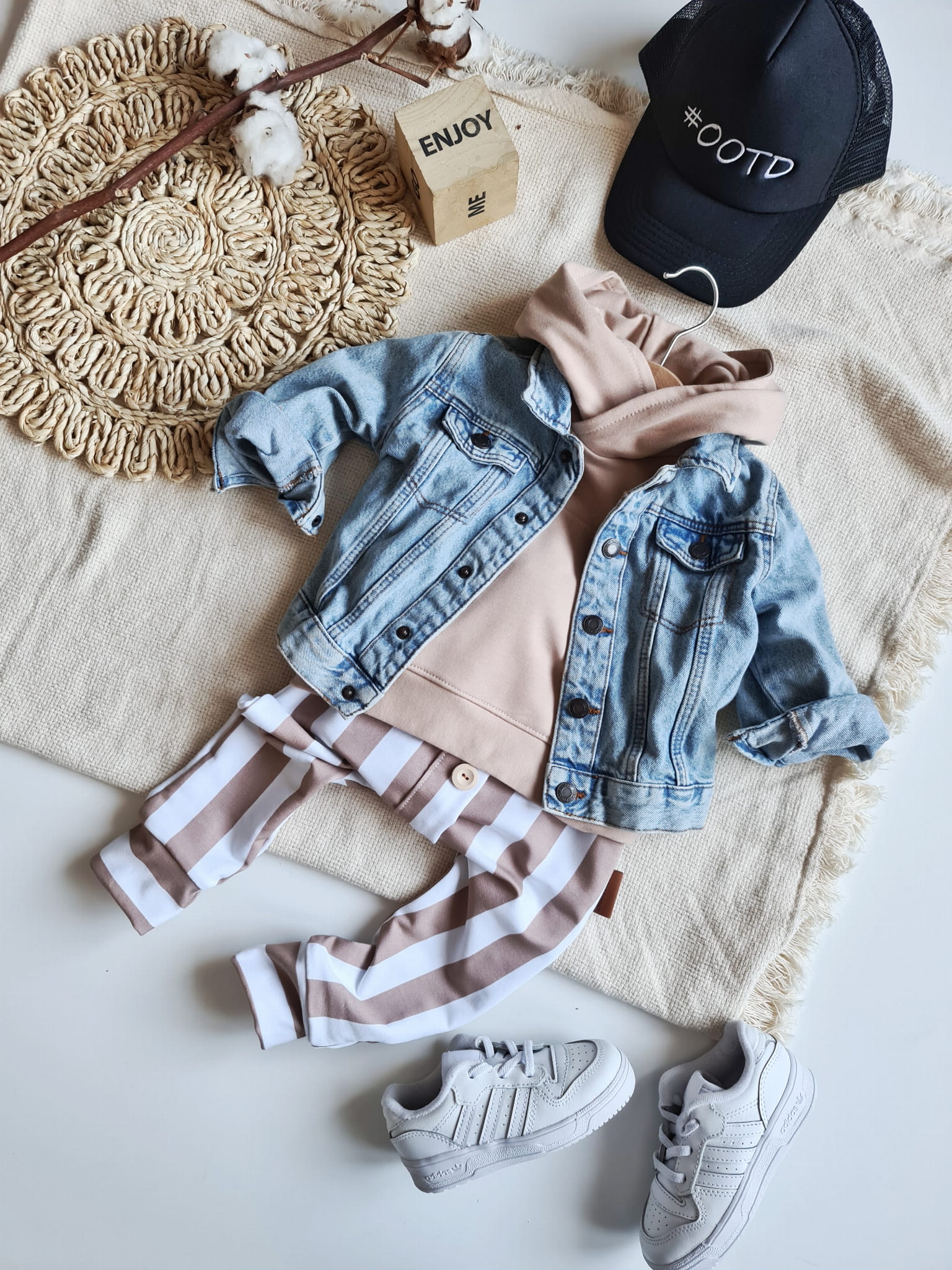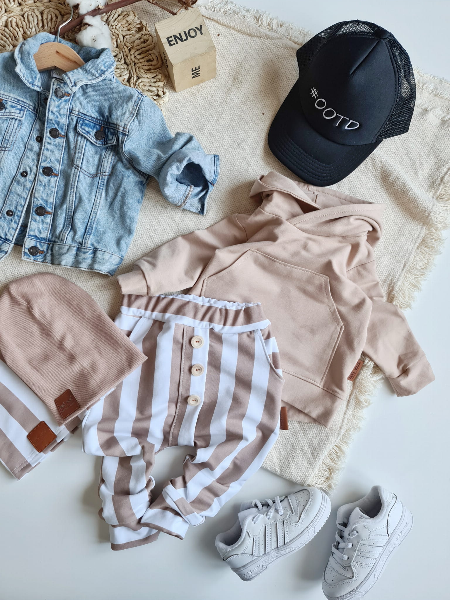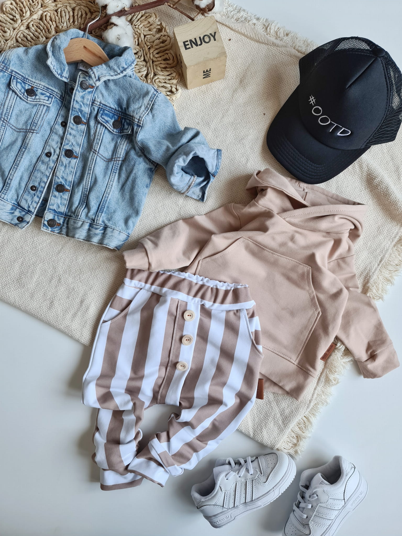 Baggy dziecięce wykonane z dzianiny dresowej.