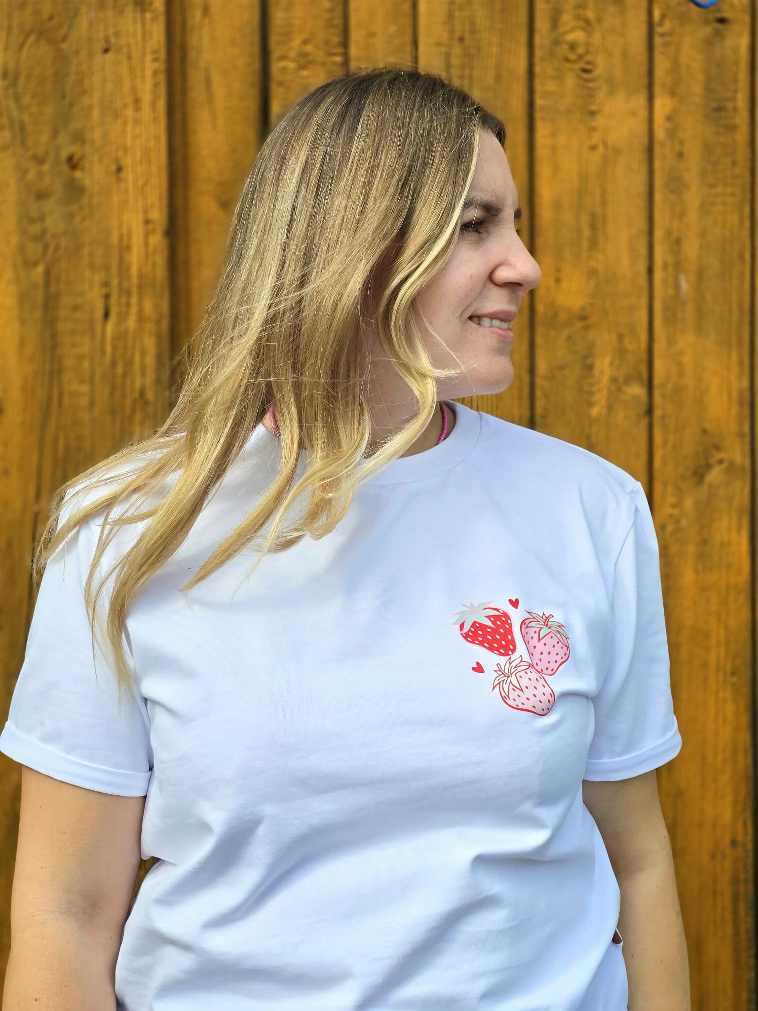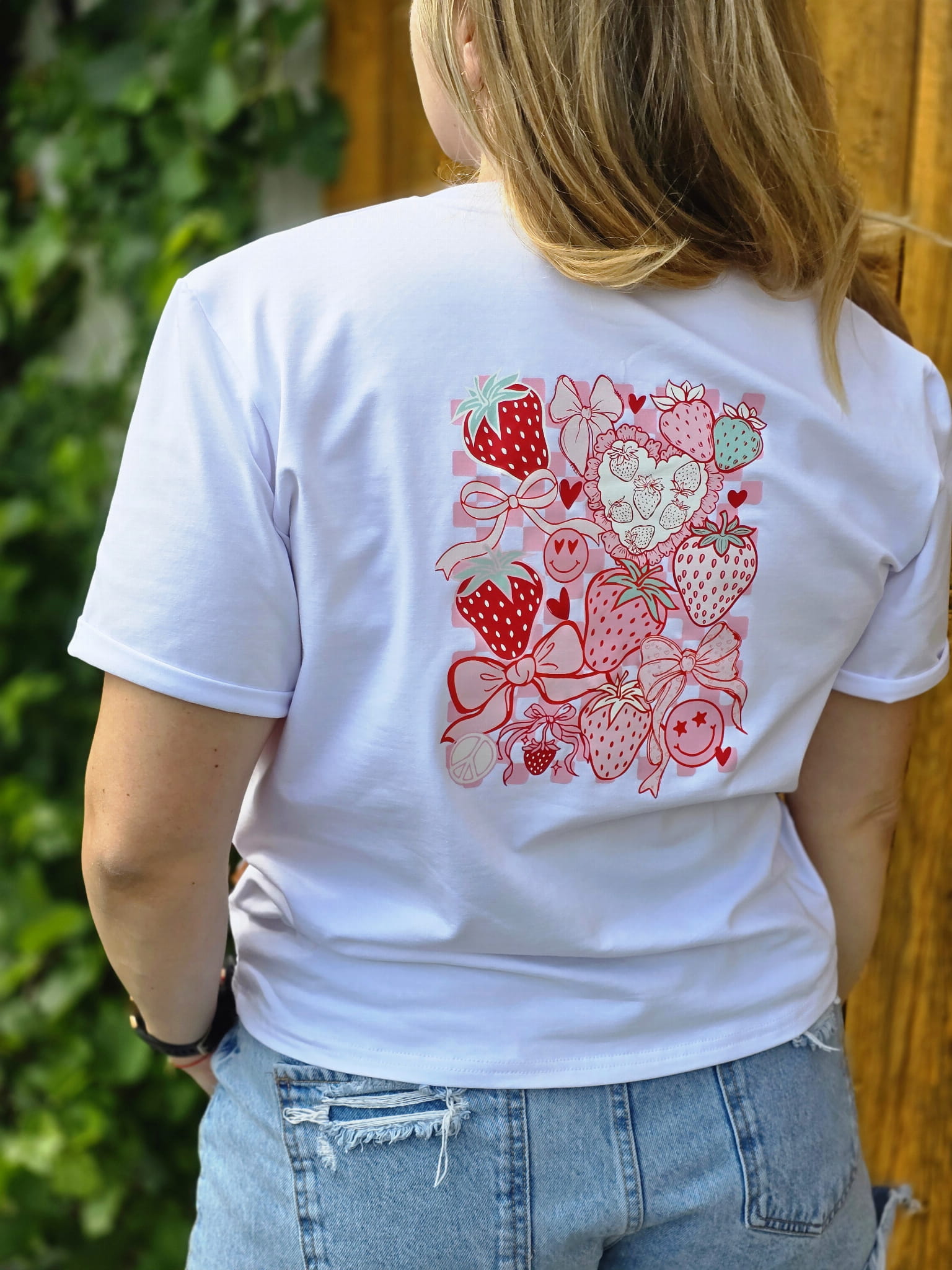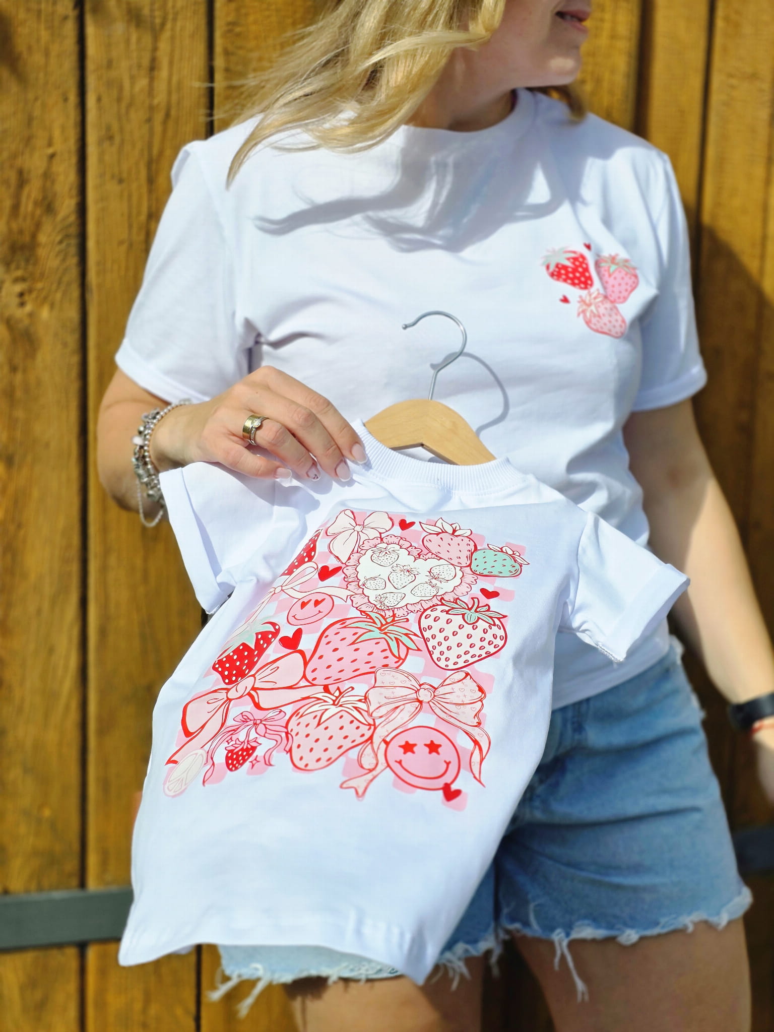 Szukasz wygodnej i kobiecej bluzki na co dzień, która będzie pasować także do wersji dziecięcej? Nasza biała bluzka dla mamy z nadrukiem truskawek to propozycja stworzona z myślą o mamach, które lubią wygodę, jakość i rodzinne zestawy. Wykonana z miękkiej dzianiny jersey (92% bawełna, 8% elastan), doskonała zarówno na lato, jak i pod kardigan w chłodniejsze dni.