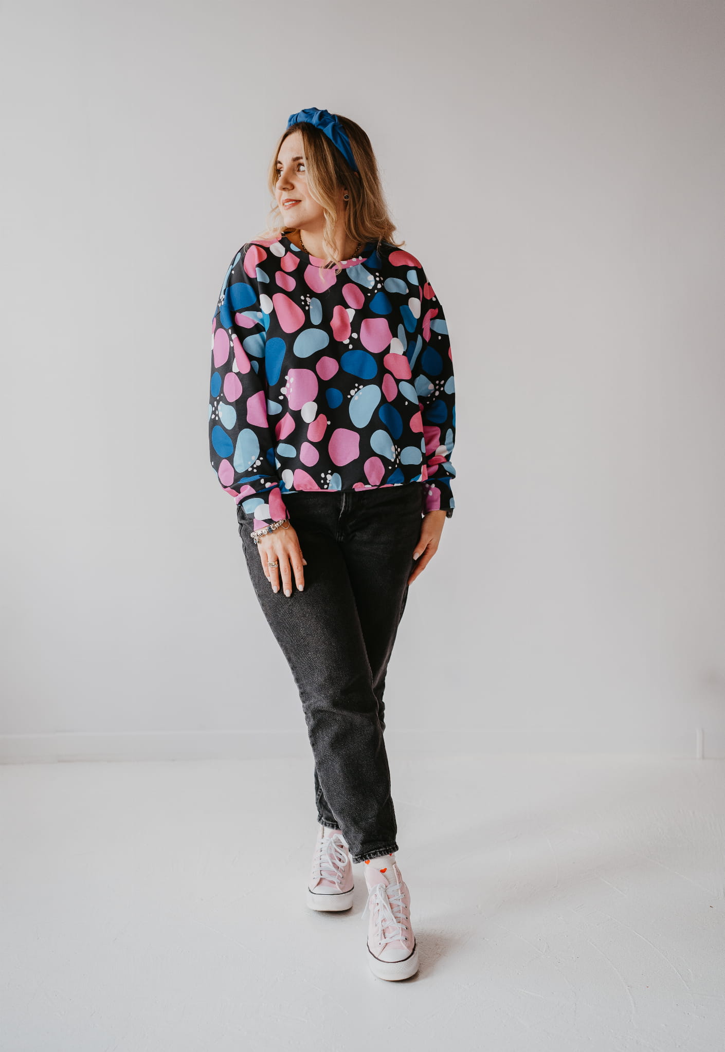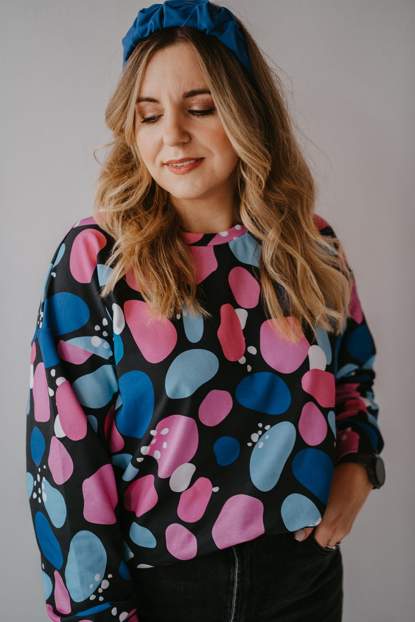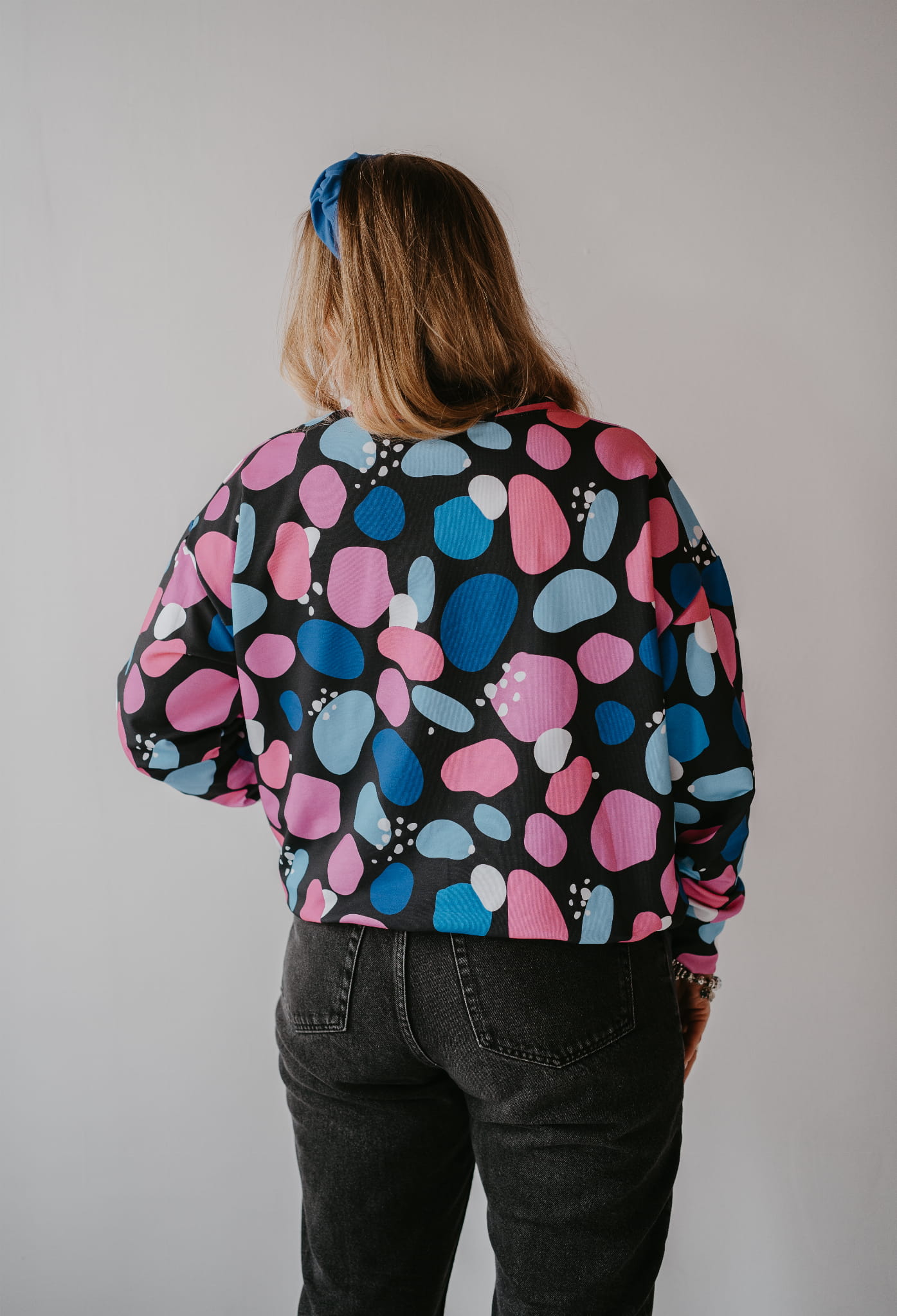 Postaw na styl i wygodę z naszą bluzą oversize „Kamyki”! To idealny wybór dla kobiet ceniących swobodny, ale zarazem wyjątkowy look. Abstrakcyjny wzór w odcieniach różu, niebieskiego i czerni sprawia, że bluza wyróżnia się na tle klasycznych stylizacji. Możesz ją nosić na co dzień, do pracy, na spotkania z przyjaciółmi czy rodzinne wyjścia.