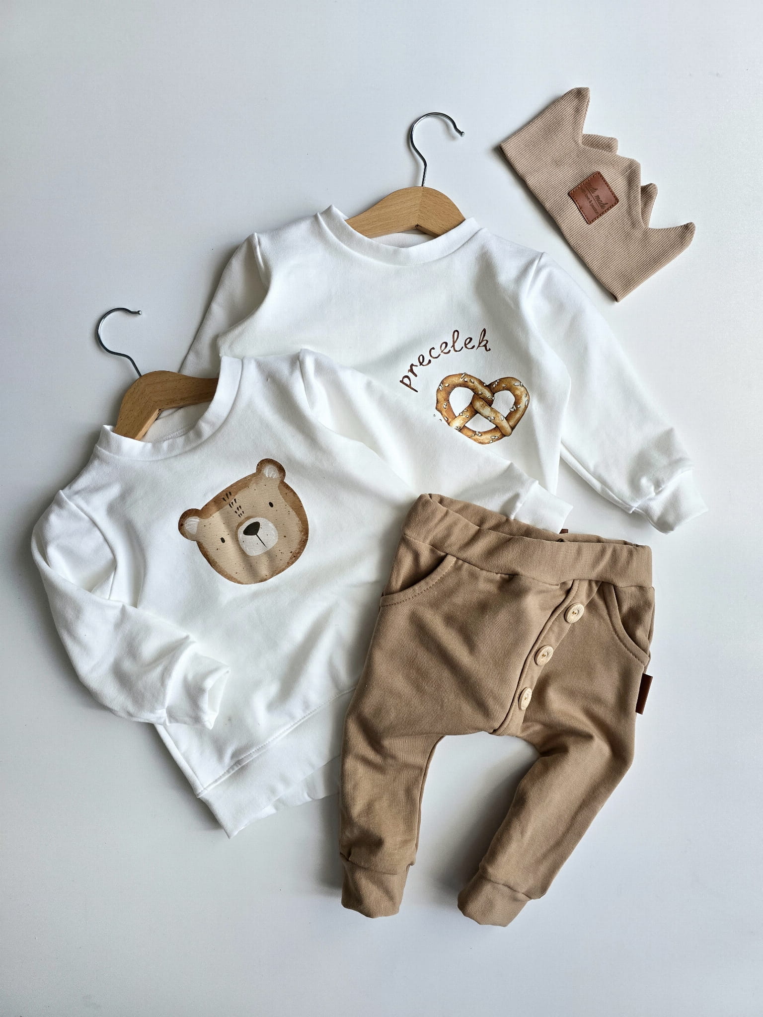 Wszystkie nasze ubrania szyjemy w naszej pracowni w Polsce, co zapewnia najwyższą jakość wykonania oraz dbałość o każdy detal. Bluza dziecięca "Precelek" w kolorze śmietankowym to doskonały wybór dla maluchów, które potrzebują zarówno komfortu, jak i stylu. Dzięki starannie dobranym materiałom i funkcjonalnemu designowi, bluza sprawdzi się zarówno w codziennym użytkowaniu, jak i podczas specjalnych okazji.