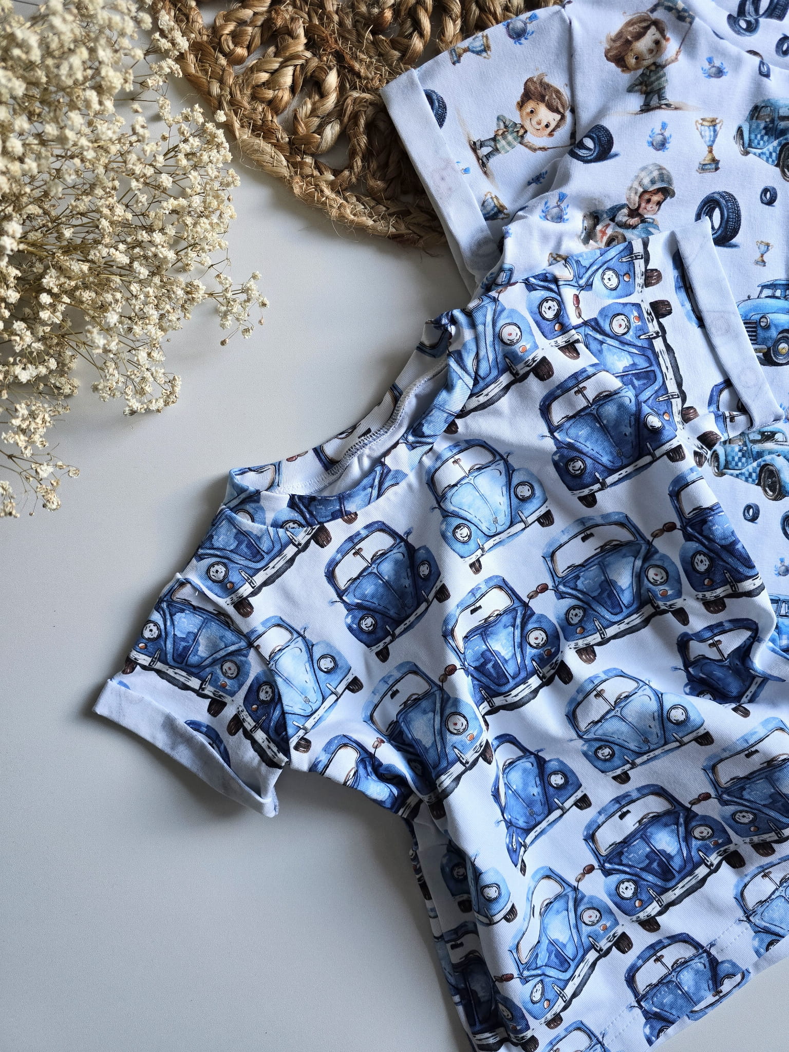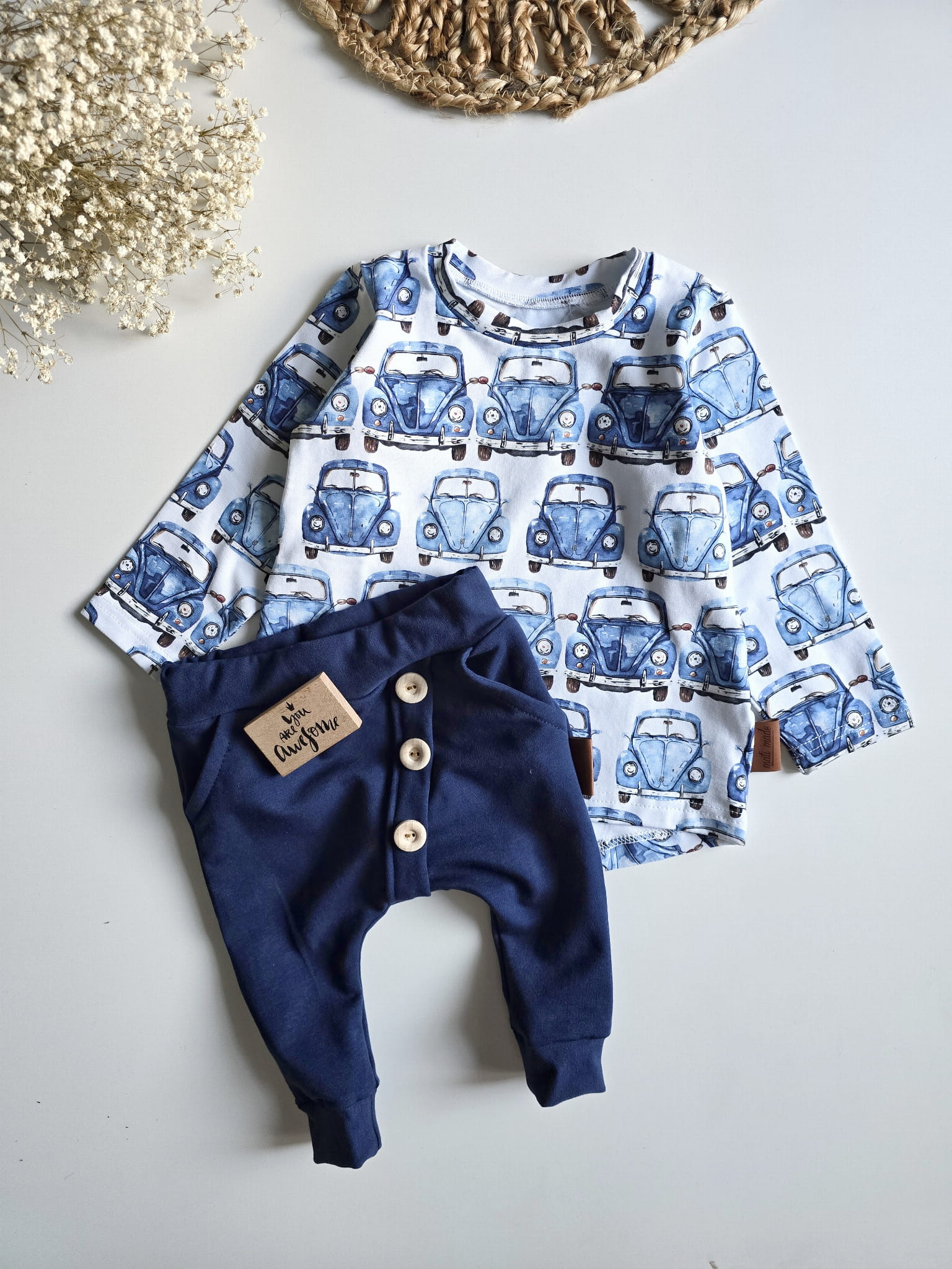 Bluzeczka "Garbuski" wyróżnia się oryginalnym wzorem z motywem kultowego samochodu – garbusa, co nadaje jej unikalny, retro charakter. Produkt dostępny jest w dwóch wariantach: jako klasyczny longsleeve lub jako body, co pozwala na dopasowanie do różnych potrzeb i stylizacji. Zarówno longsleeve, jak i body są łatwe w zakładaniu i zdejmowaniu, co jest niezwykle ważne przy ubieraniu małych dzieci.
