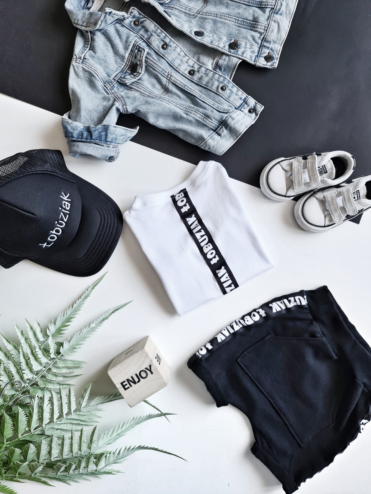 W skład kompletu wchodzi: bluzeczka krótki rękaw i baggy