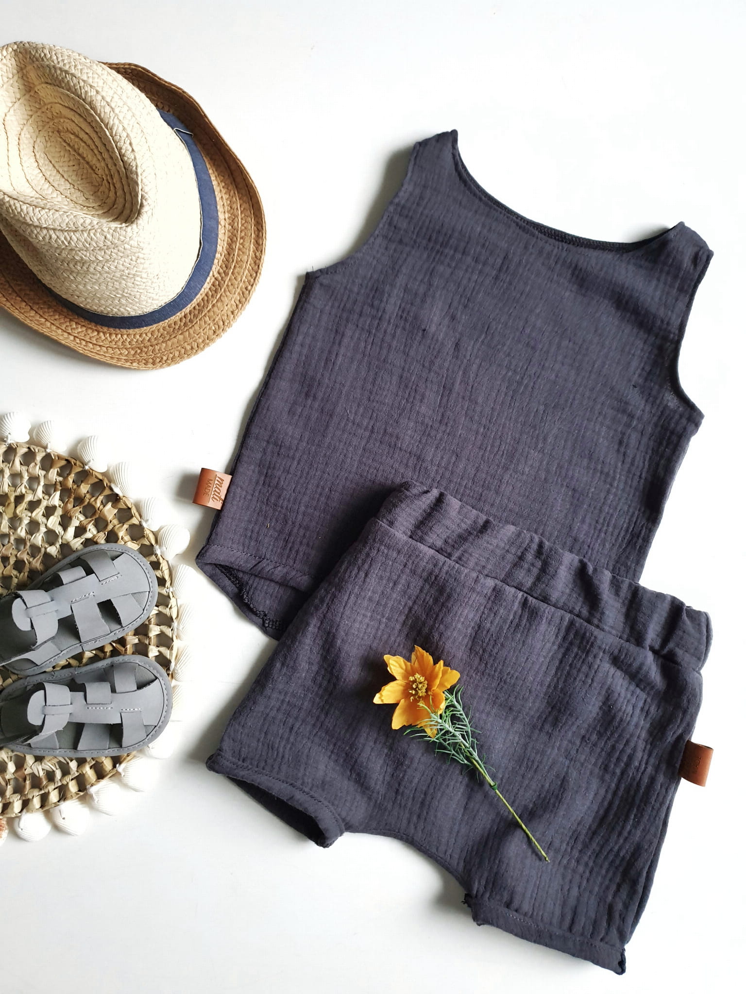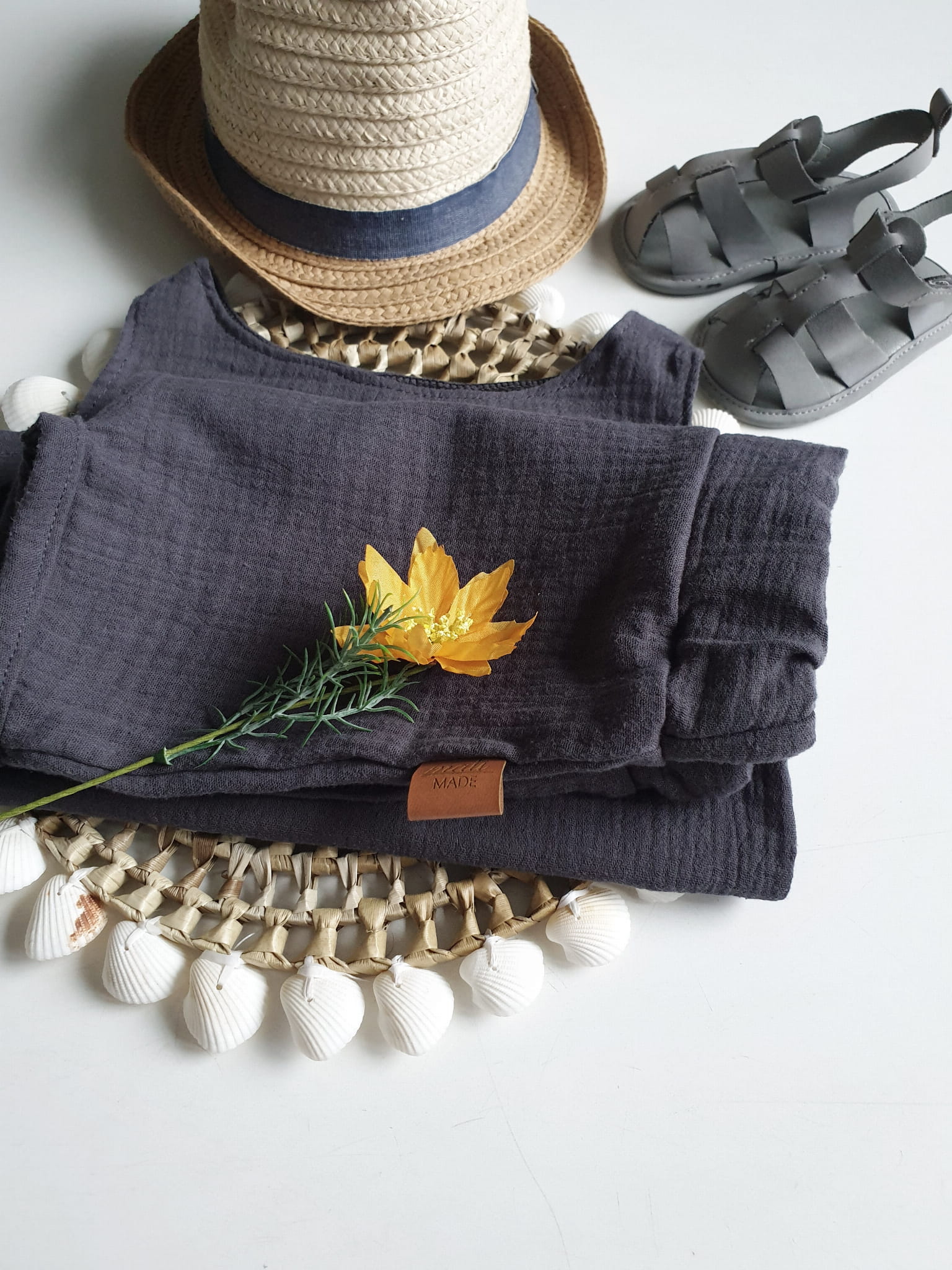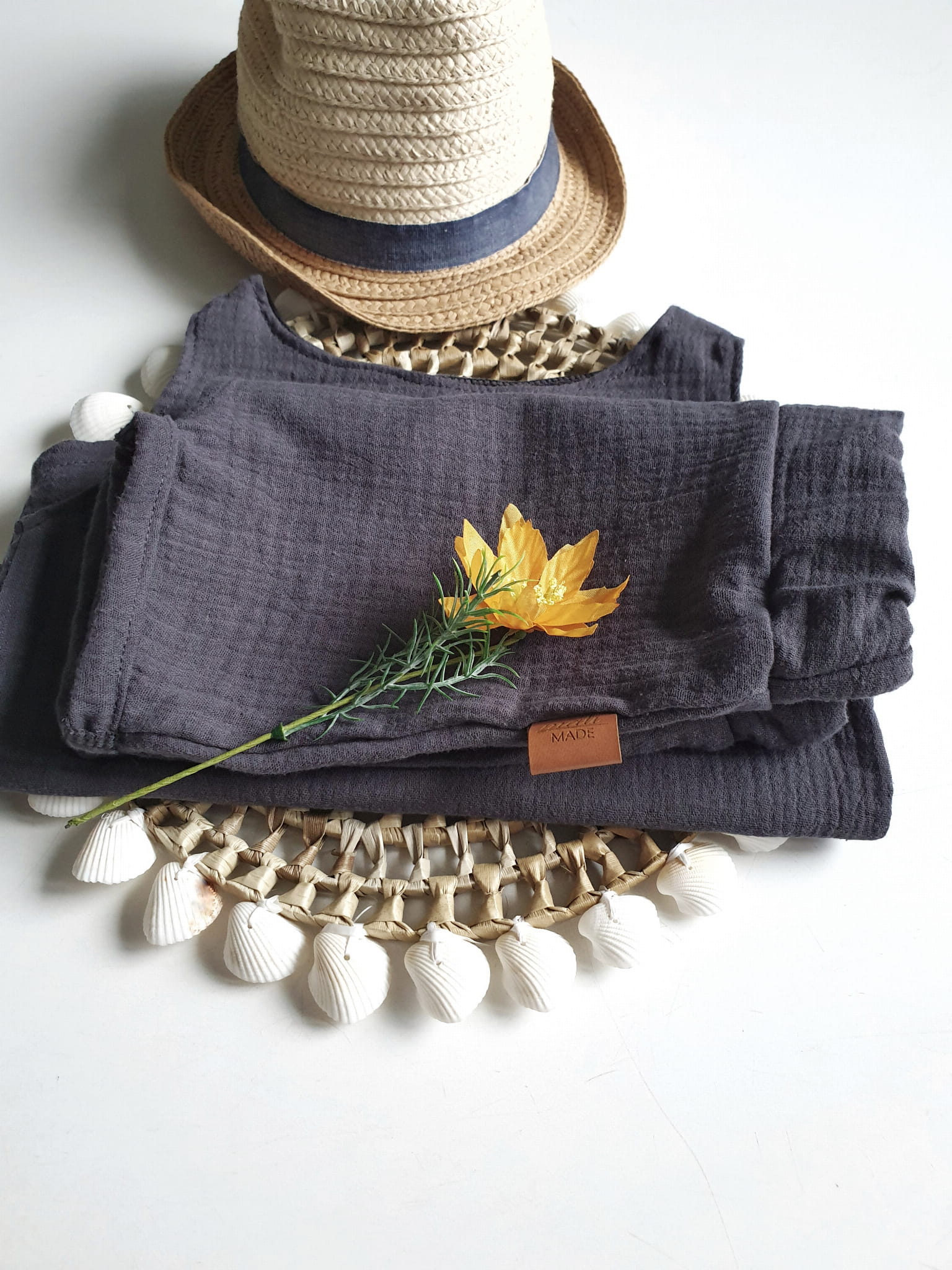 Komplet dziecięcy wykonany z muślinu bawelnianego.
