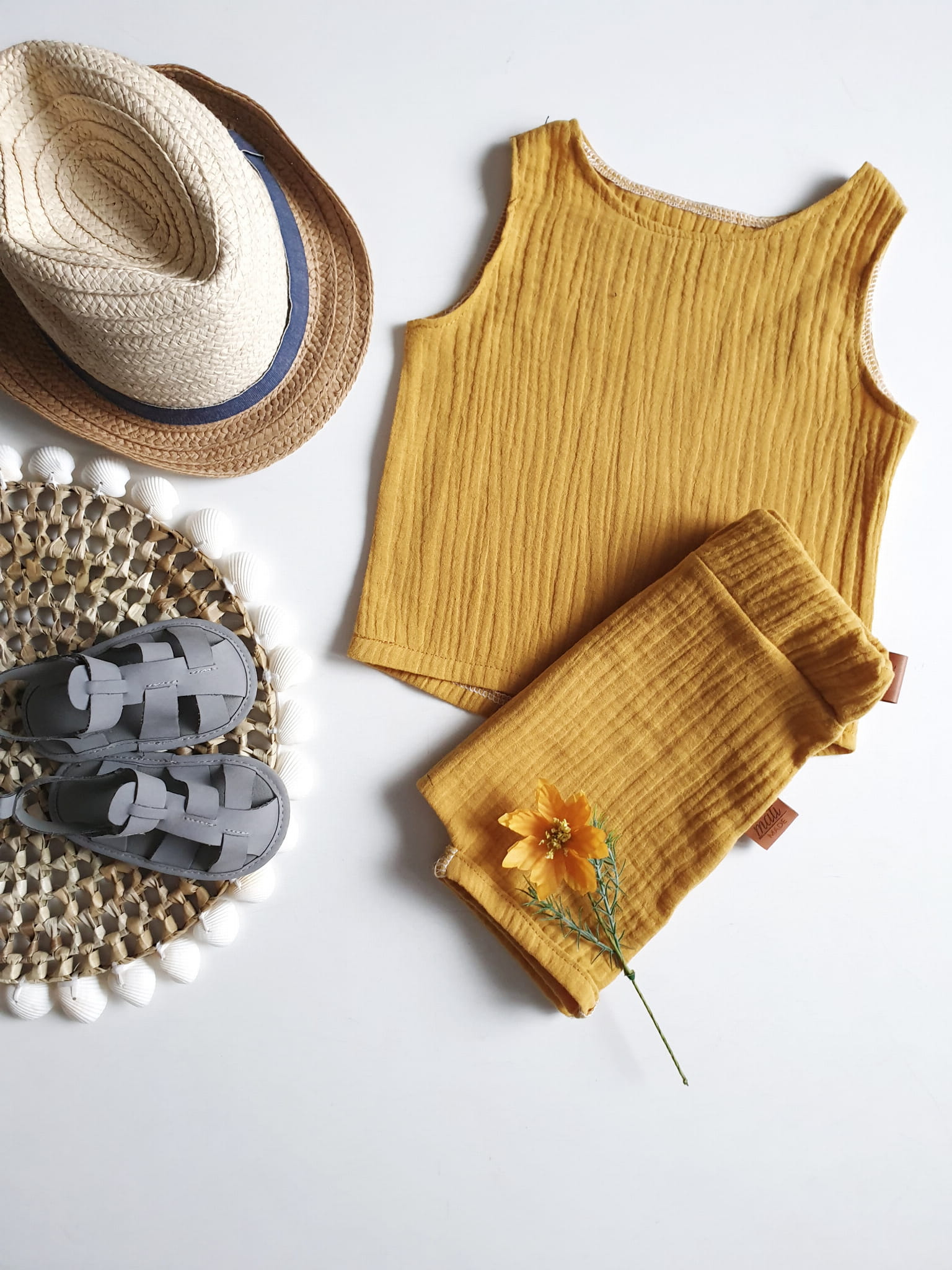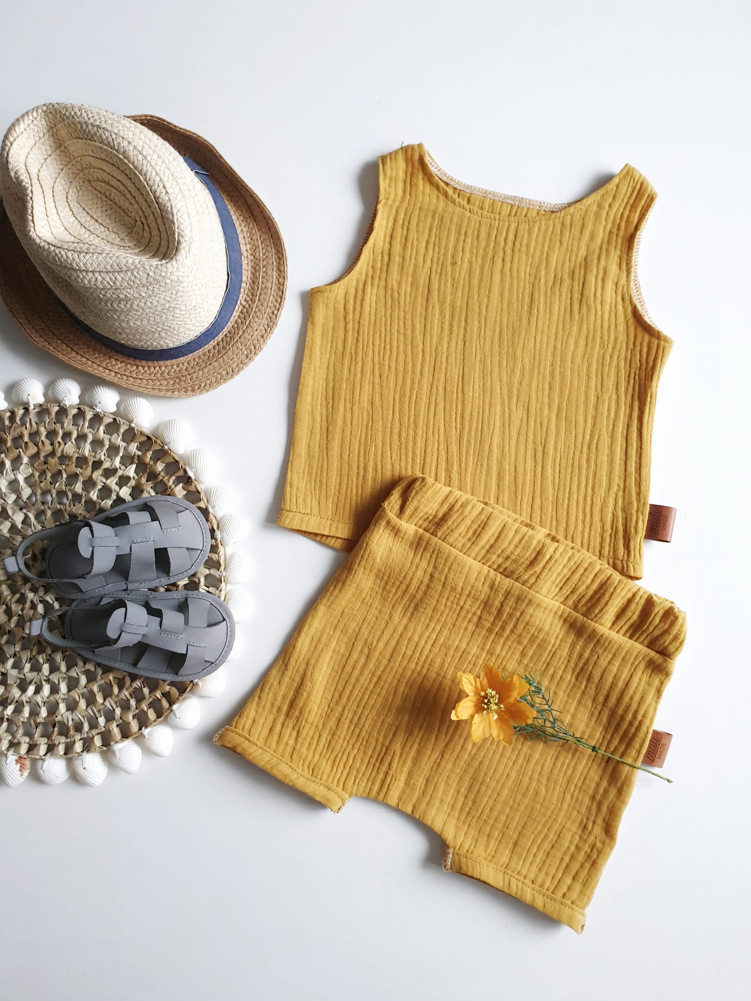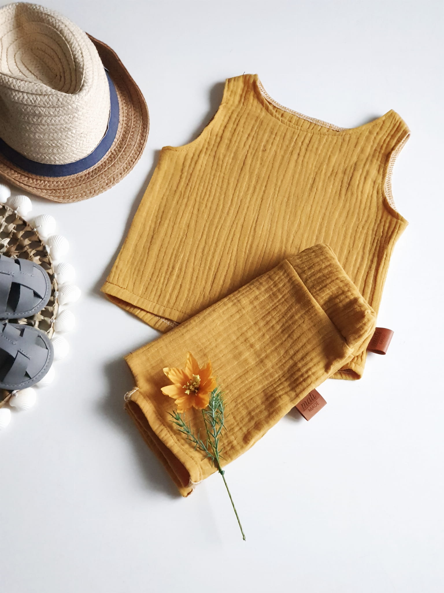Bluzeczka tshirt i szorty Muślin musztarda