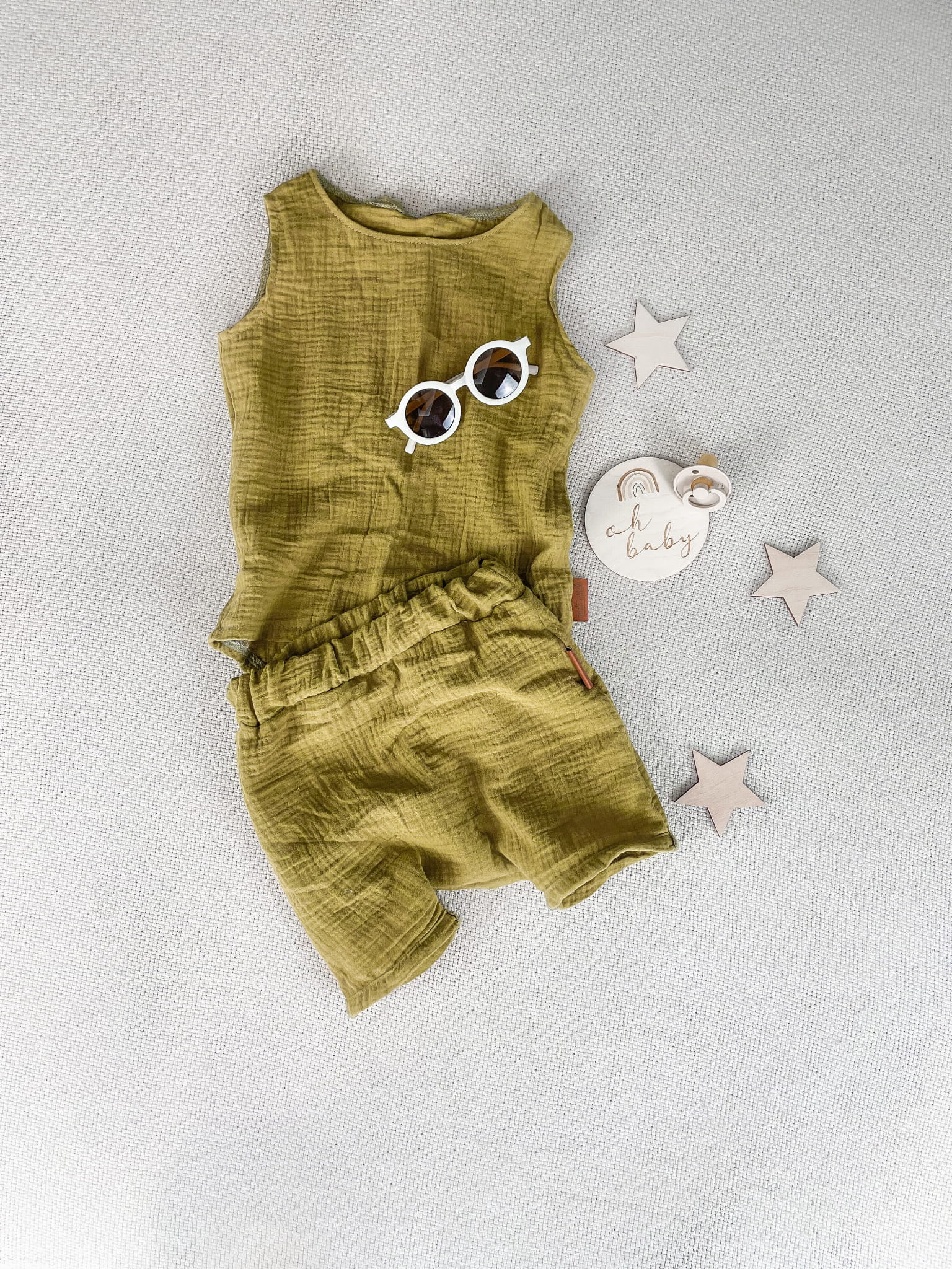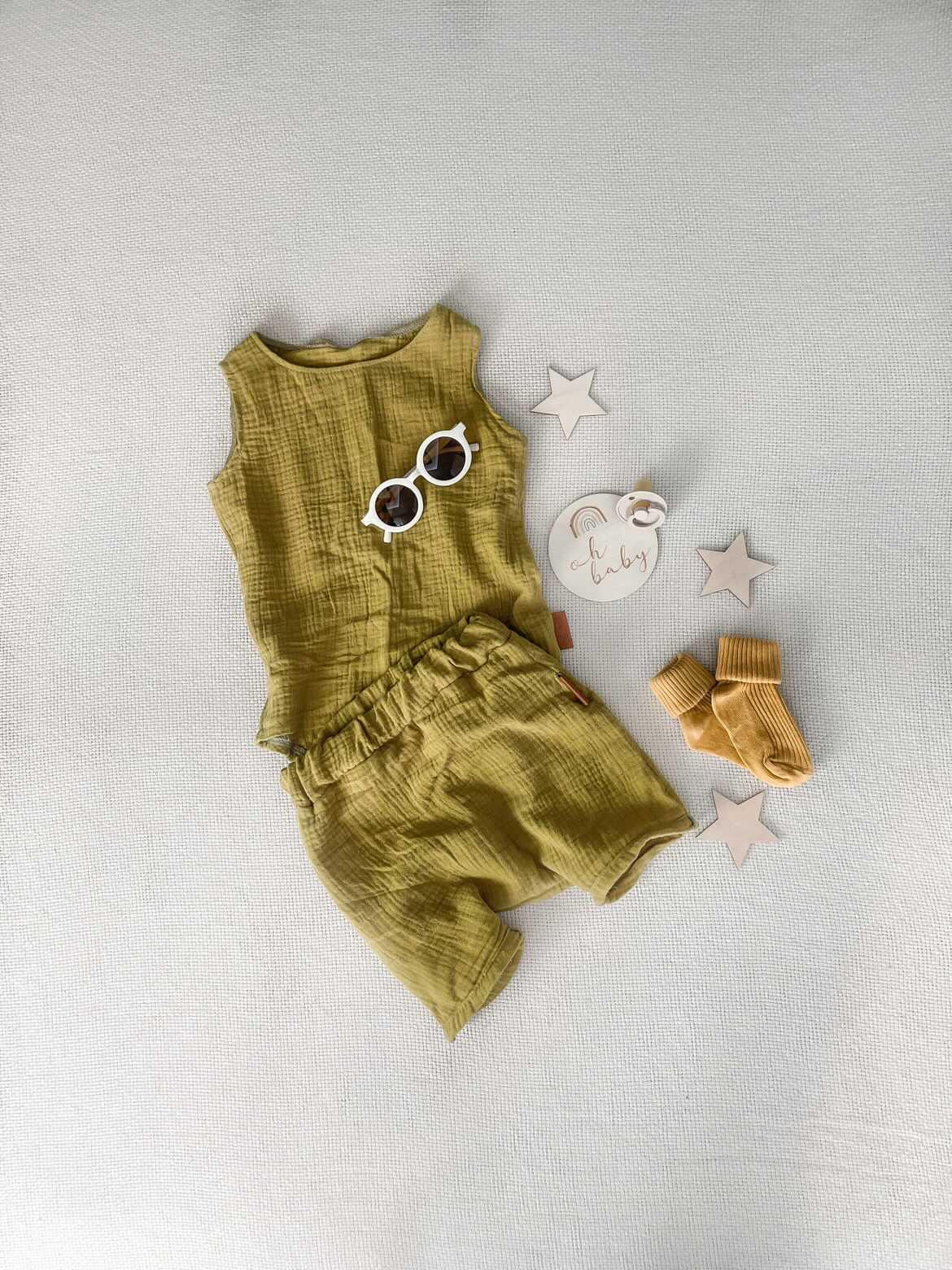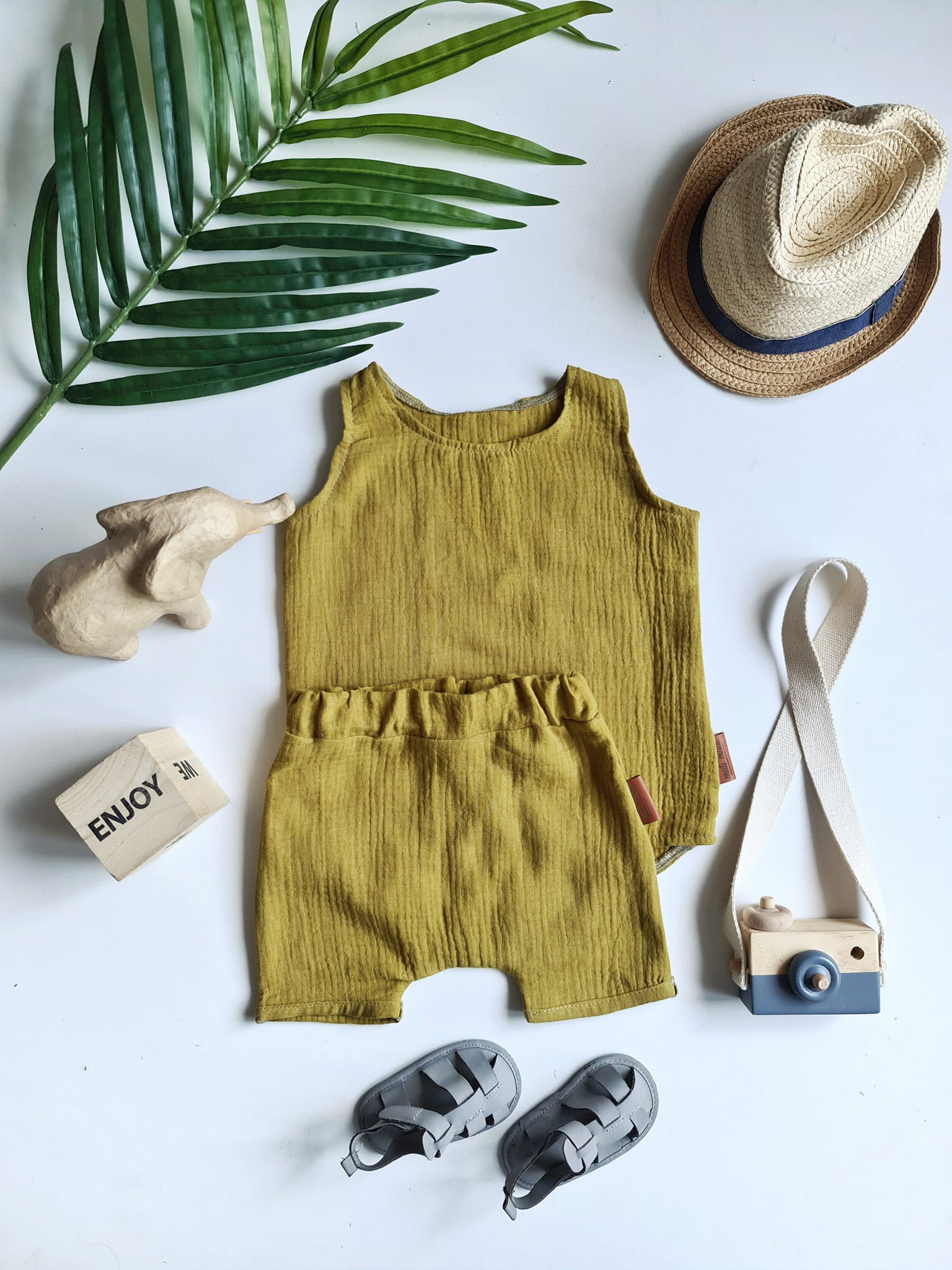 Komplet dziecięcy wykonany z muślinu bawelnianego.