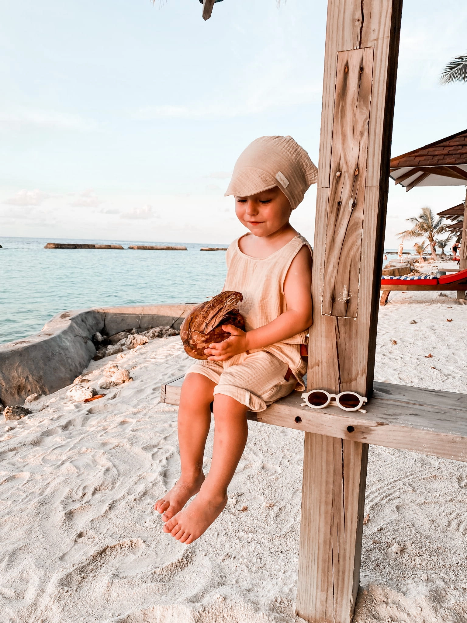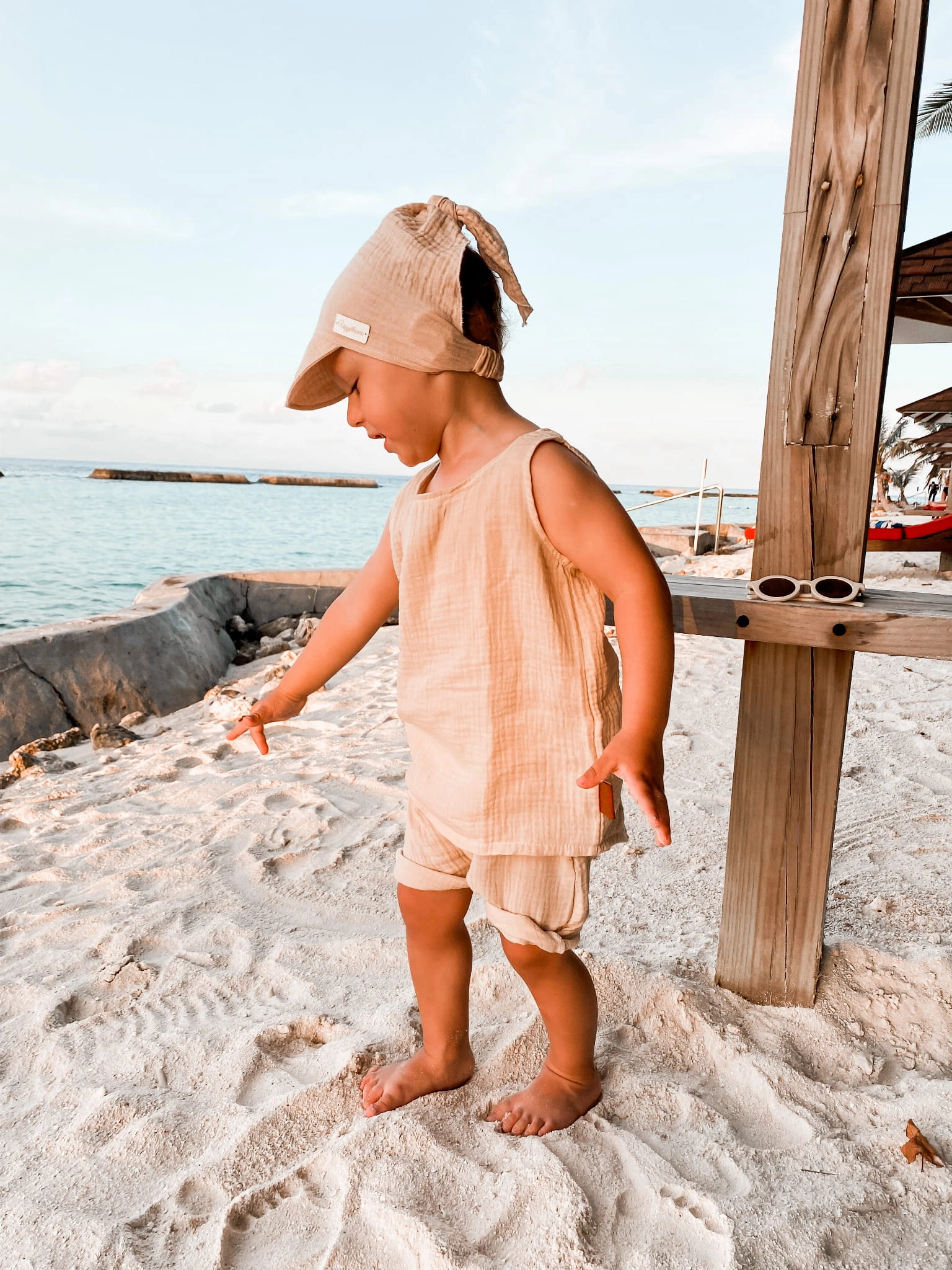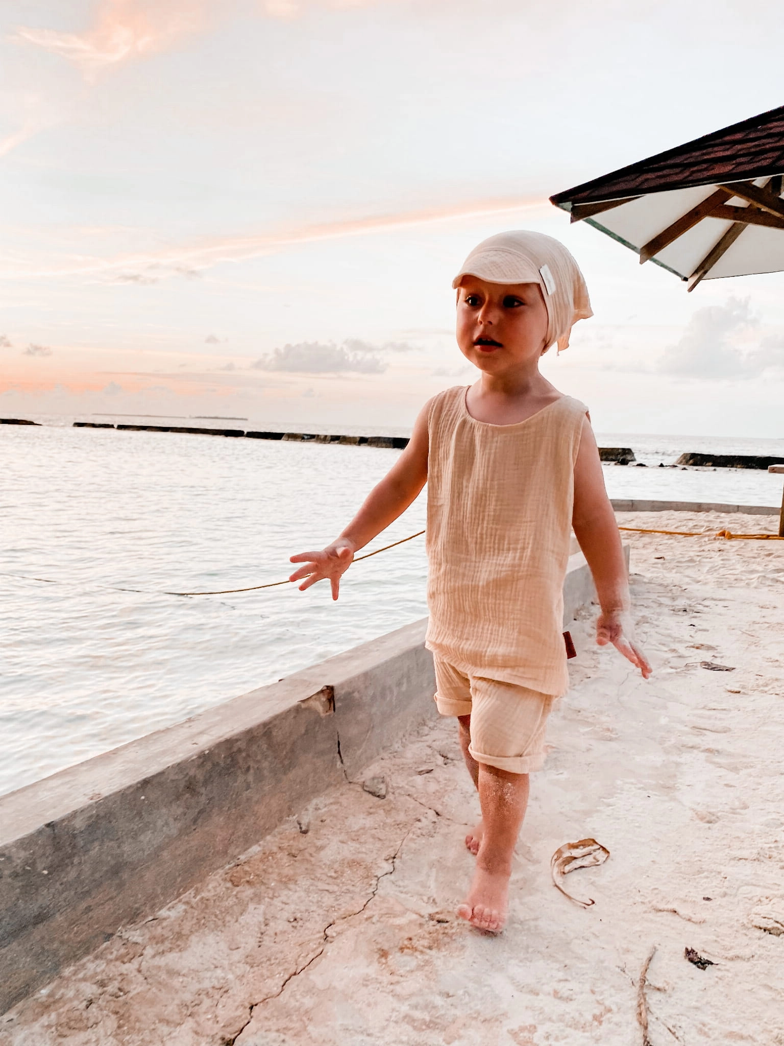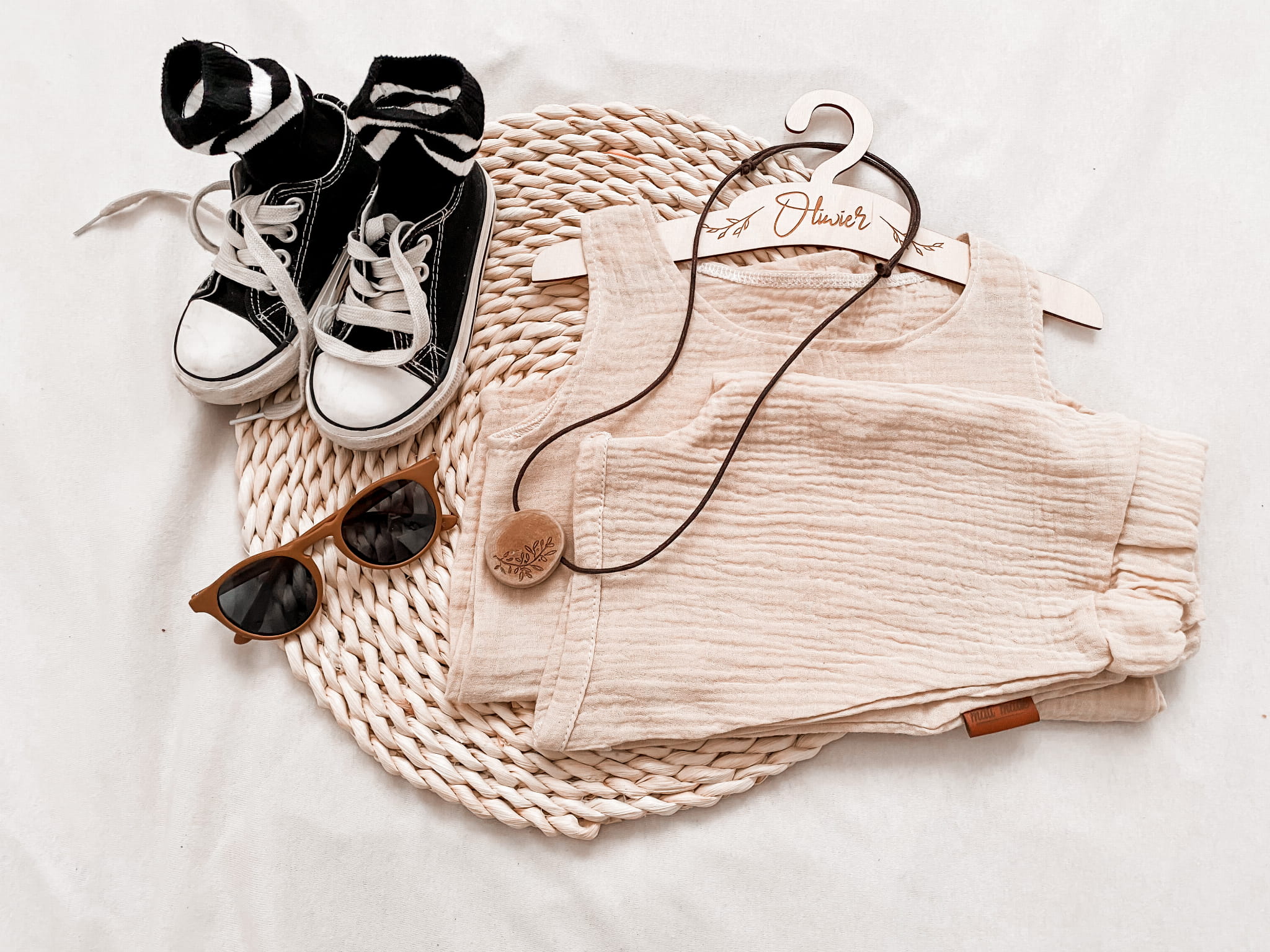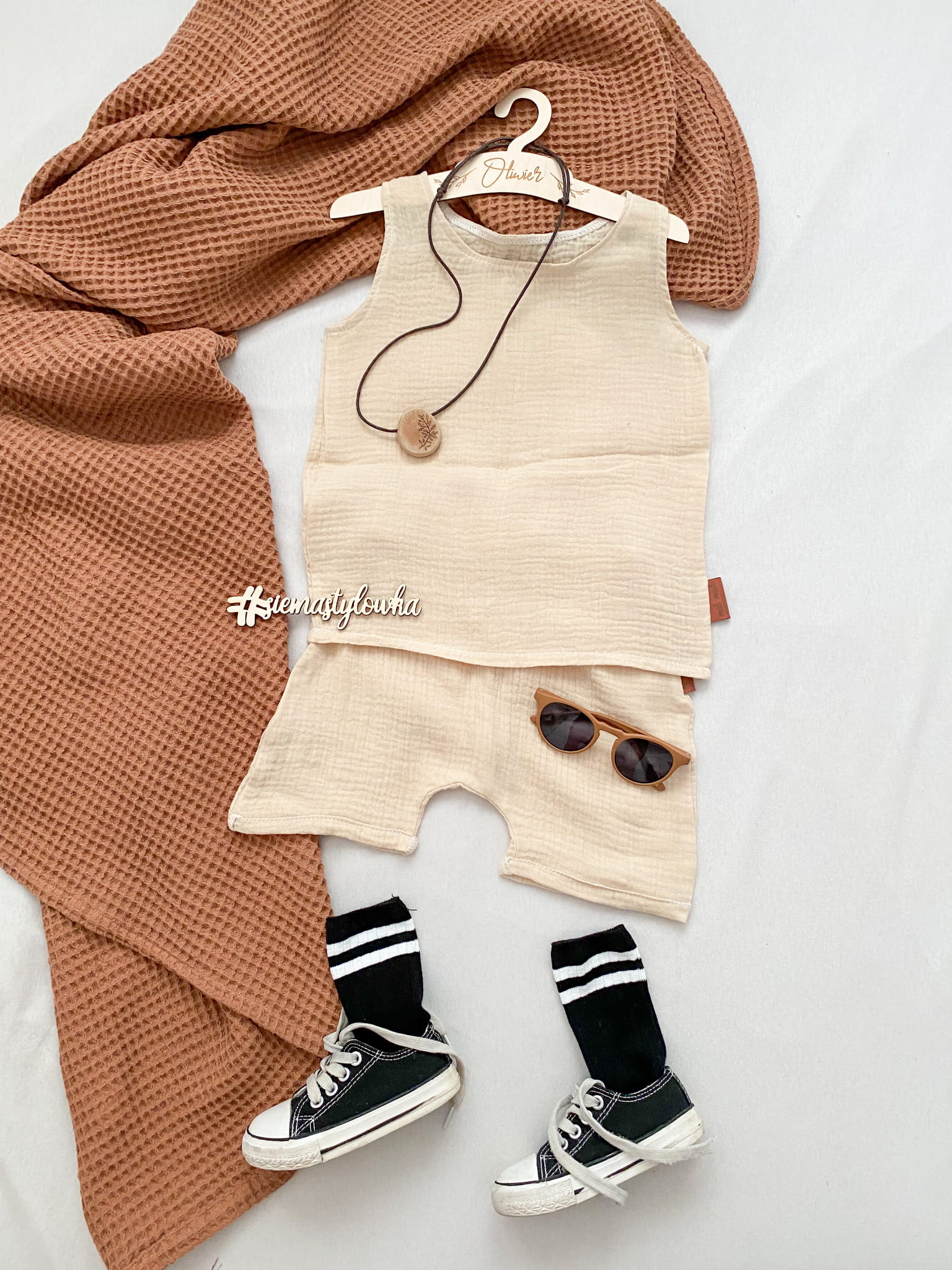 Komplet dziecięcy wykonany z muślinu bawelnianego.