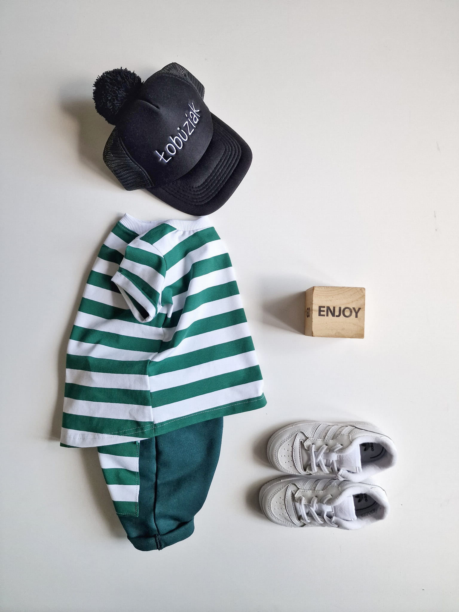 Komplet dziecięcy wykonany z wysokiej jakości dzianiny dresowej.