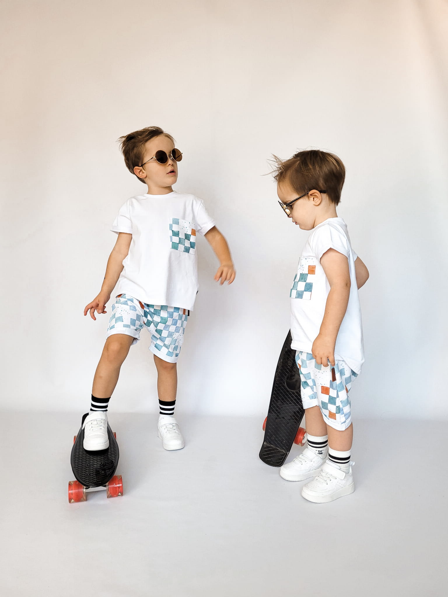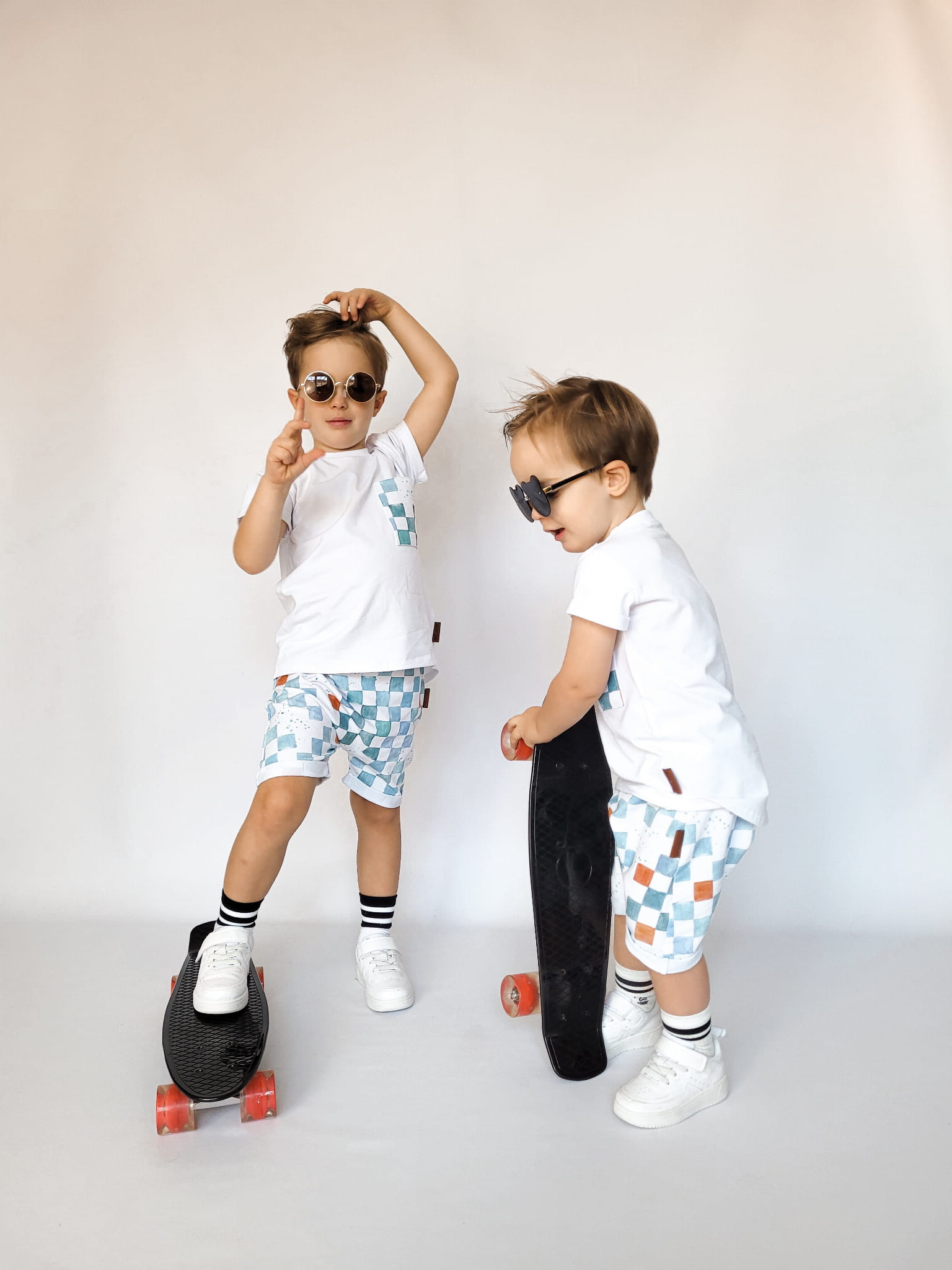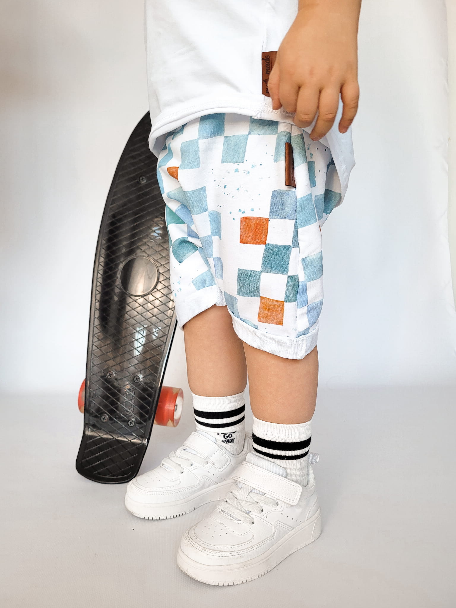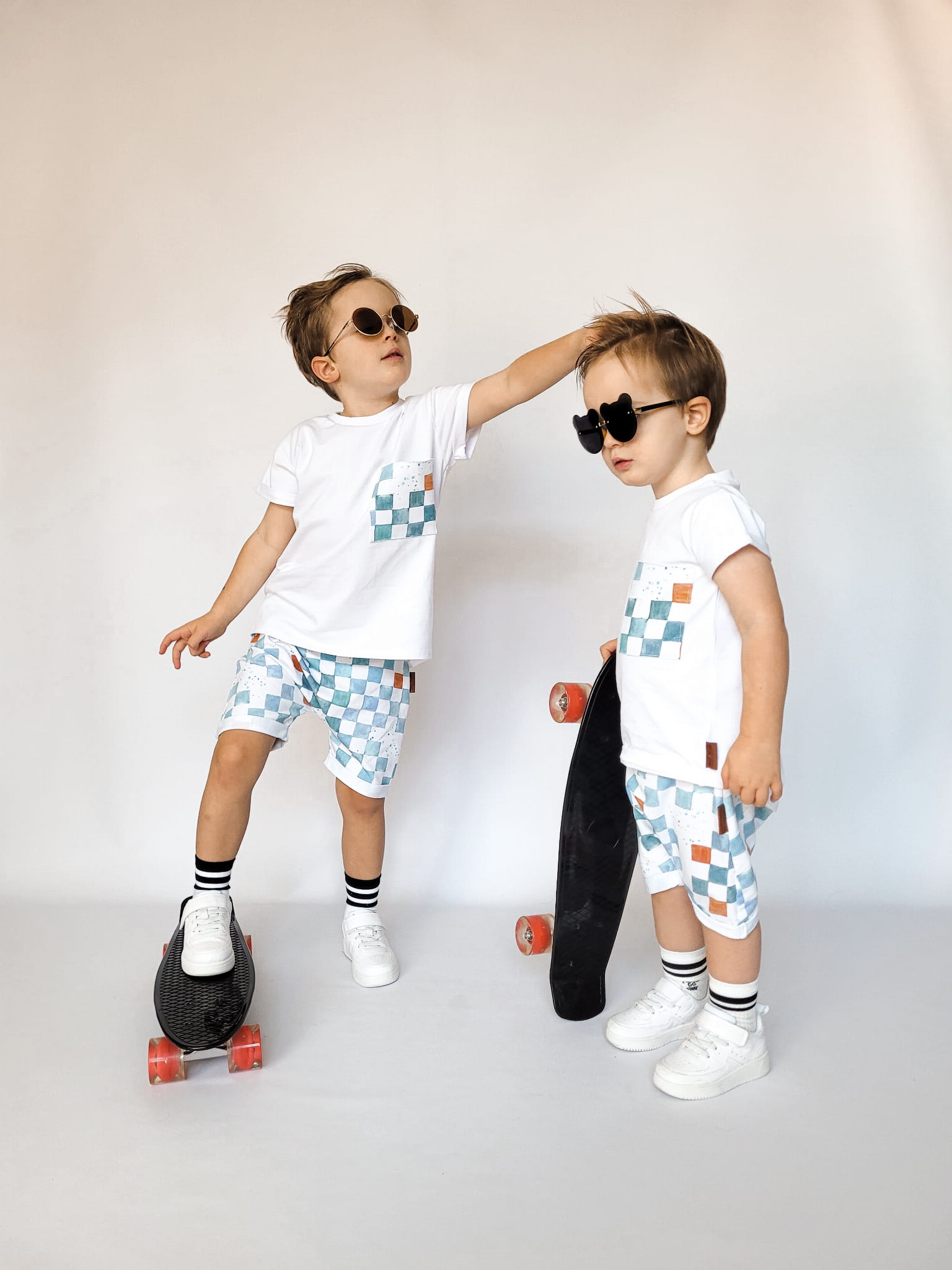 W skład kompletu wchodzi: bluzeczka krótki rękaw i szorty z gumką w pasie.
