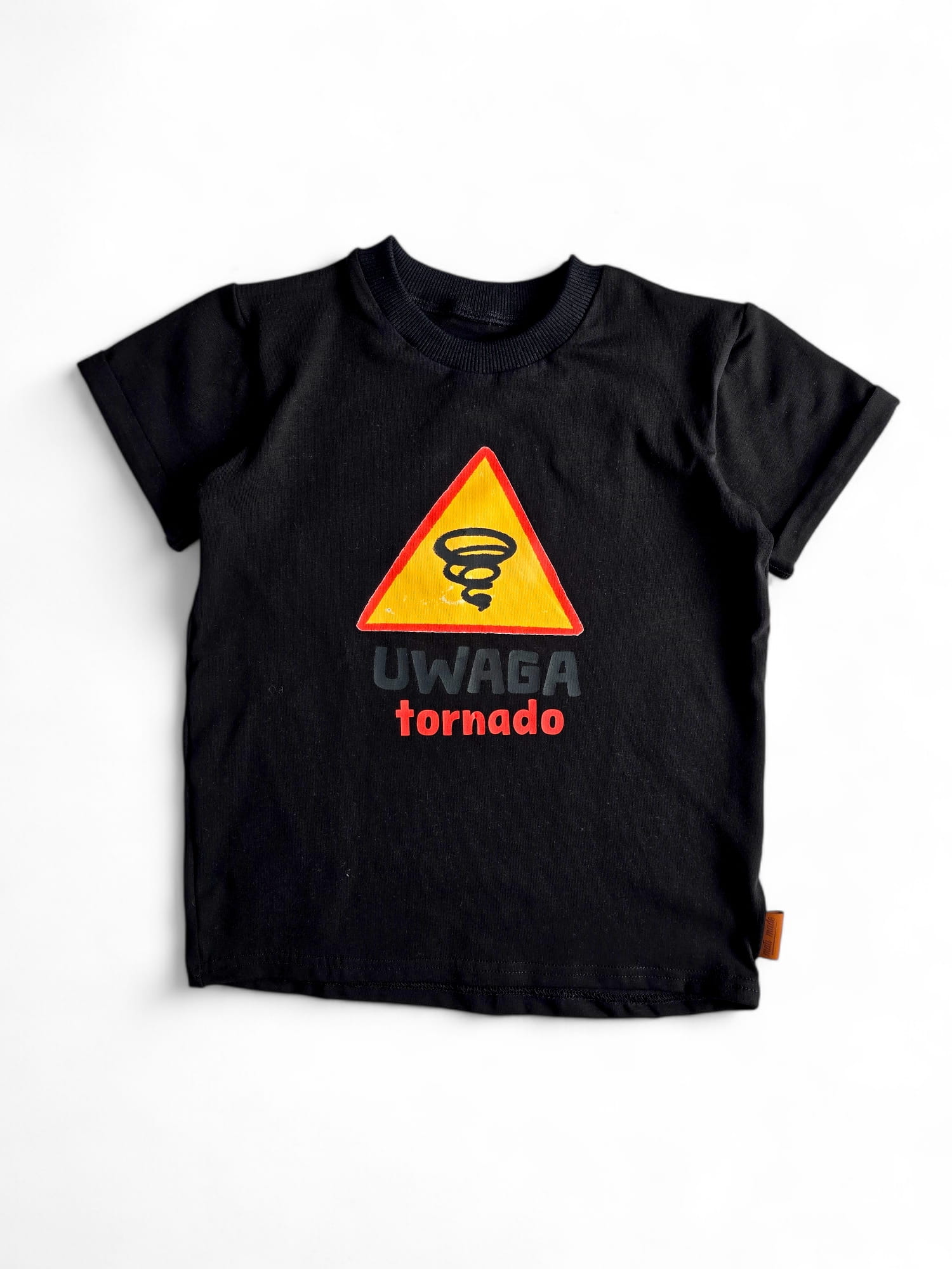 Czarna koszulka "UWAGA tornado" to świetna propozycja dla każdego małego wulkanu energii!