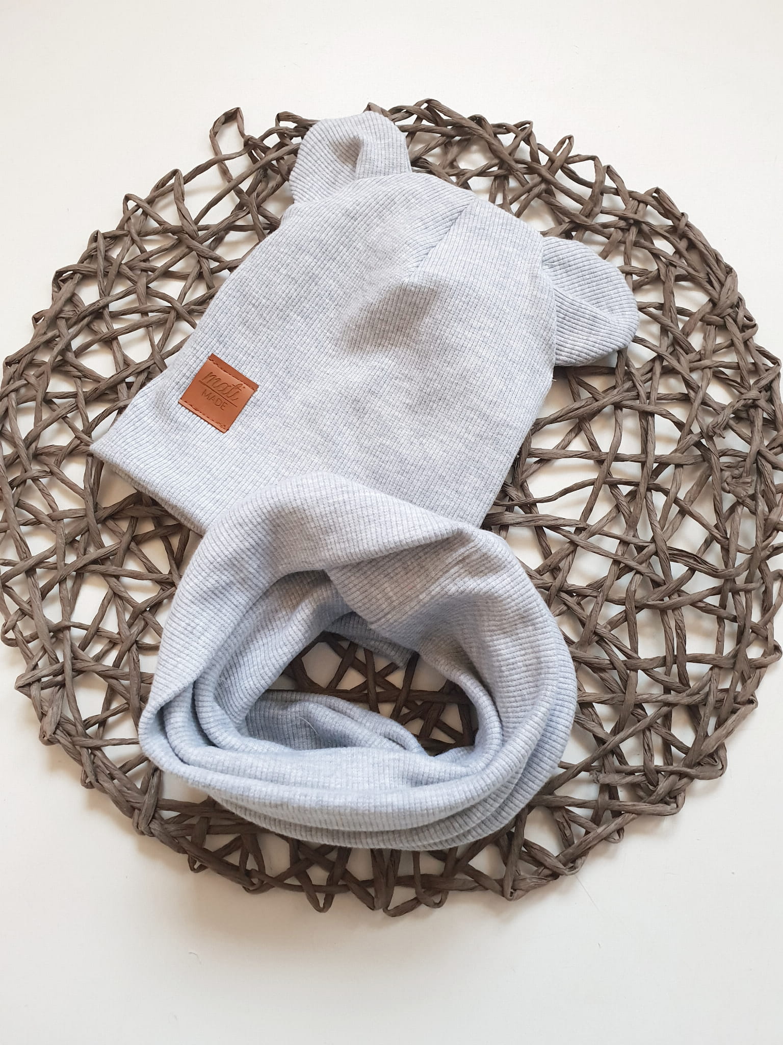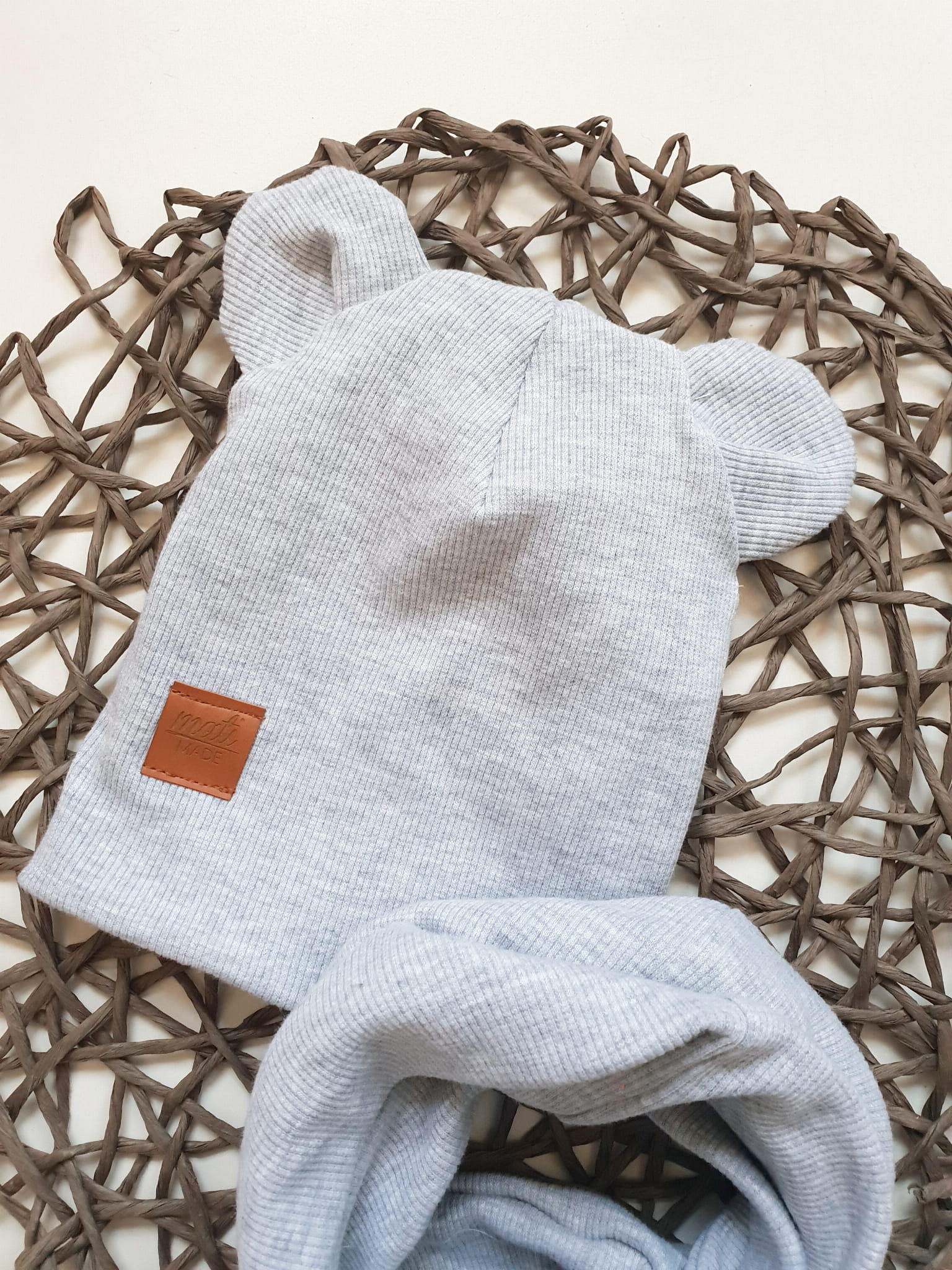 Czapka i Komin Szary „Miś Basic” w Prążki – Ciepło i Styl na Zimowe Dni!
