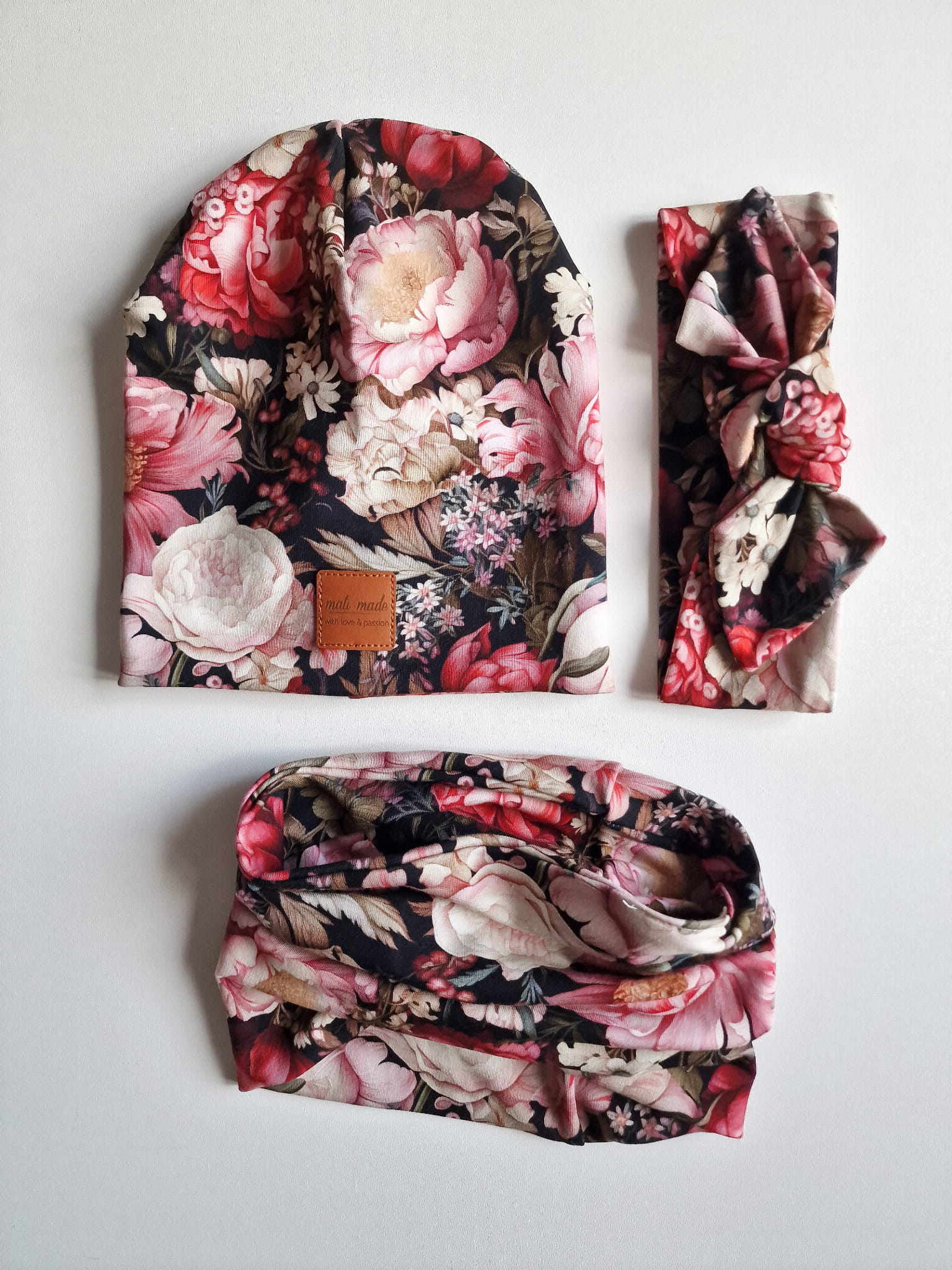 Czapka i komin wykonane z wysokiej jakości dzianiny.