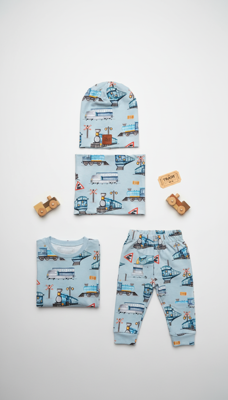 Twój maluch kocha pociągi? Ten komplet to strzał w dziesiątkę! Czapka i komin z autorskim wzorem w pociągi to nie tylko praktyczna ochrona przed chłodem, ale też wyjątkowy element garderoby, który wyróżni dziecko na spacerze, w przedszkolu czy podczas rodzinnych wyjazdów.