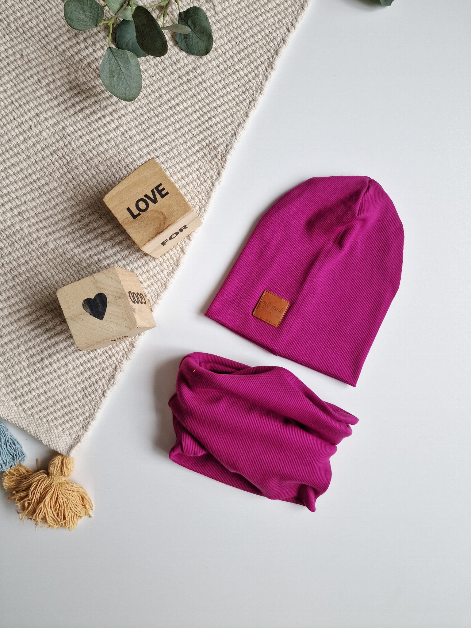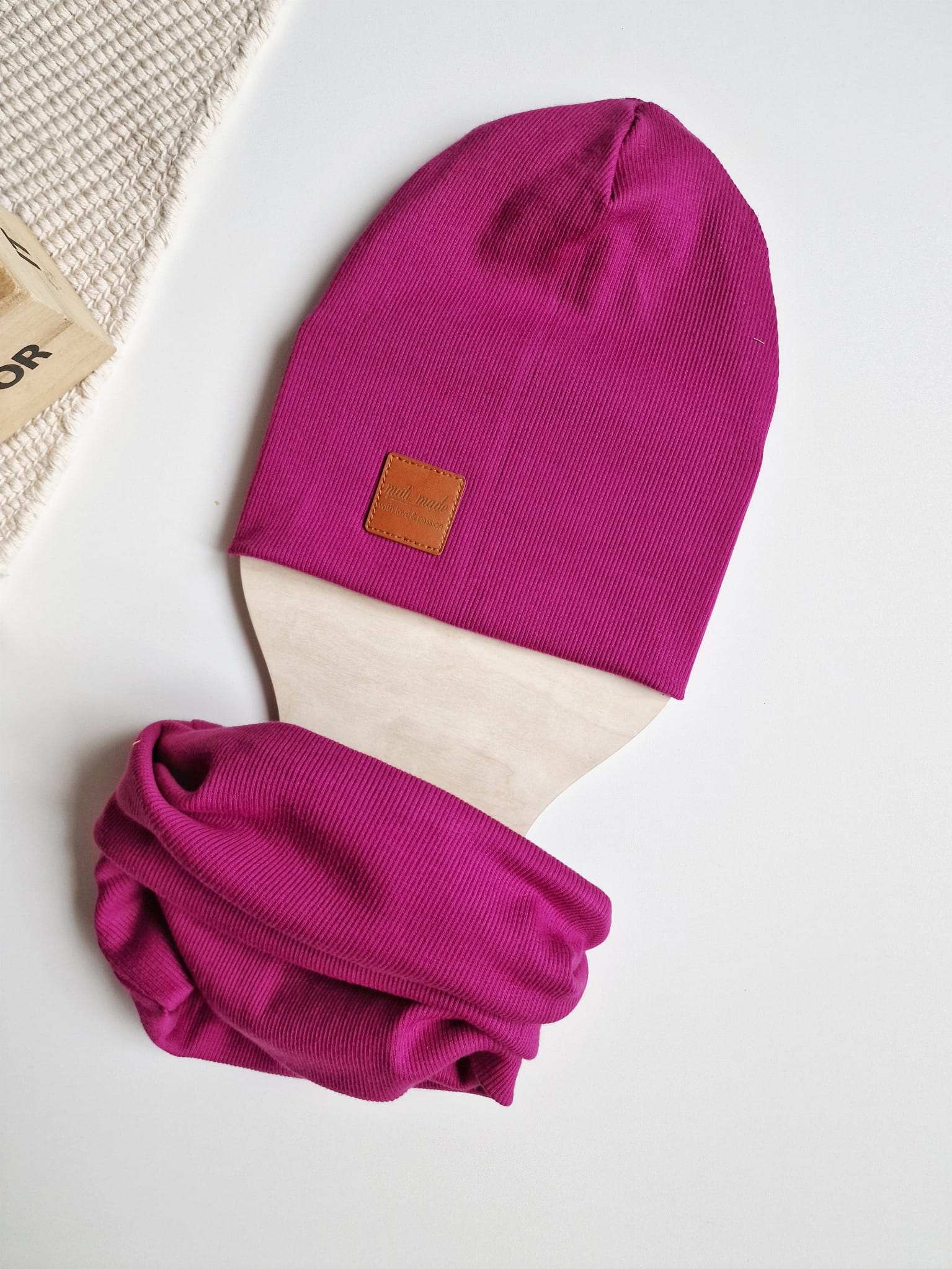 Czapka i komin wykonane z wysokiej jakości dzianiny prążek