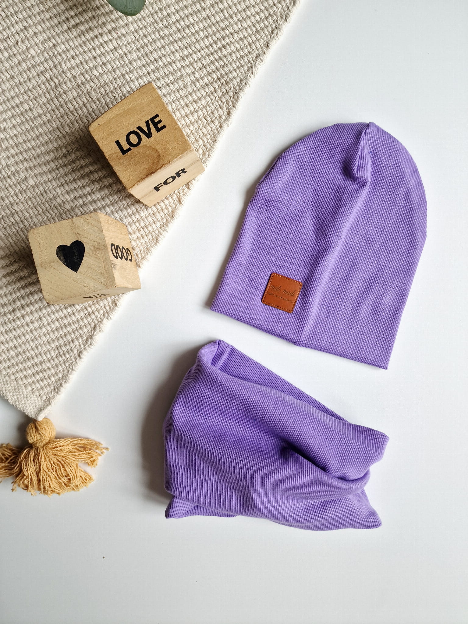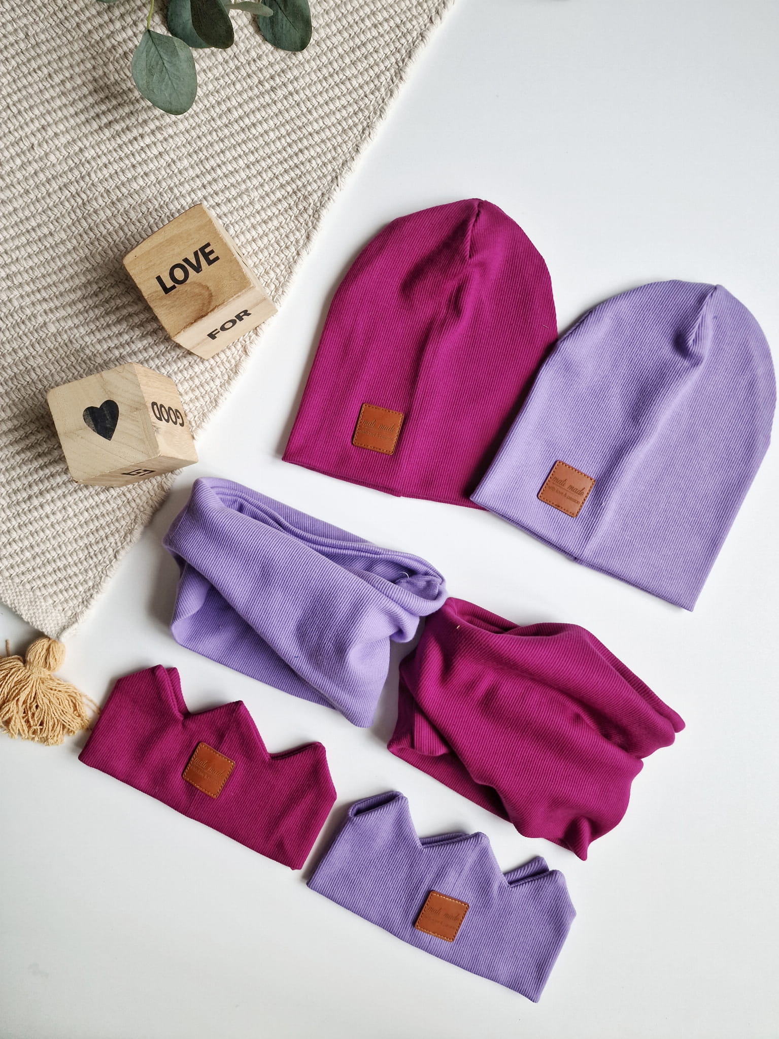 Delikatny fiolet i przyjemna w dotyku dzianina prążkowana – ten zestaw to idealne rozwiązanie na sezon przejściowy. Czapka i komin „MILKA” zapewniają dziecku komfort termiczny, a jednocześnie świetnie się prezentują. To propozycja dla rodziców, którzy szukają praktycznych dodatków w modnym, stonowanym kolorze.