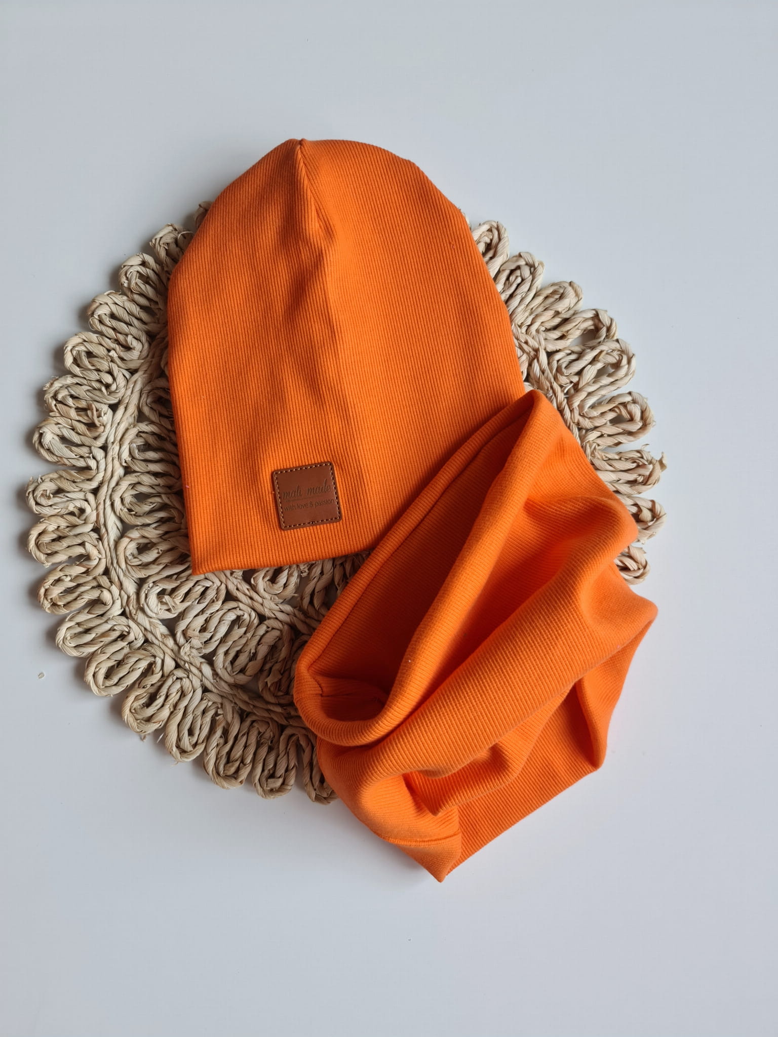 Czapka i komin wykonane z wysokiej jakości dzianiny prążek