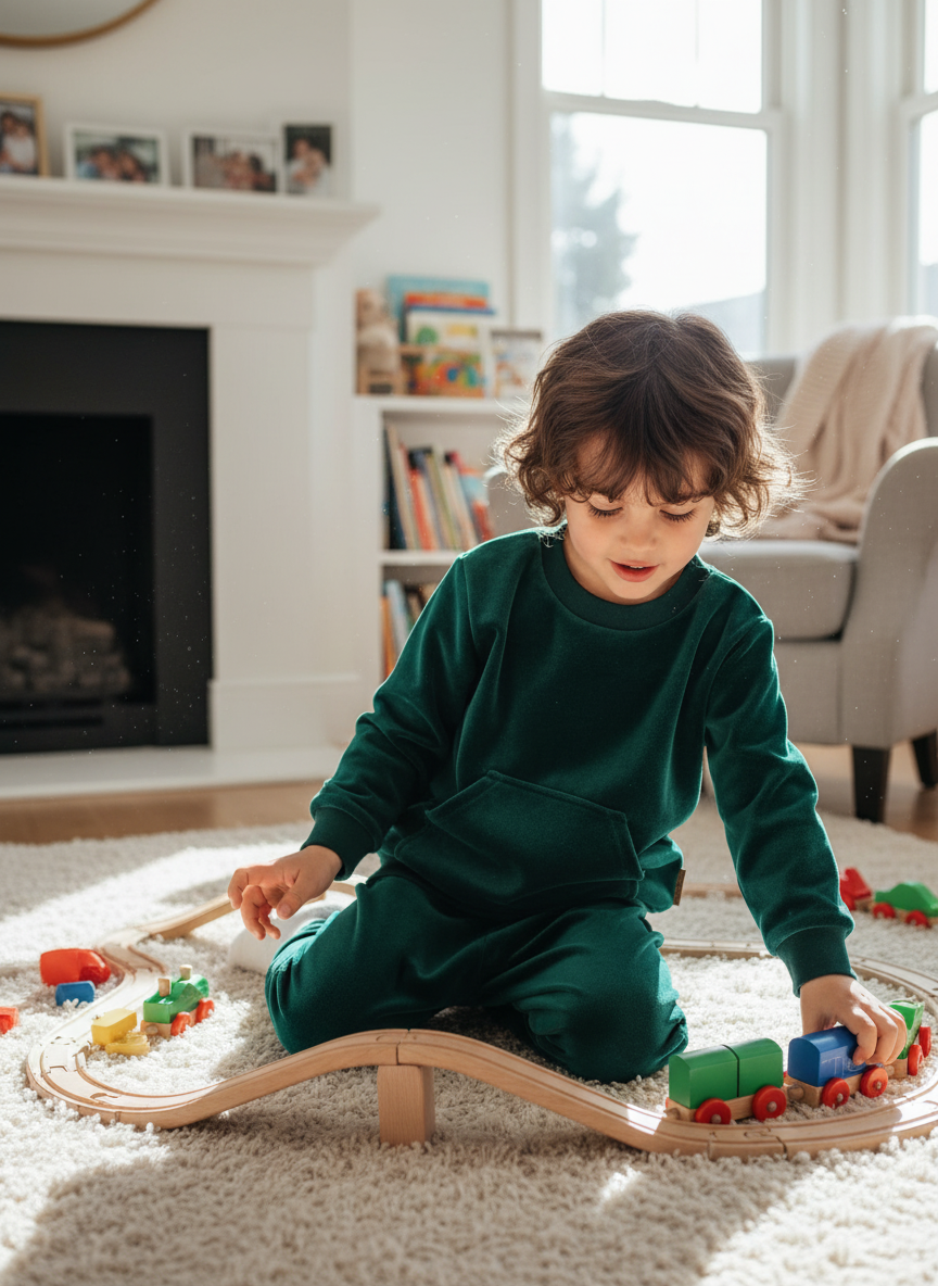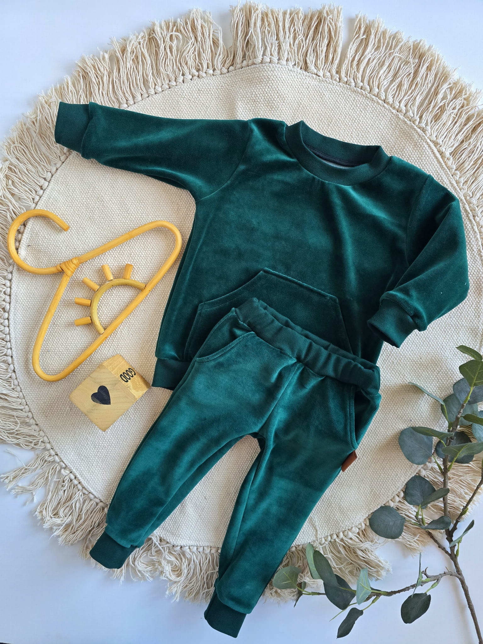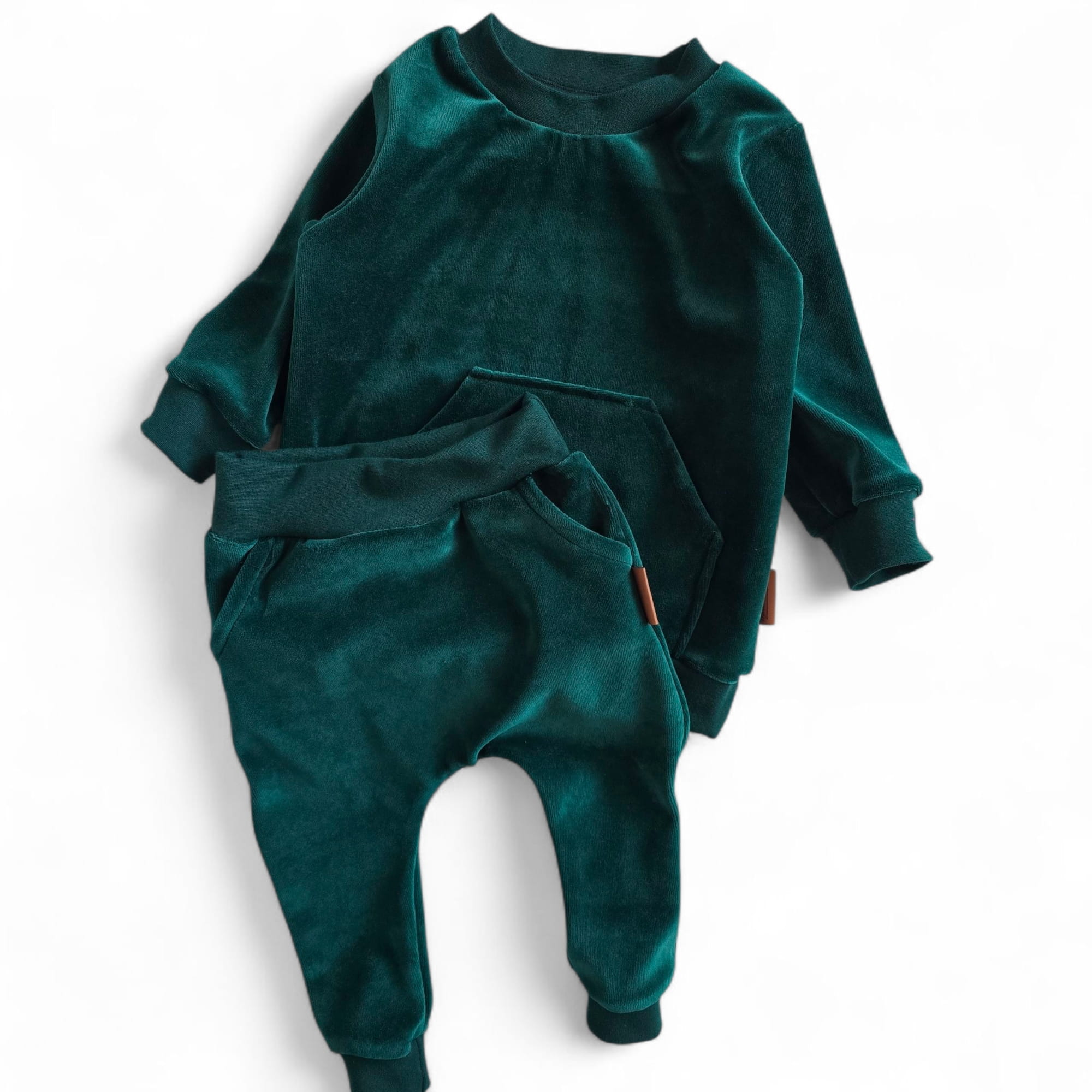 Nasz dres bawełniany welurowy w kolorze butelkowej zieleni to połączenie stylu, jakości i komfortu. To wyjątkowy komplet dla chłopca i dziewczynki, który sprawdzi się zarówno na co dzień, jak i podczas wyjątkowych okazji.