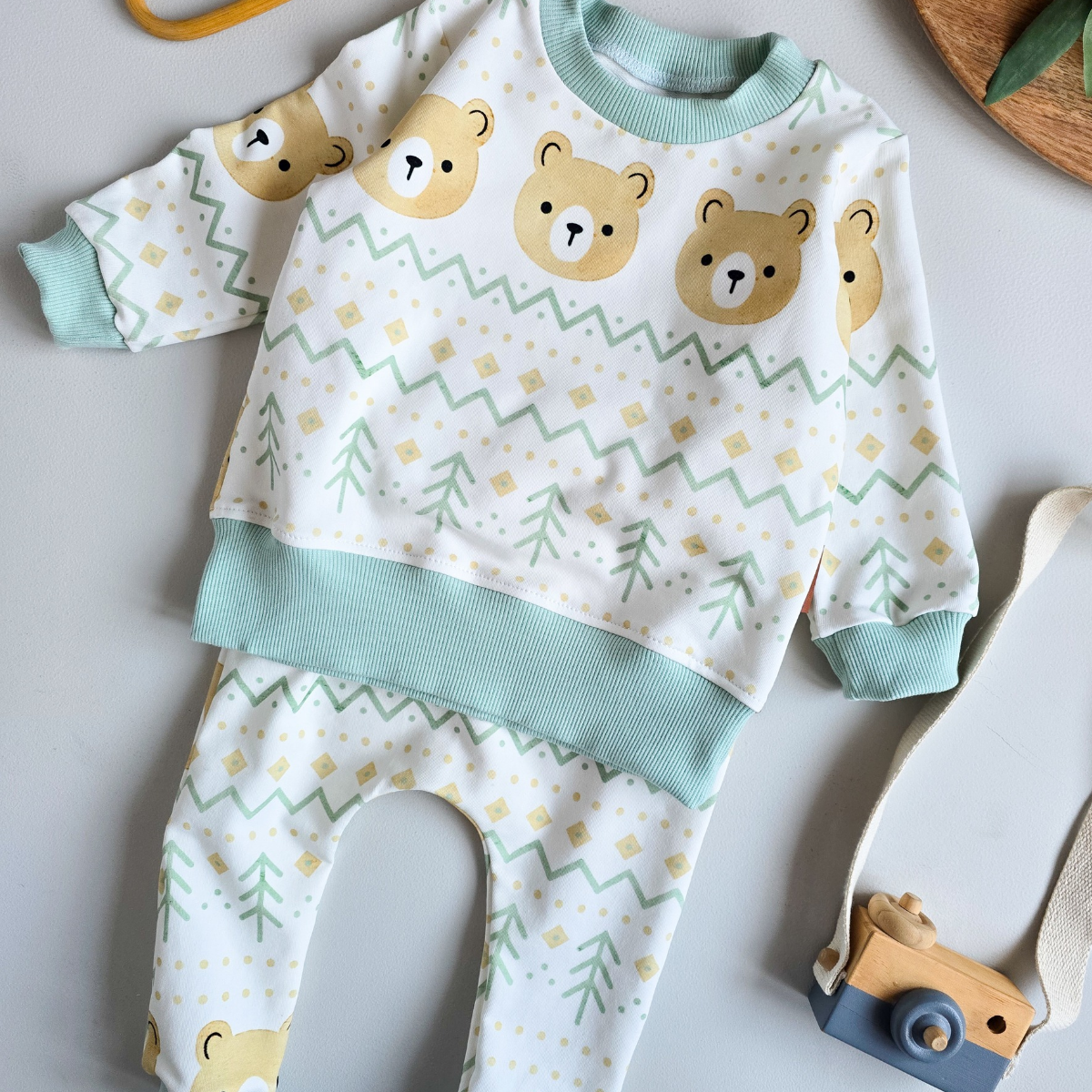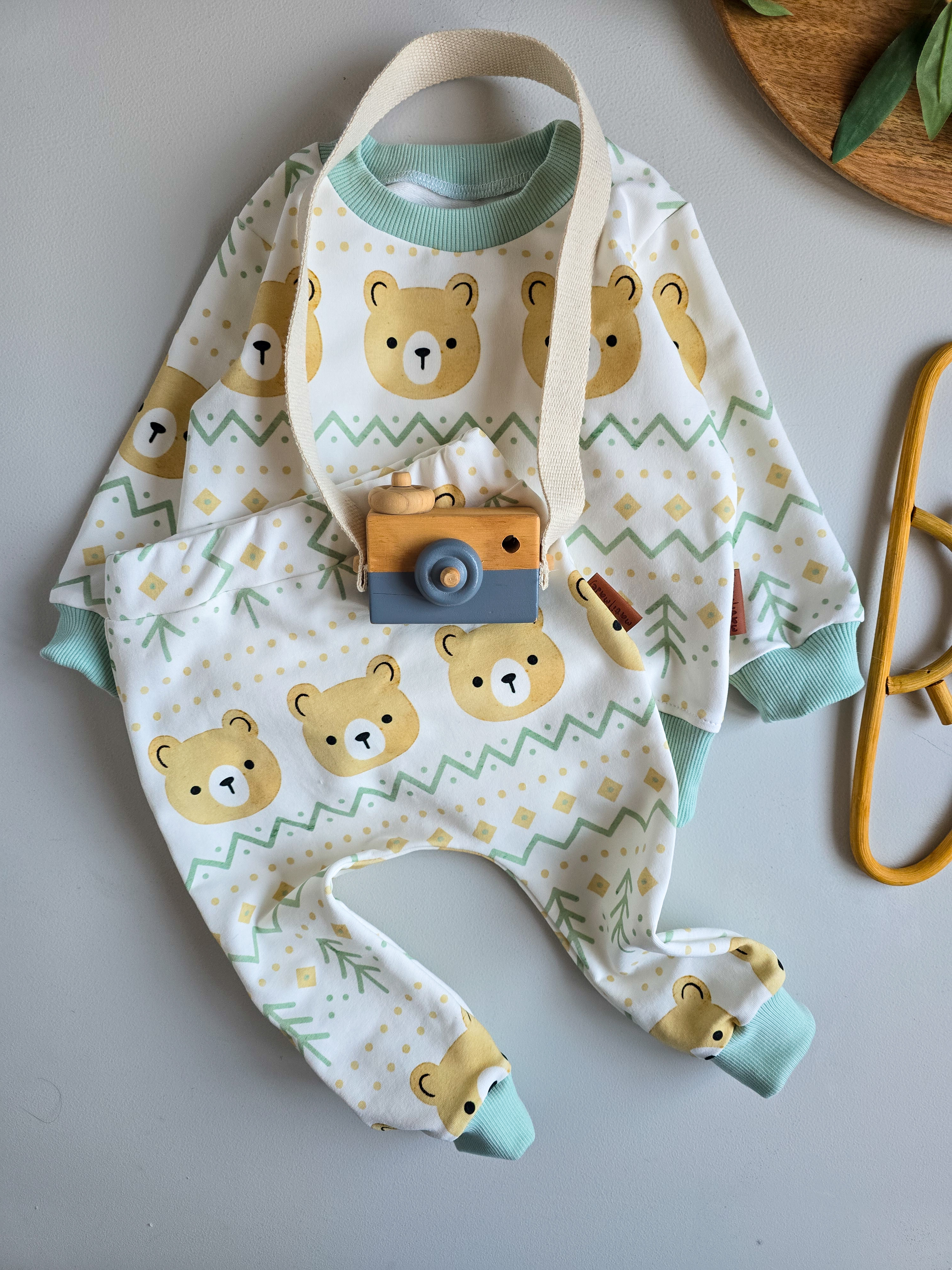 modnym i dziecięcym wzorze, który zachwyca miękką kolorystyką i słodkimi misiami.