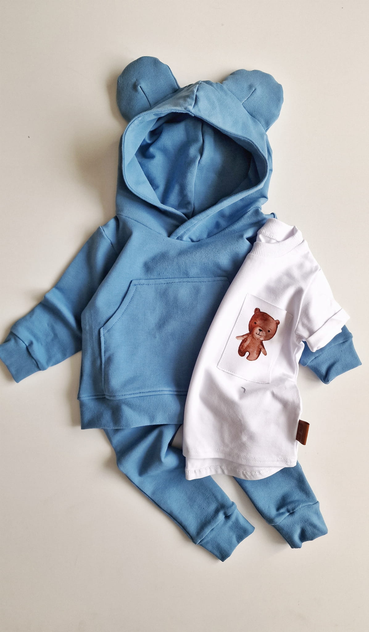 Komplet dziecięcy wykonany z dzianiny dresowej.
