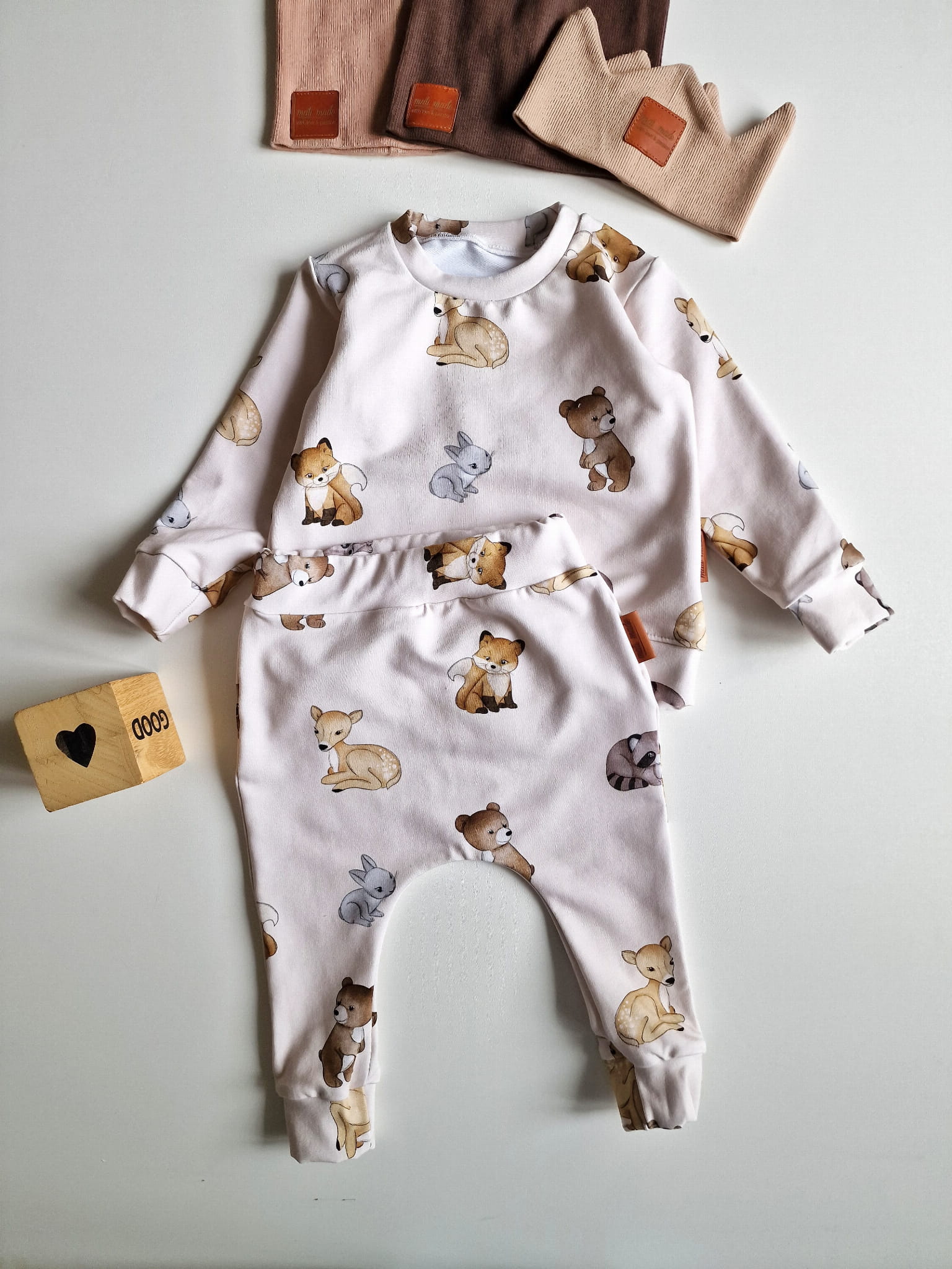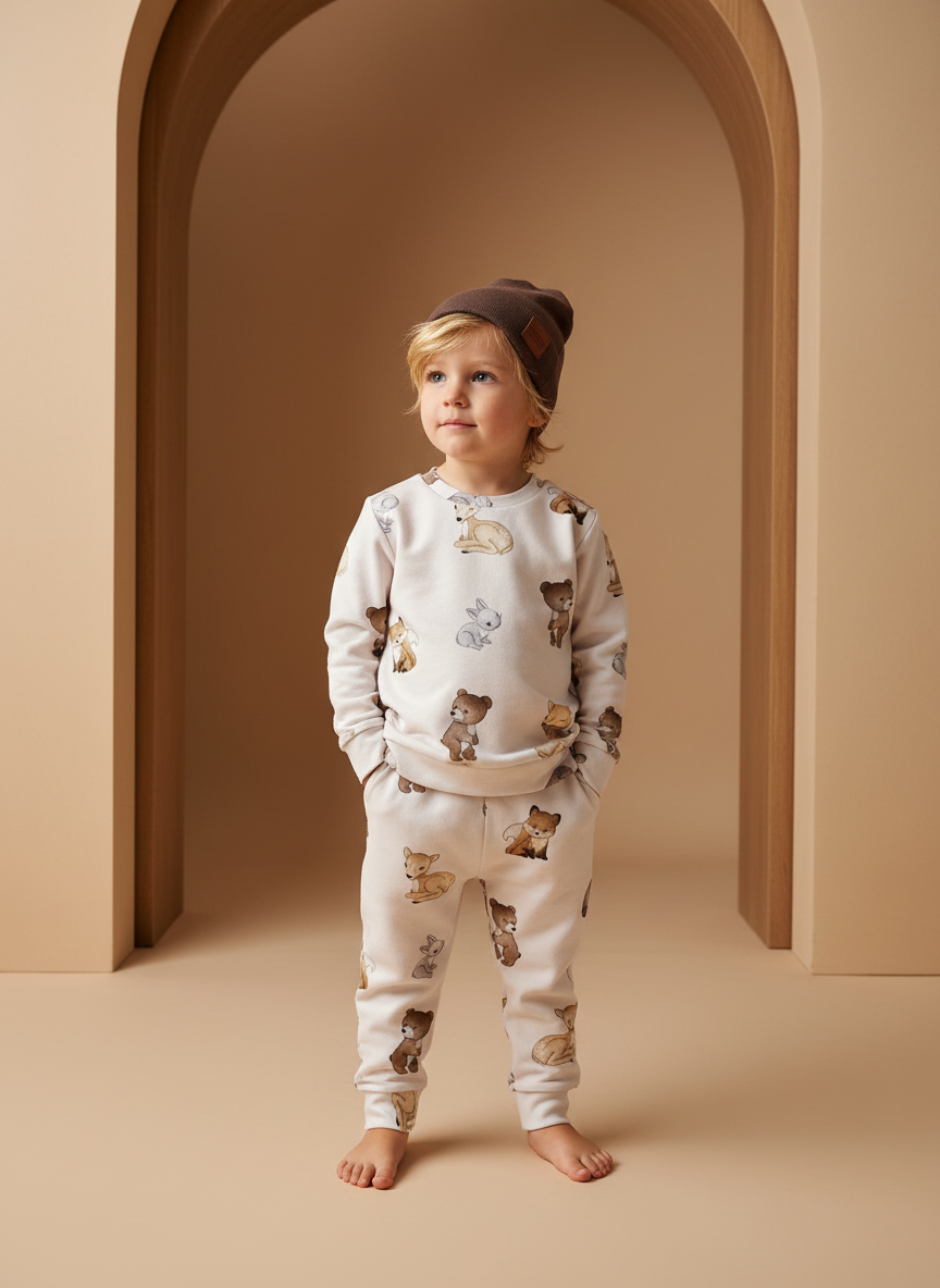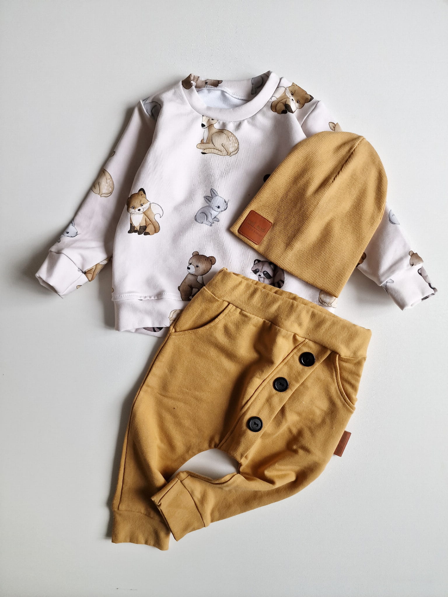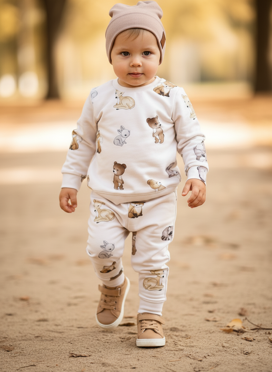 Komplet dziecięcy wykonany z dzianiny dresowej.