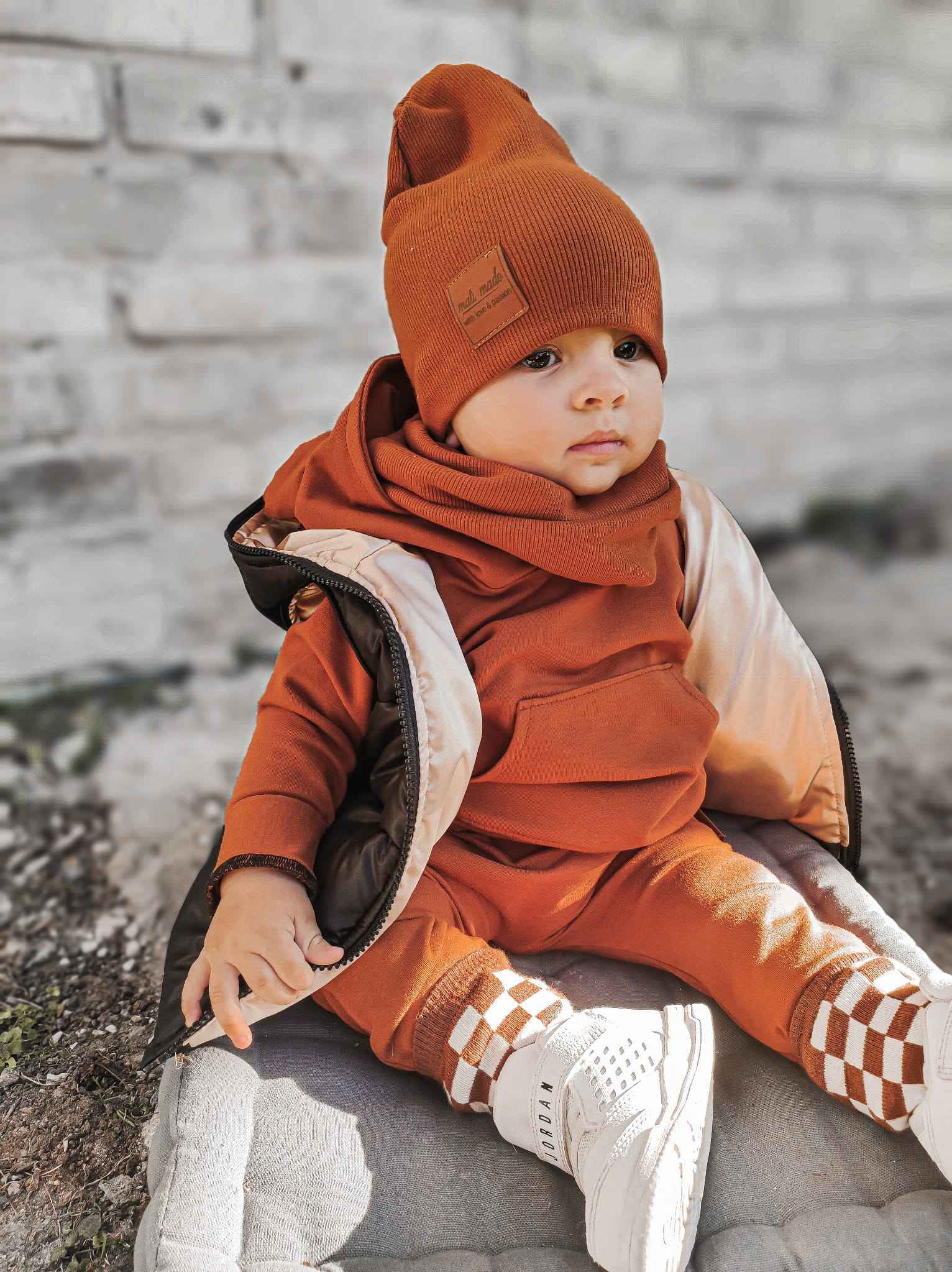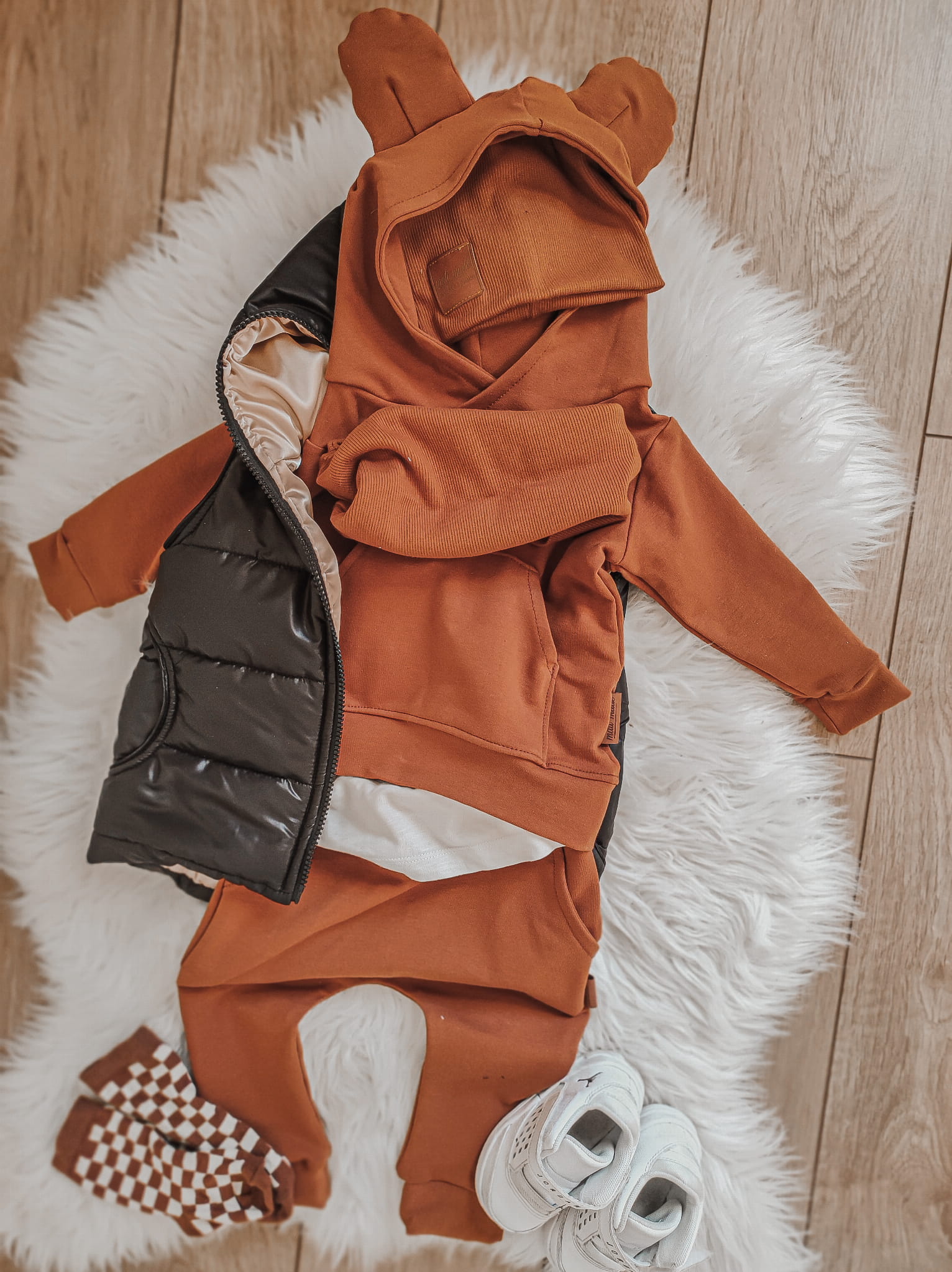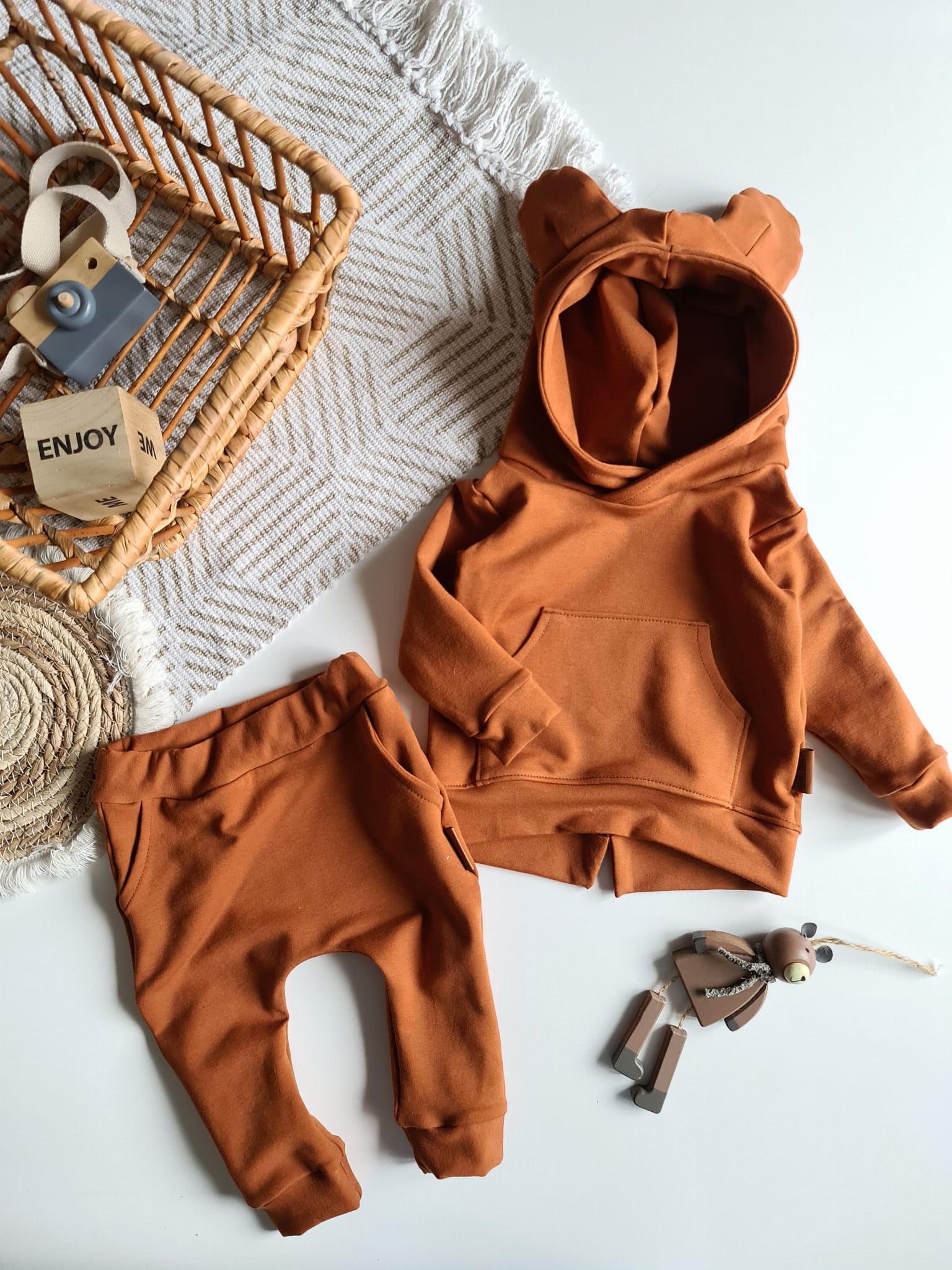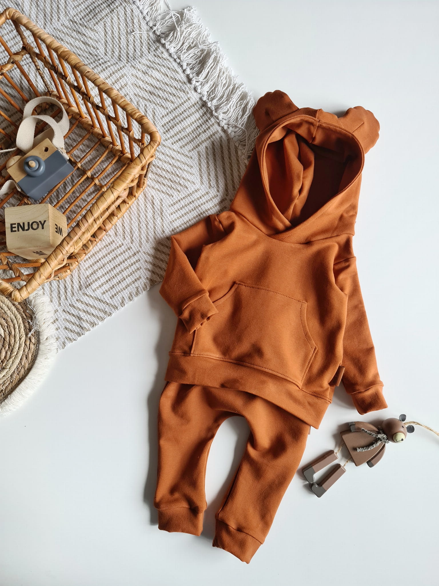 Komplet dziecięcy wykonany z dzianiny dresowej.