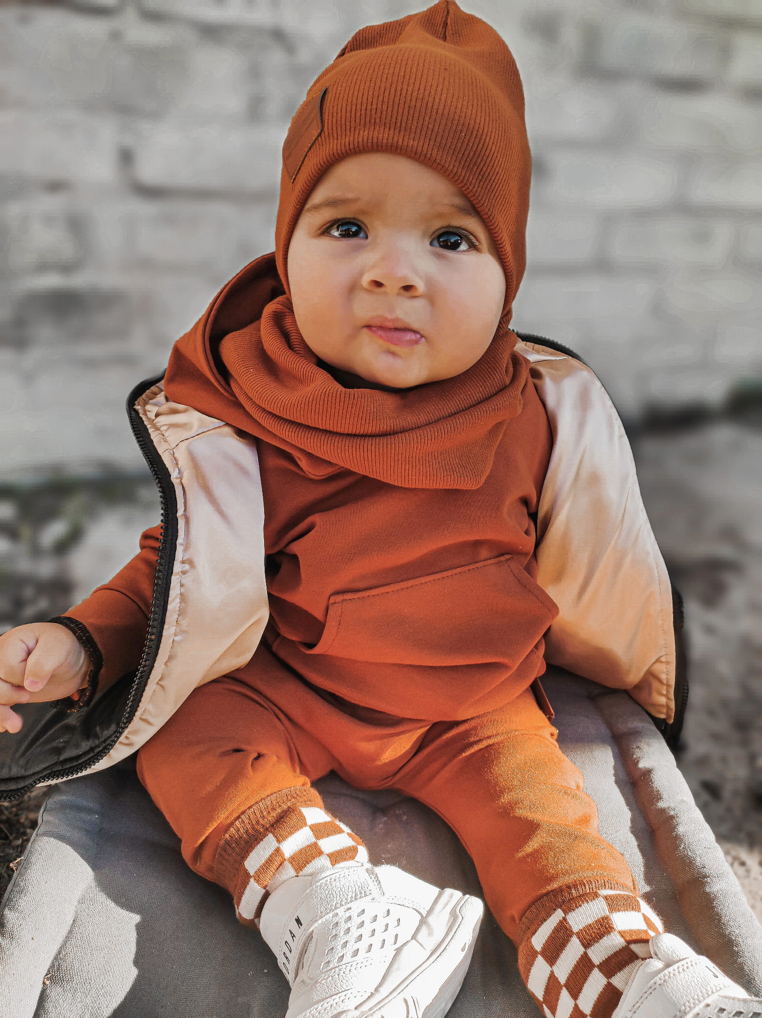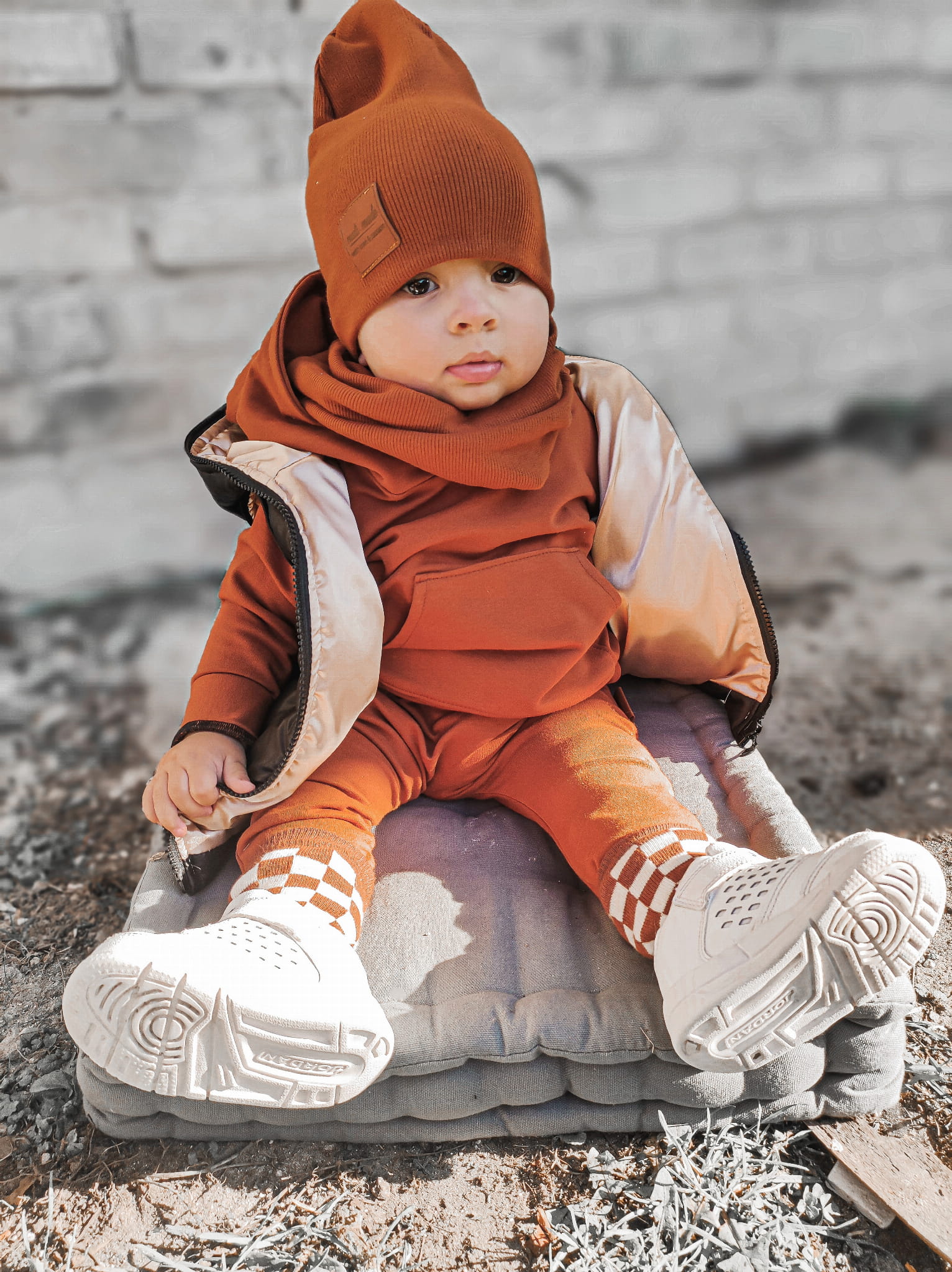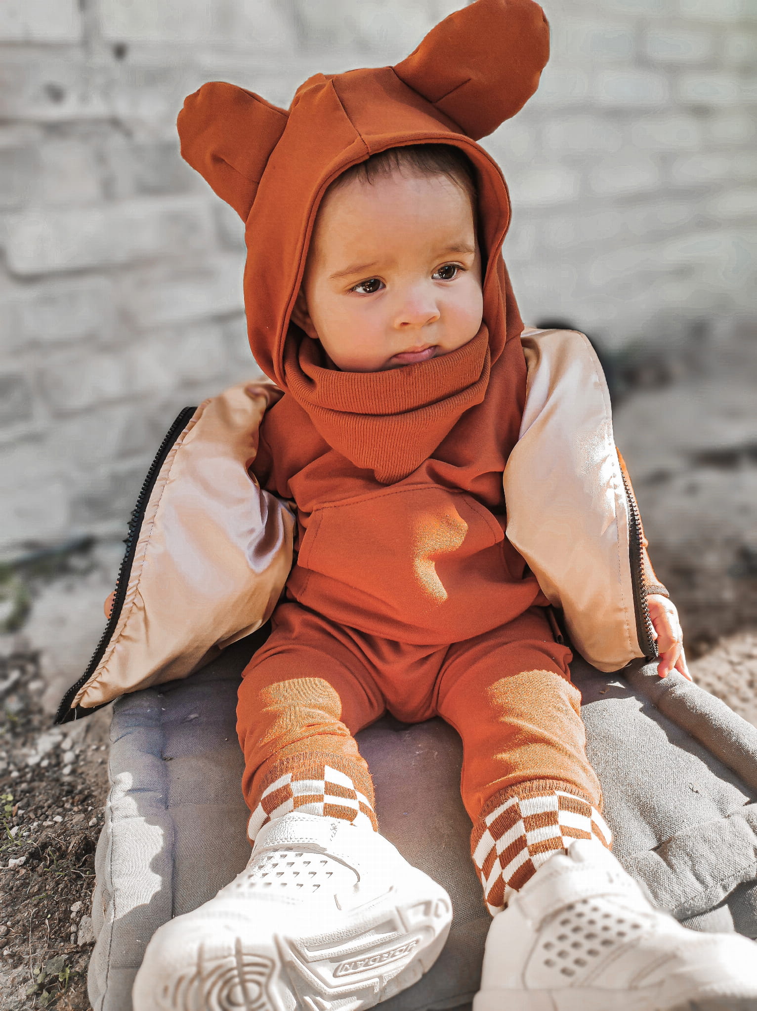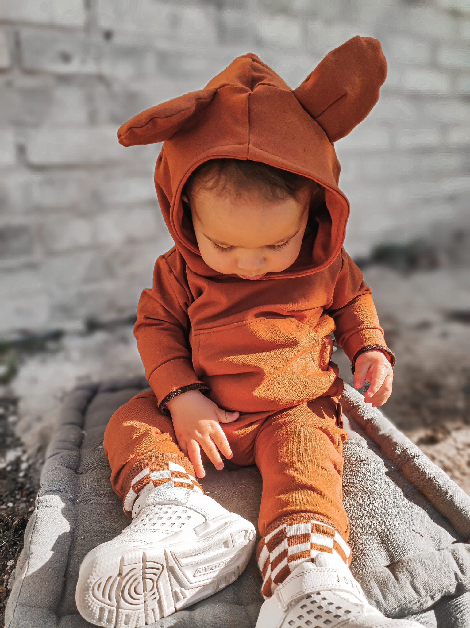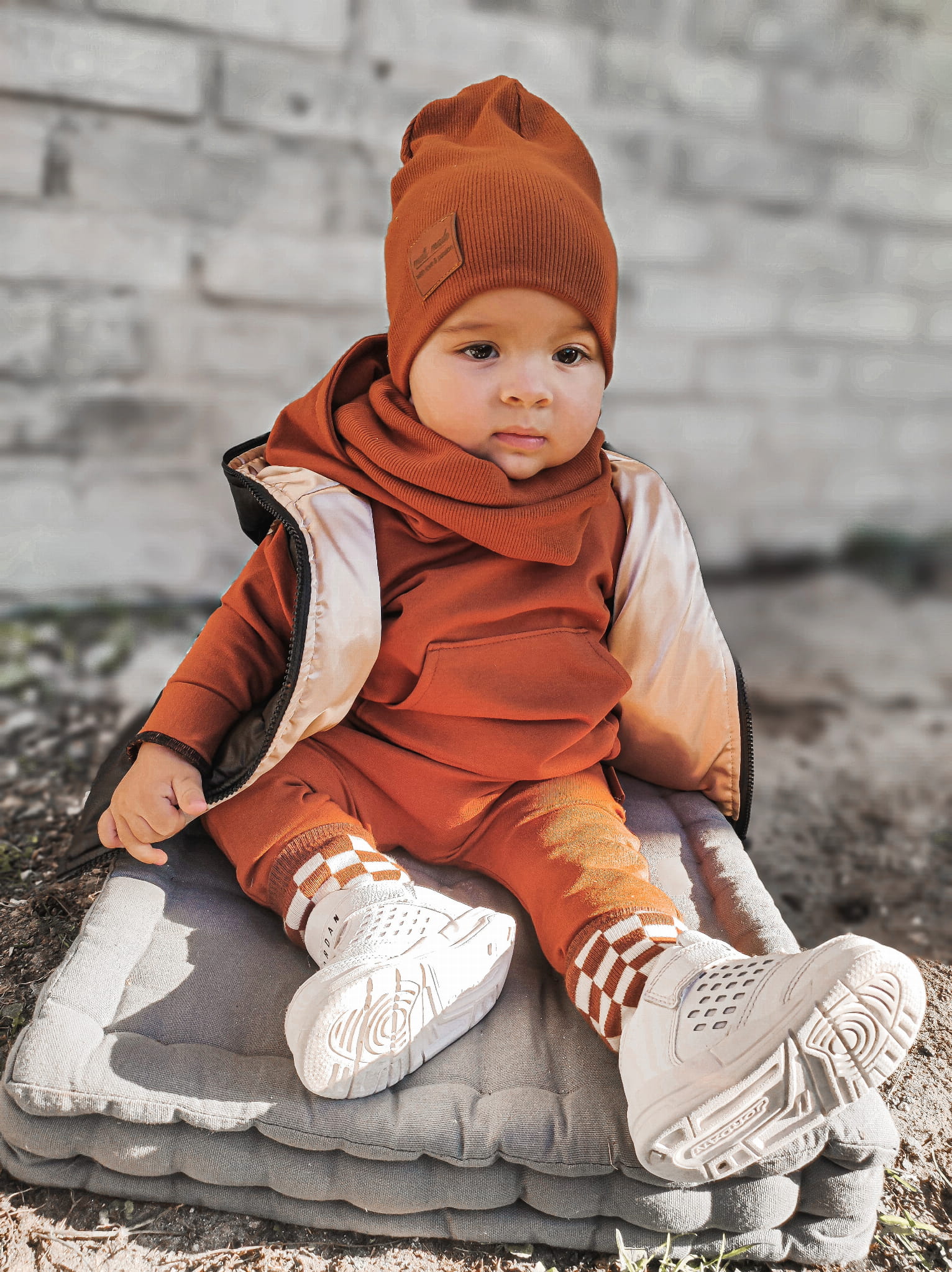 Komplet dziecięcy wykonany z dzianiny dresowej.