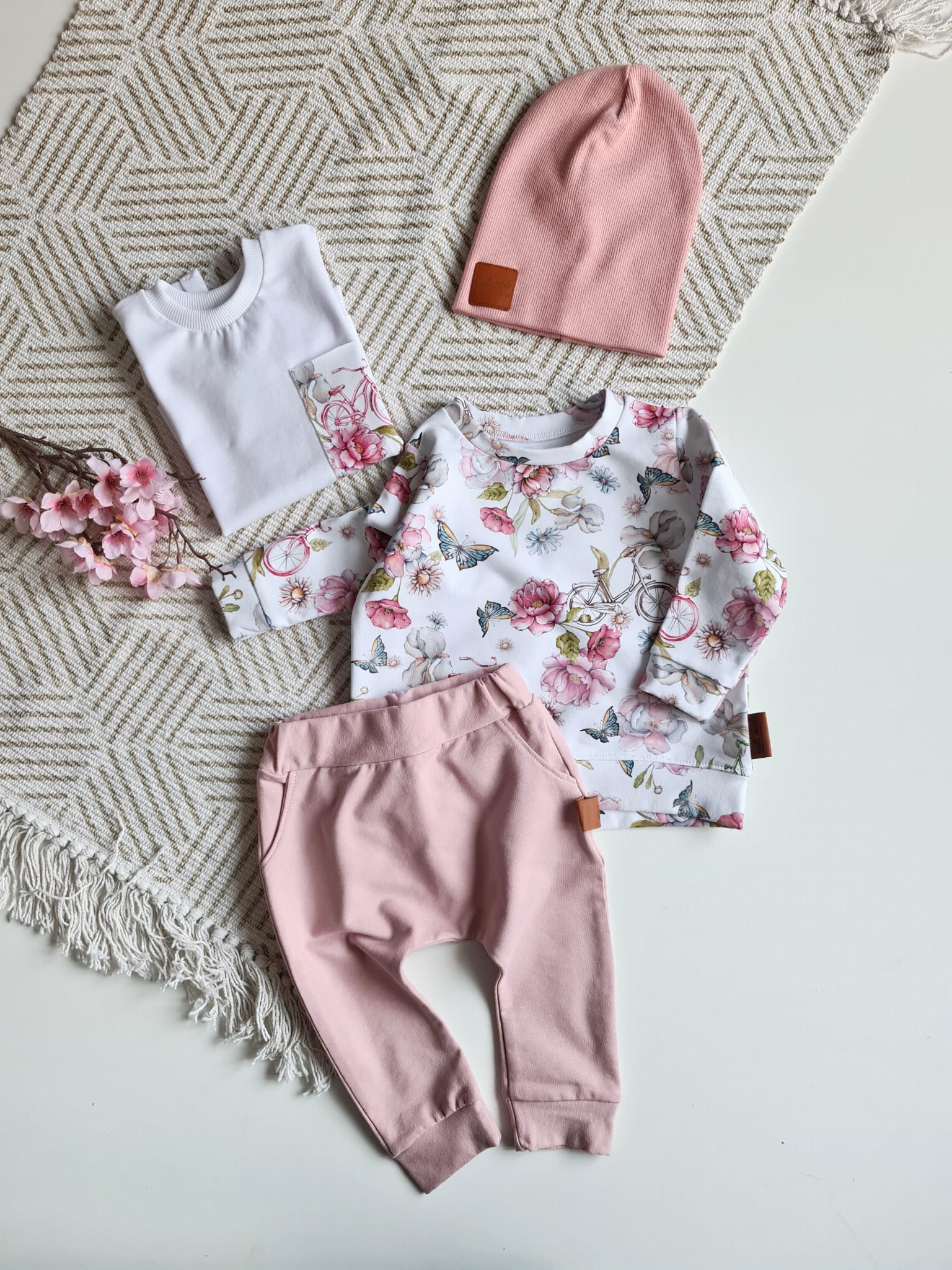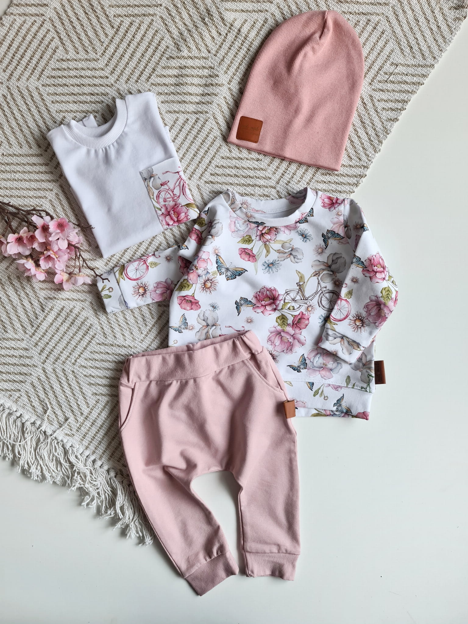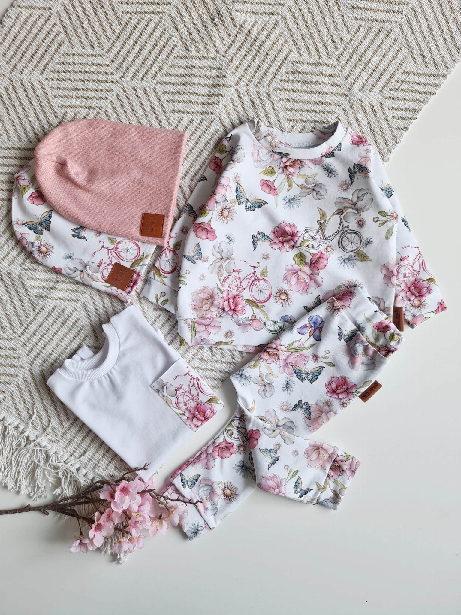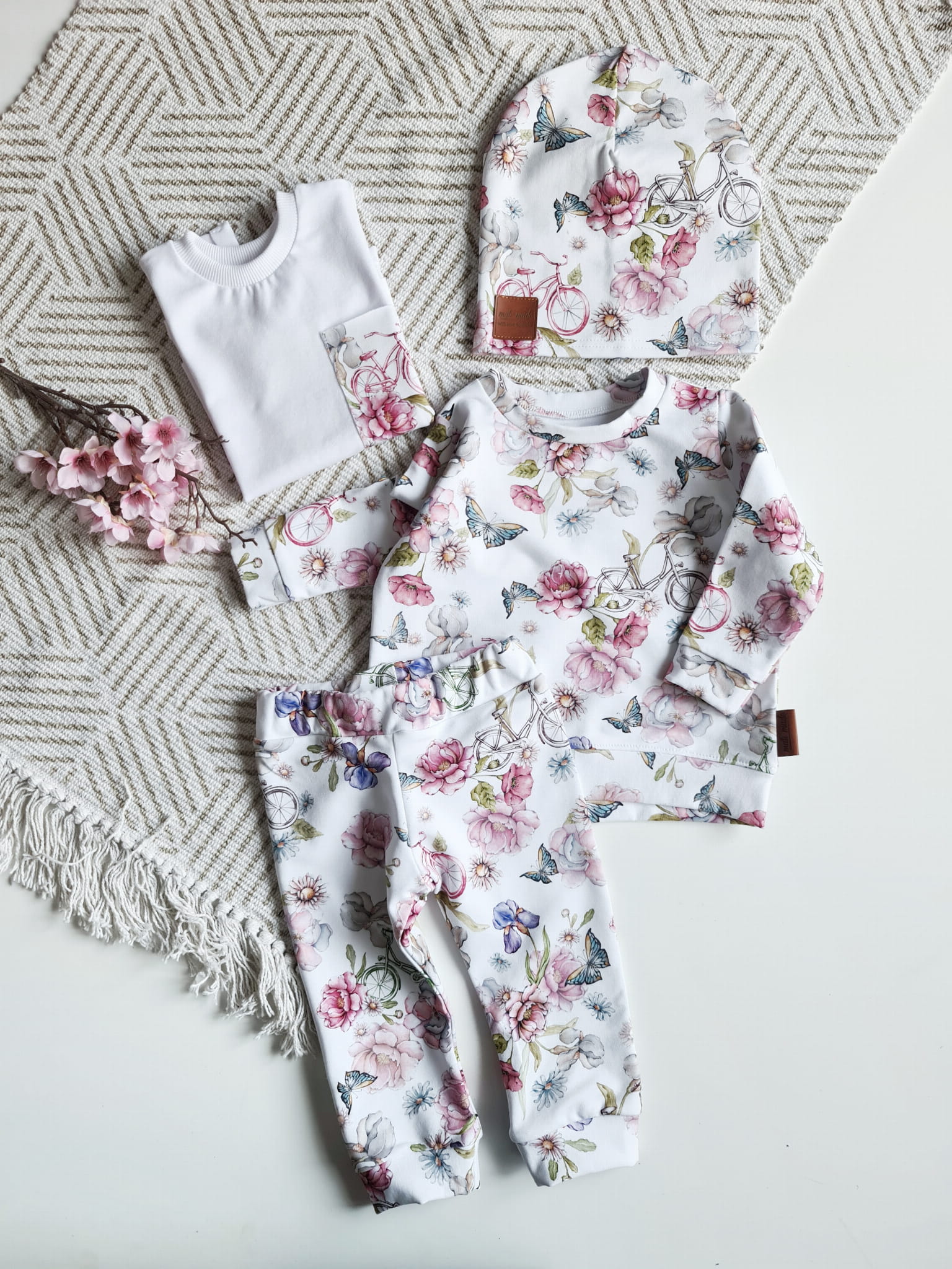 Komplet dziecięcy wykonany z dzianiny dresowej.