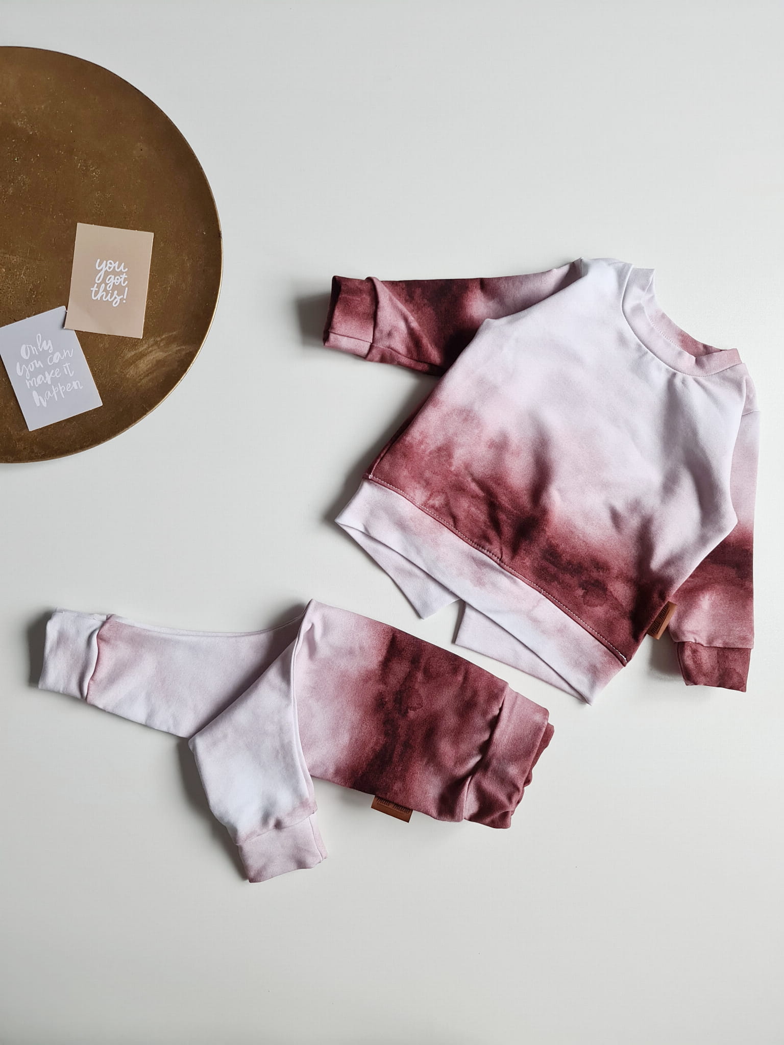 Komplet dziecięcy wykonany z dzianiny dresowej.