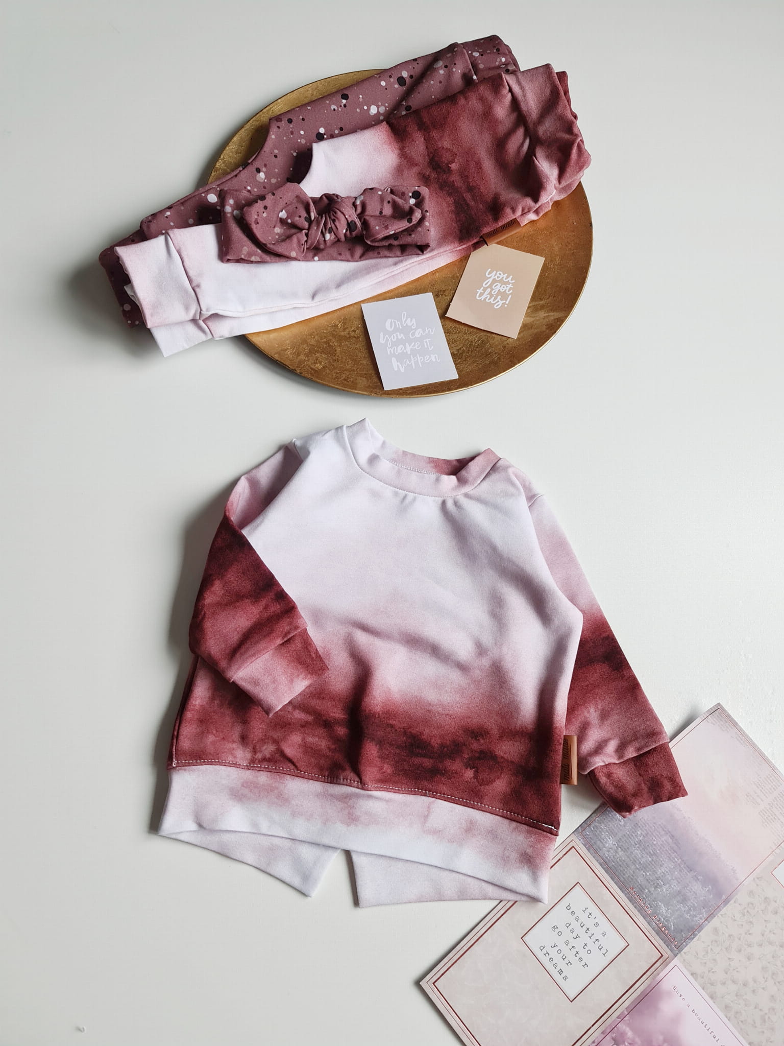 Komplet bluza i baggy total ombre brudny róż