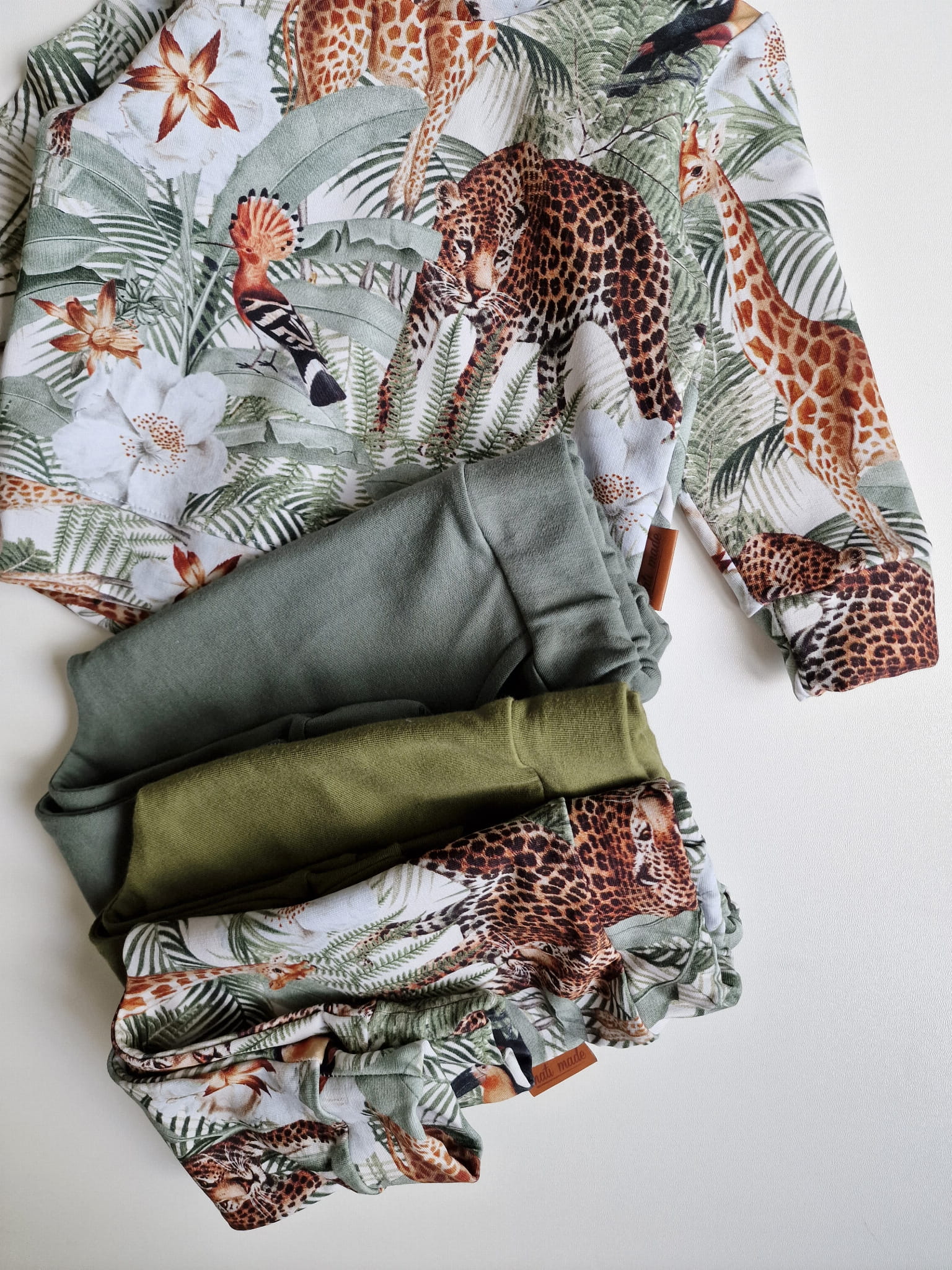 Komplet dziecięcy wykonany z dzianiny dresowej.