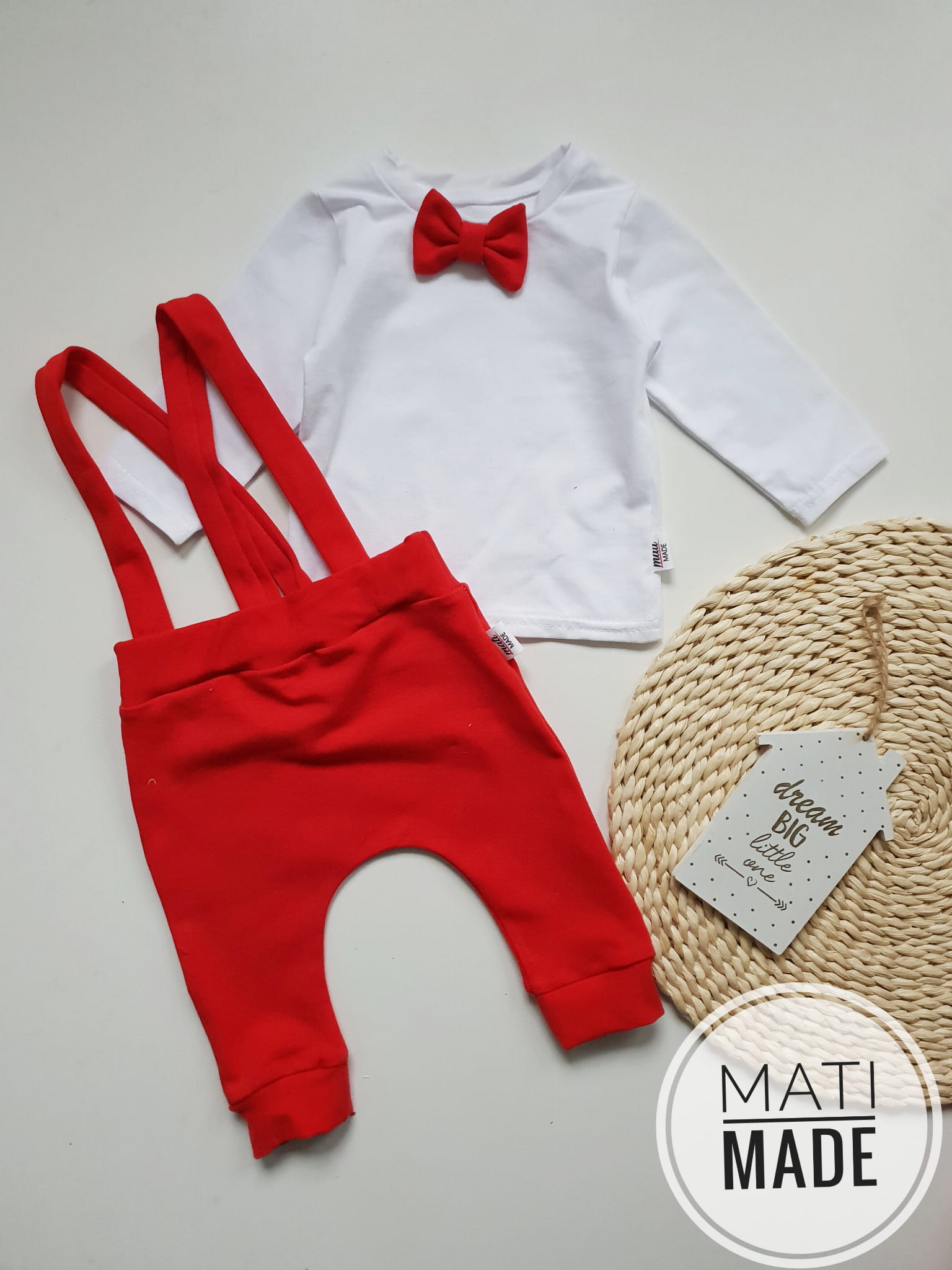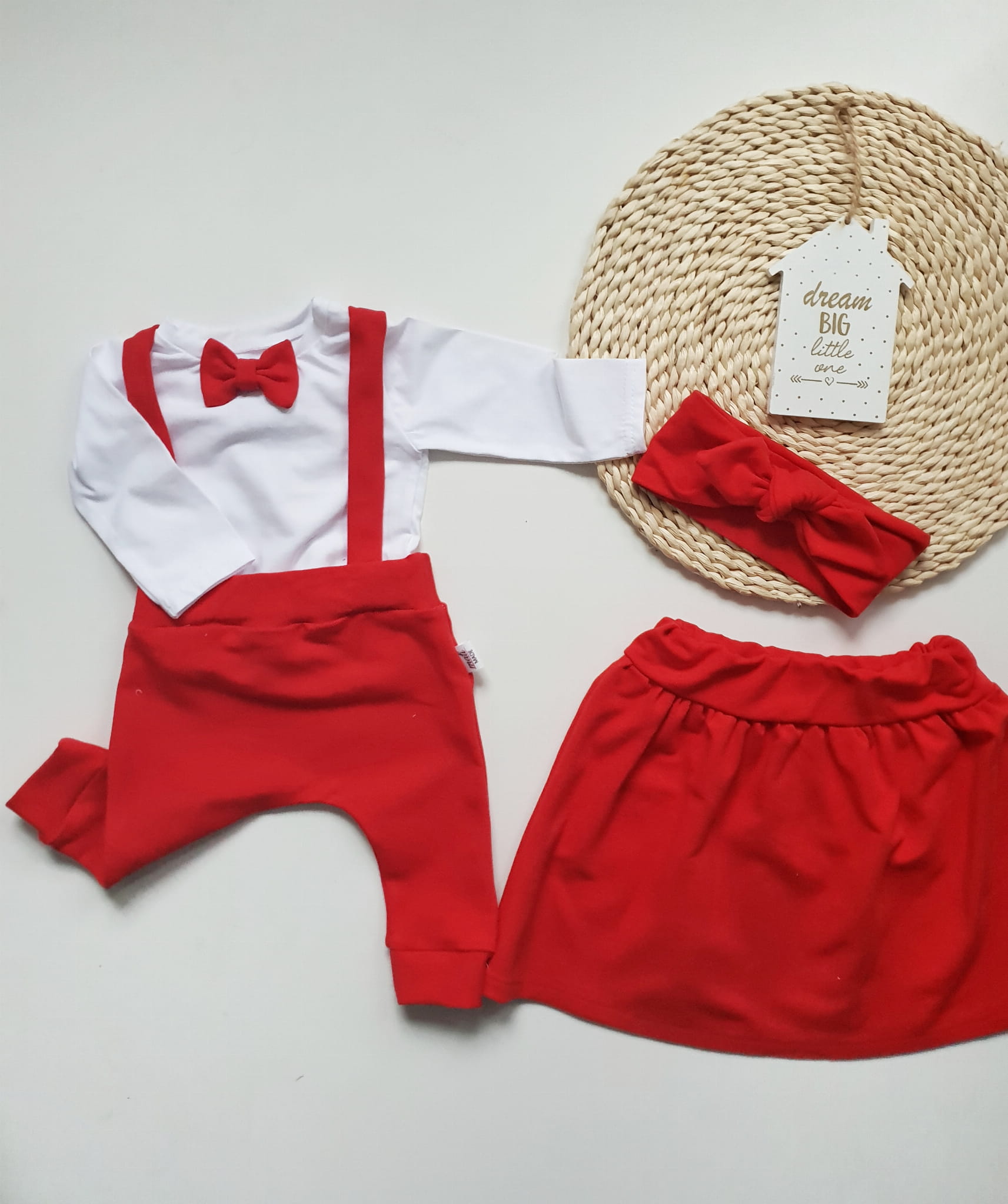 W naszej polskiej pracowni stworzyliśmy ten kompletny zestaw z dbałością o każdy detal! Nasz zespół krawcowych łączy elegancję z komfortem, aby Twoje dziecko mogło błyszczeć na każdej uroczystości. Ten elegancki czerwony komplet to połączenie klasyki i nowoczesności, które sprawi, że każda okazja stanie się wyjątkowa.