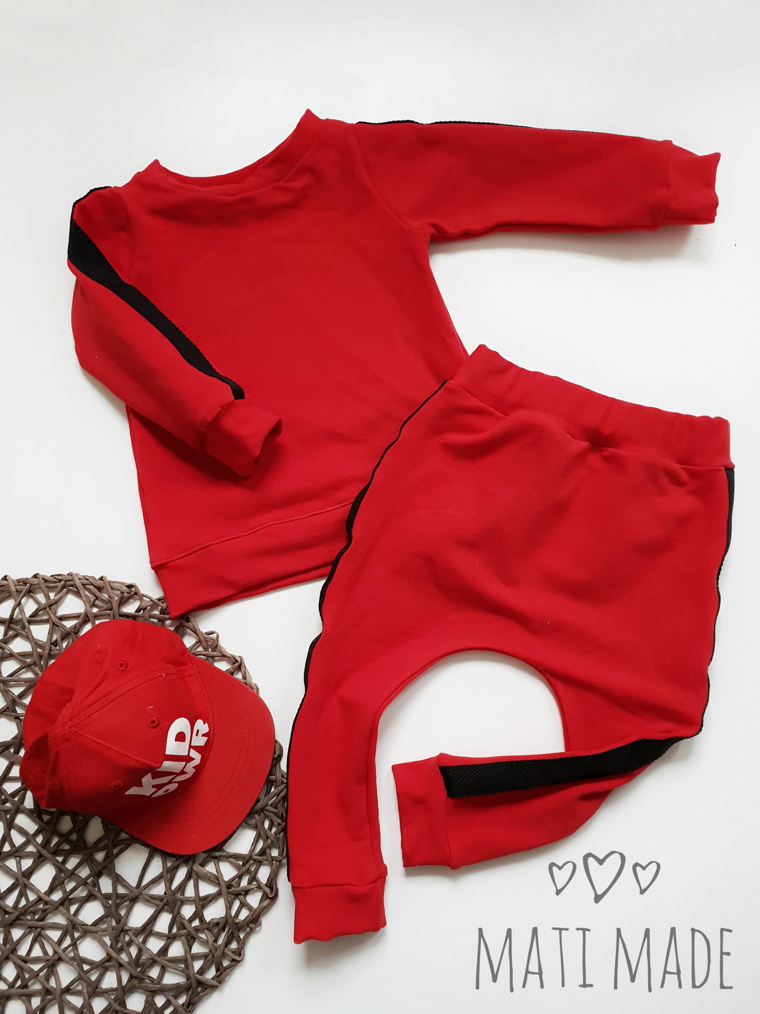 Wyprodukowany w naszej polskiej pracowni przez zespół pełen pasji i zaangażowania! Nasze ubrania to połączenie modnego designu i funkcjonalności, a ten czerwony komplet dresowy z lampasami jest doskonałym przykładem. Idealny dla aktywnych dzieci, które chcą wyglądać świetnie i czuć się wygodnie.