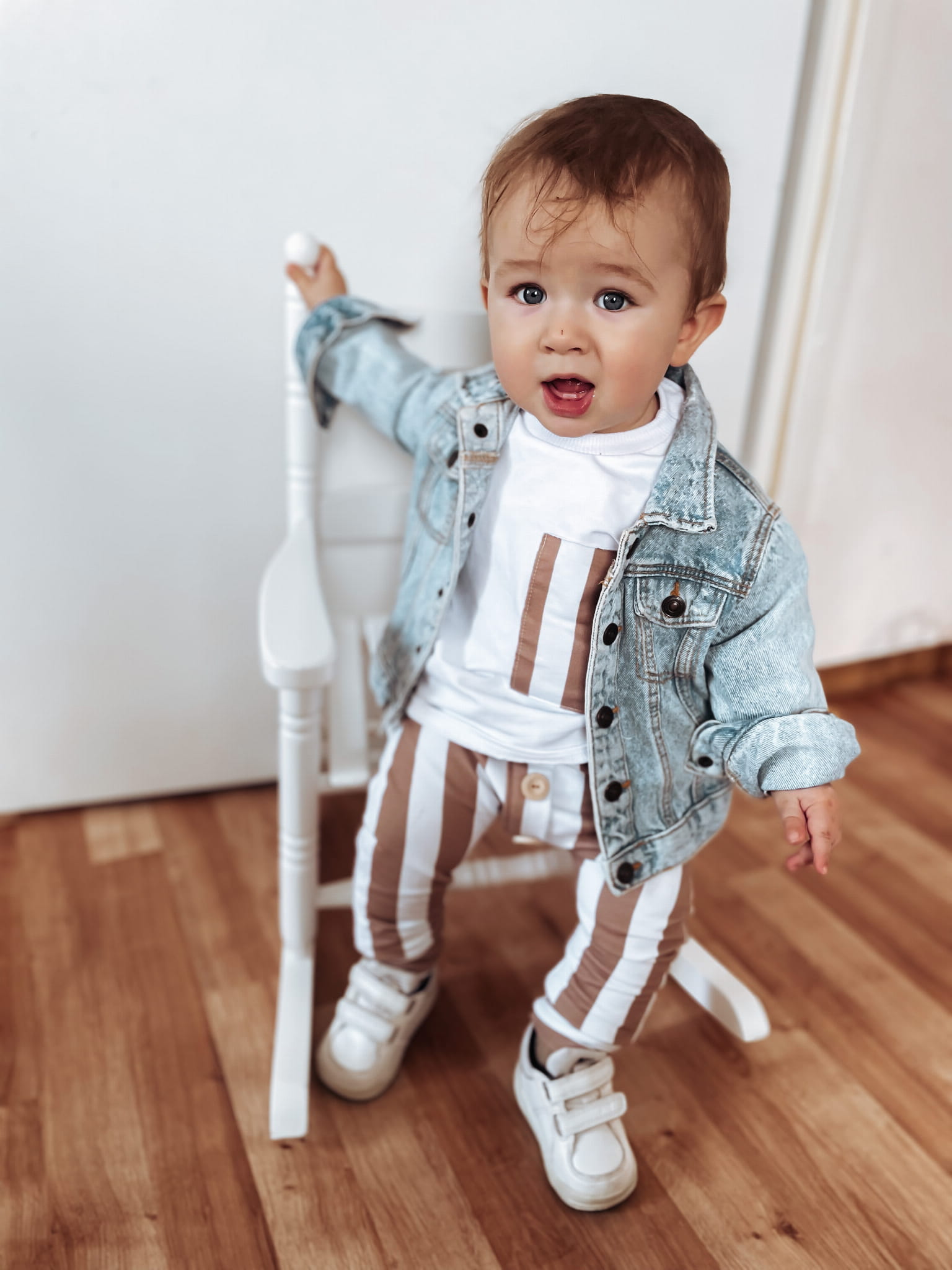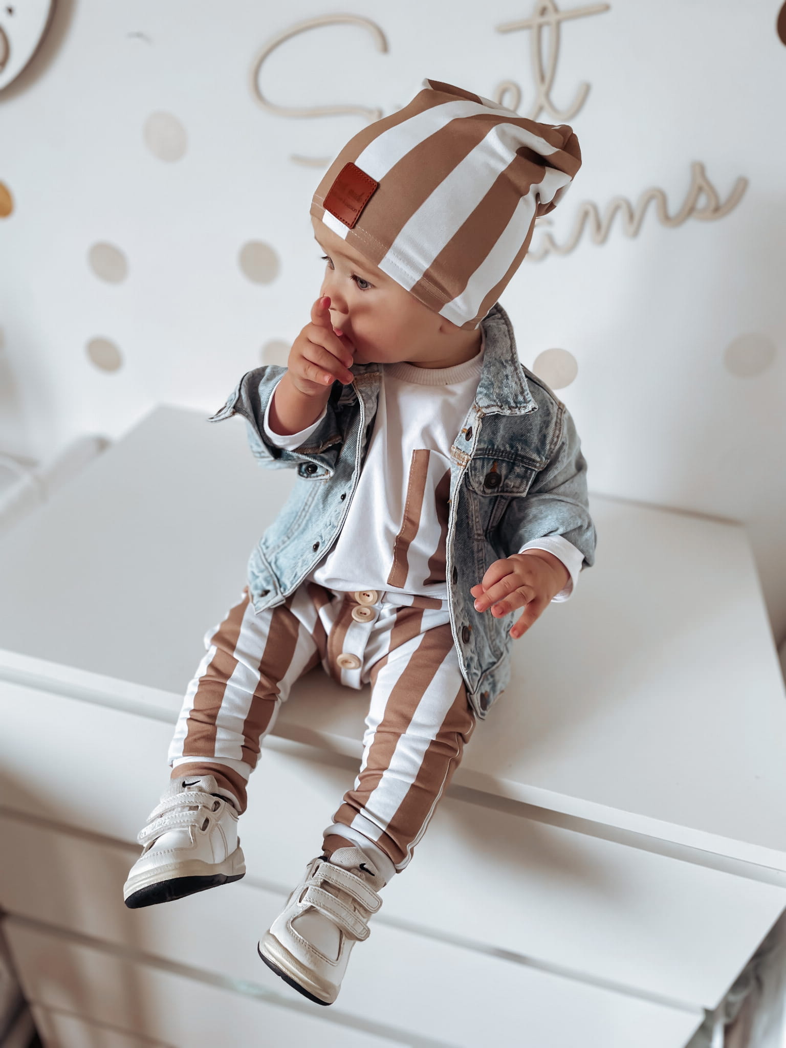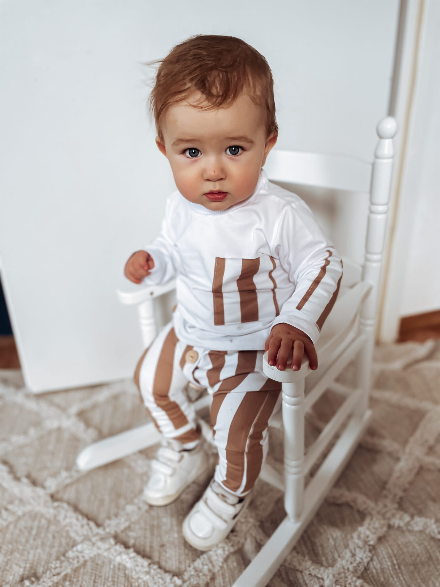 Komplet dziecięcy wykonany z dzianiny dresowej.