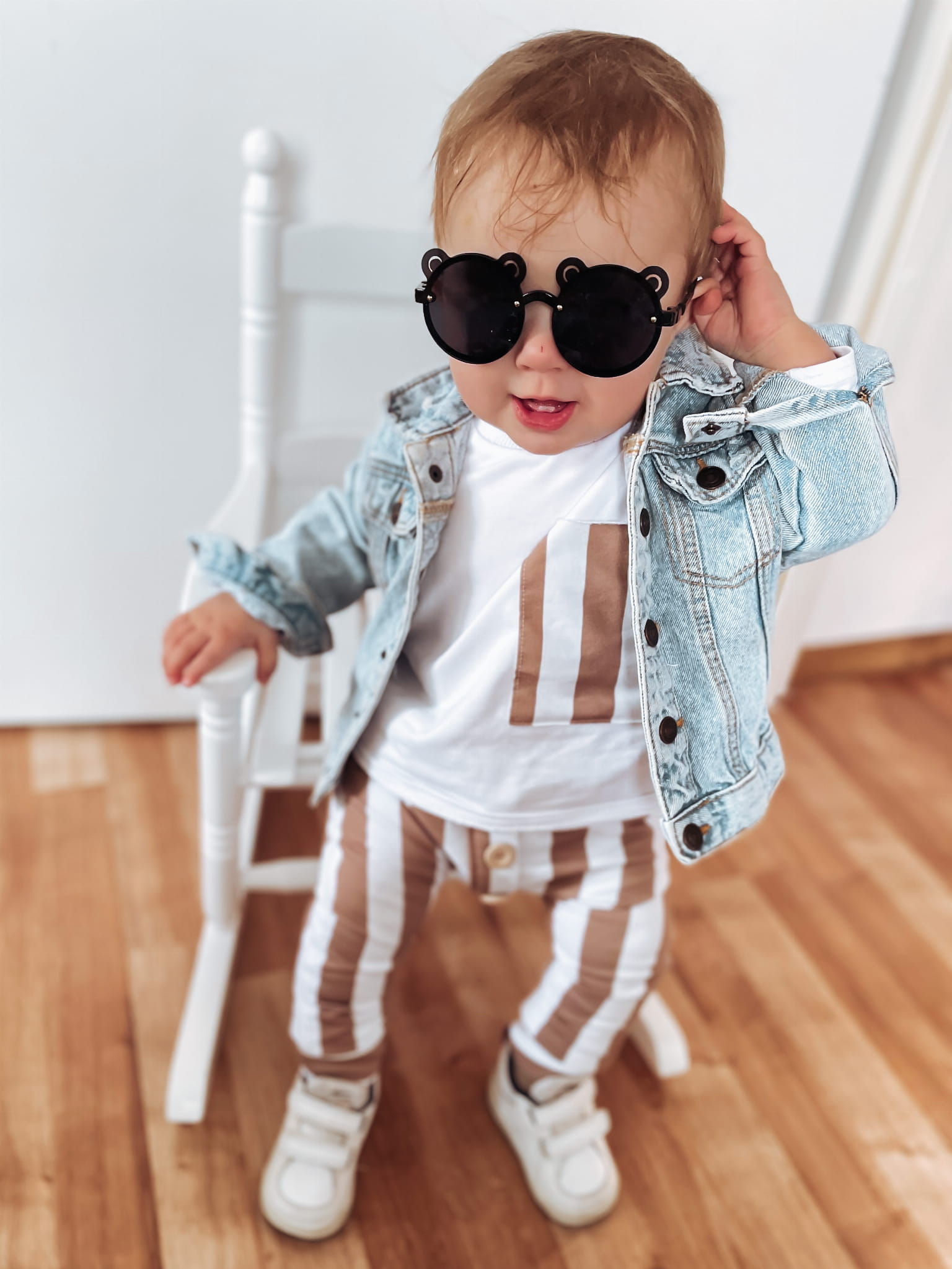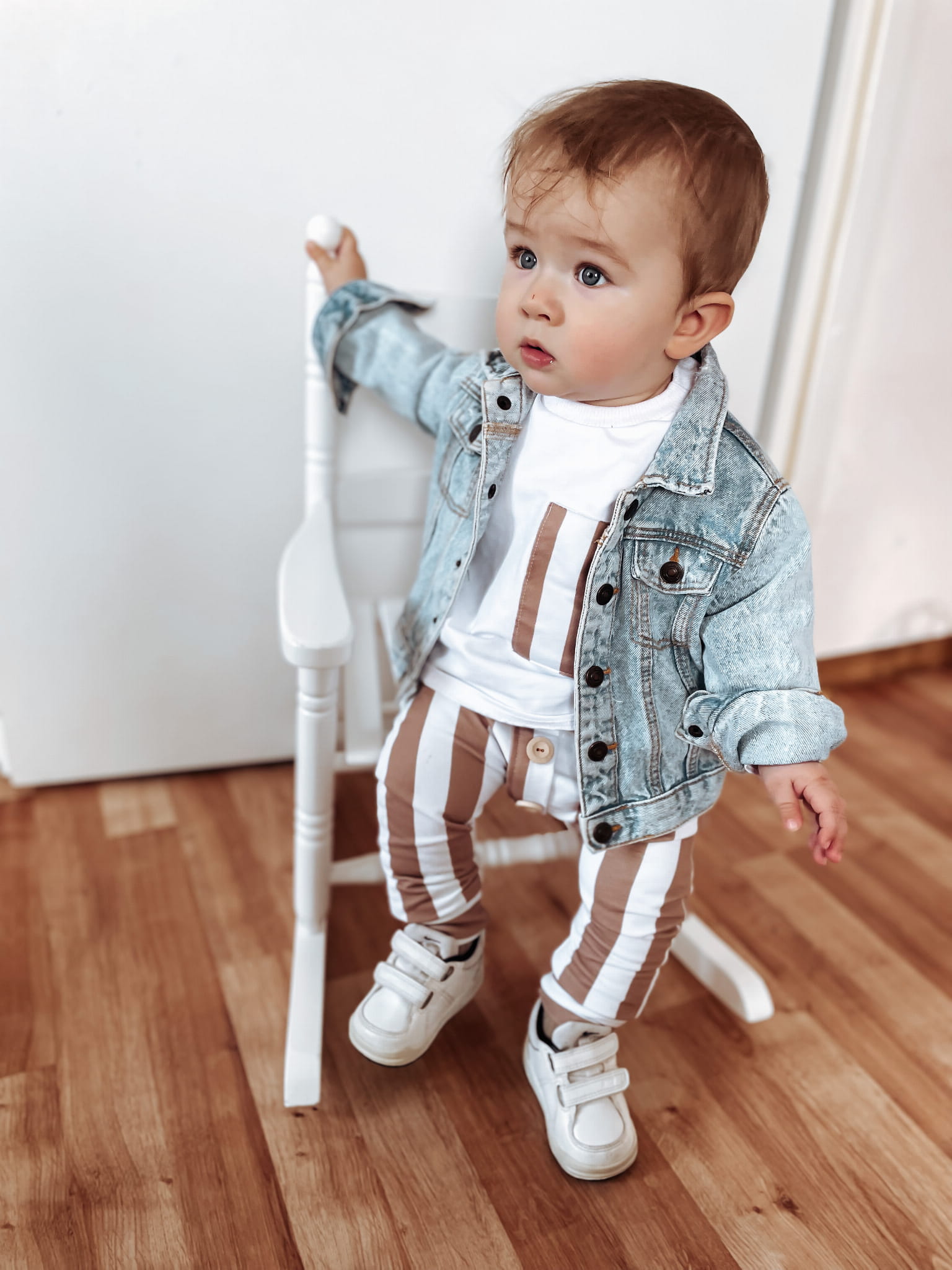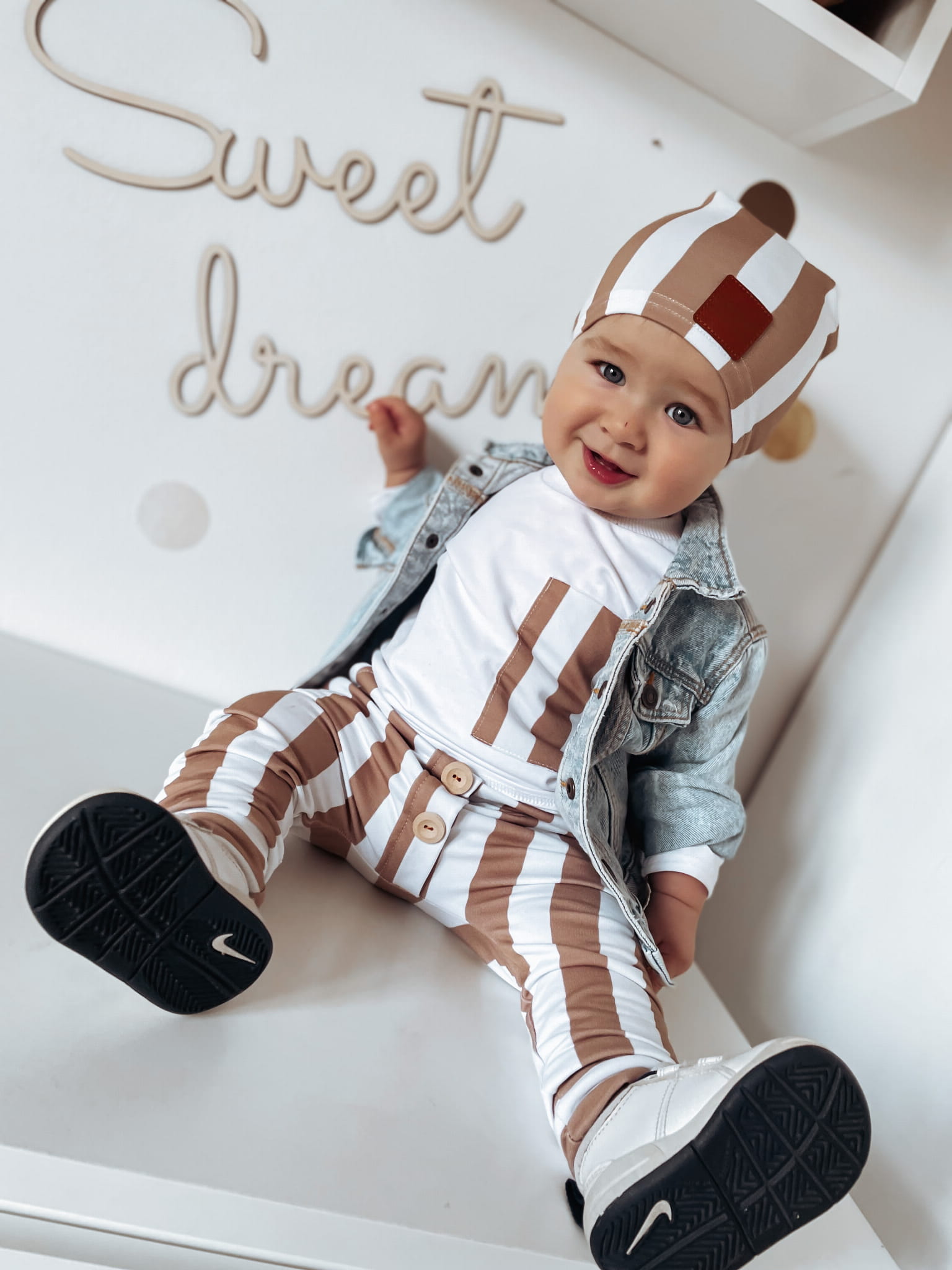 Komplet dziecięcy wykonany z dzianiny dresowej.