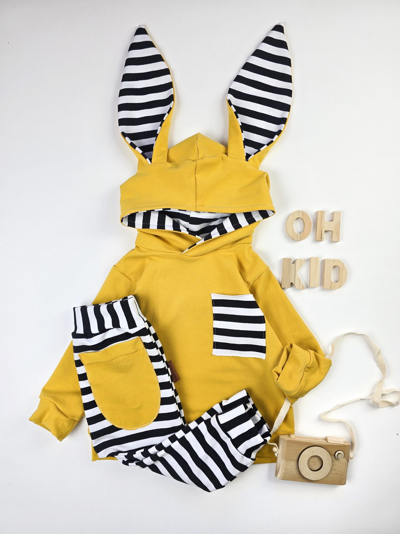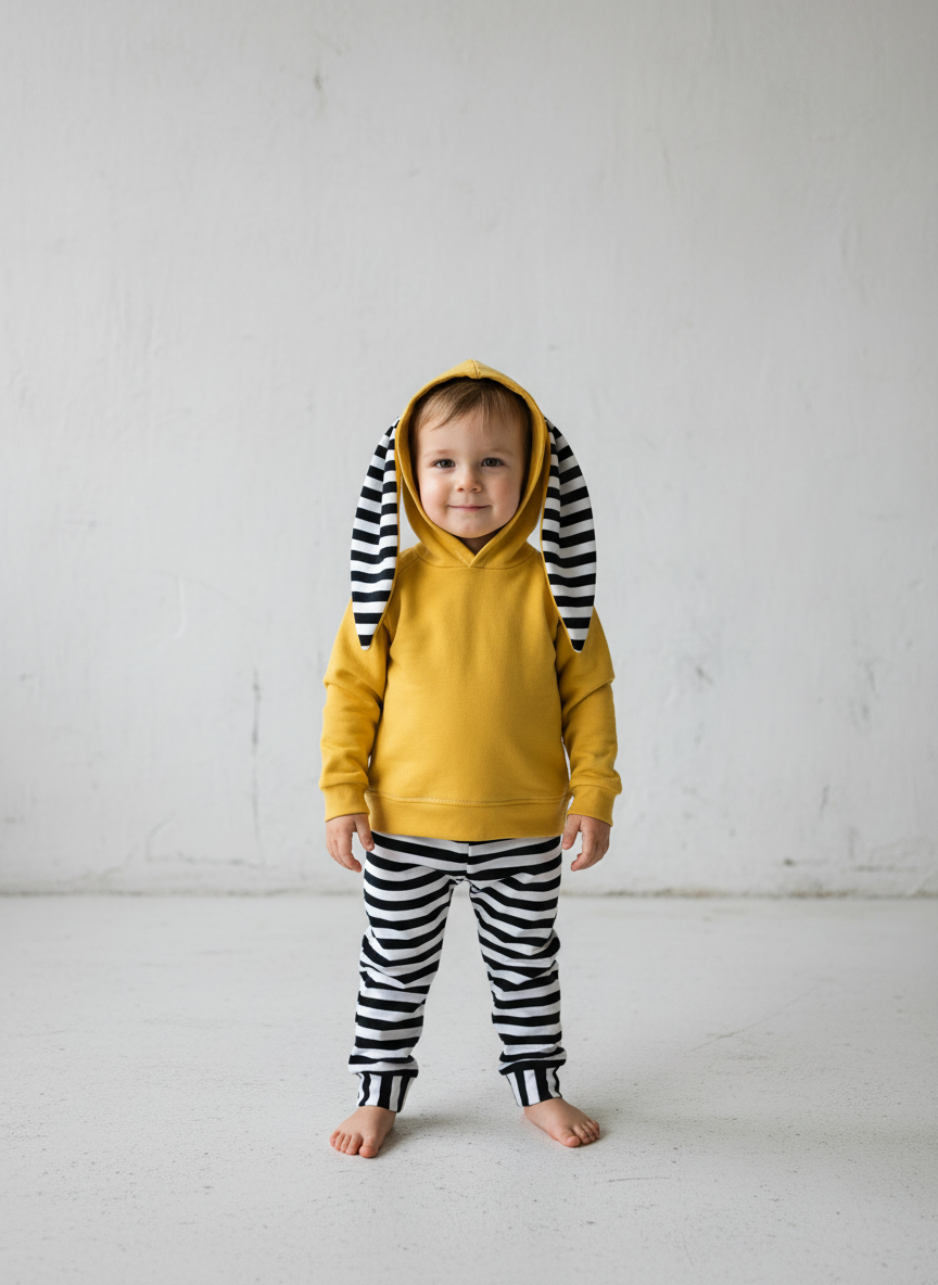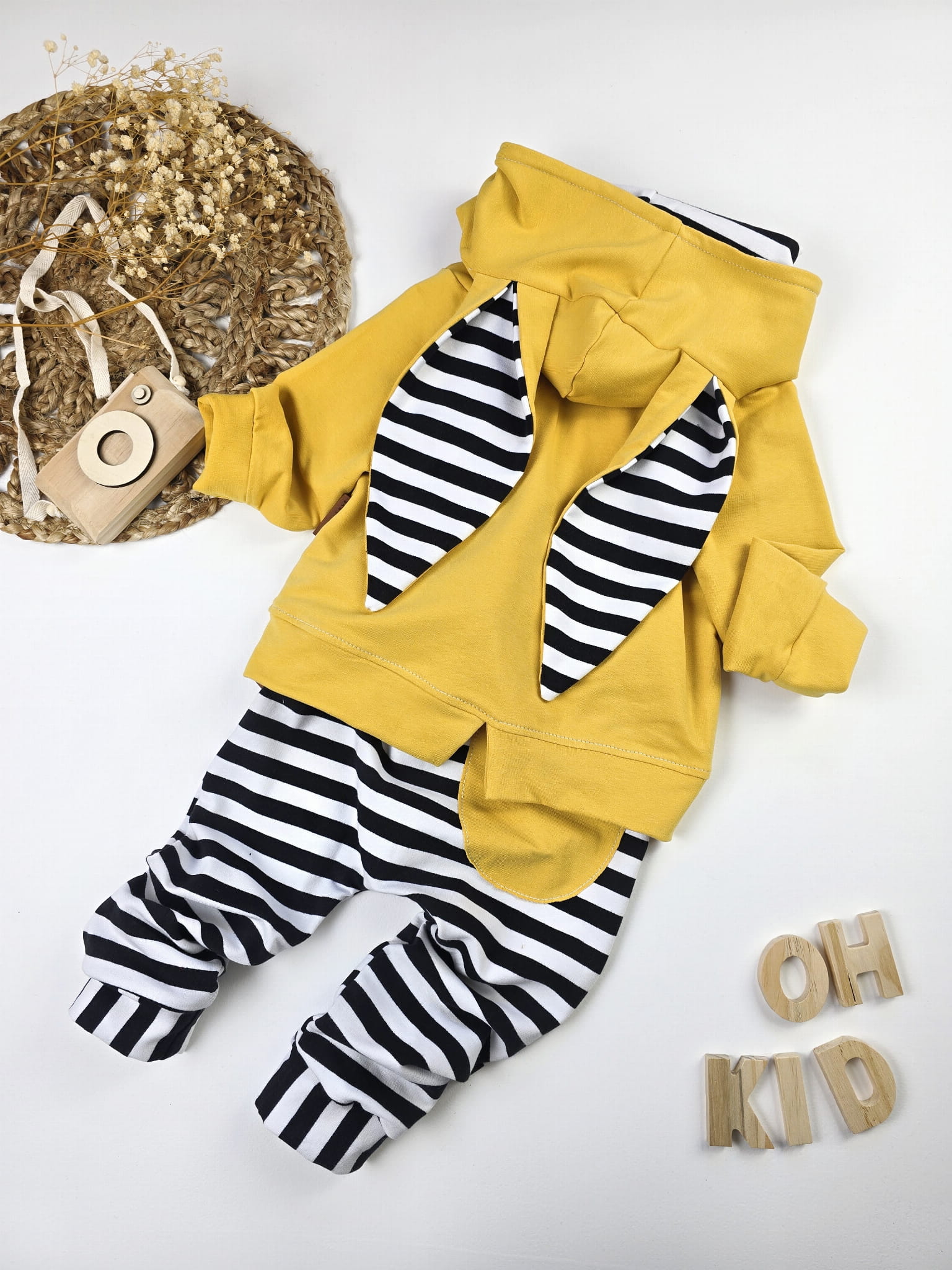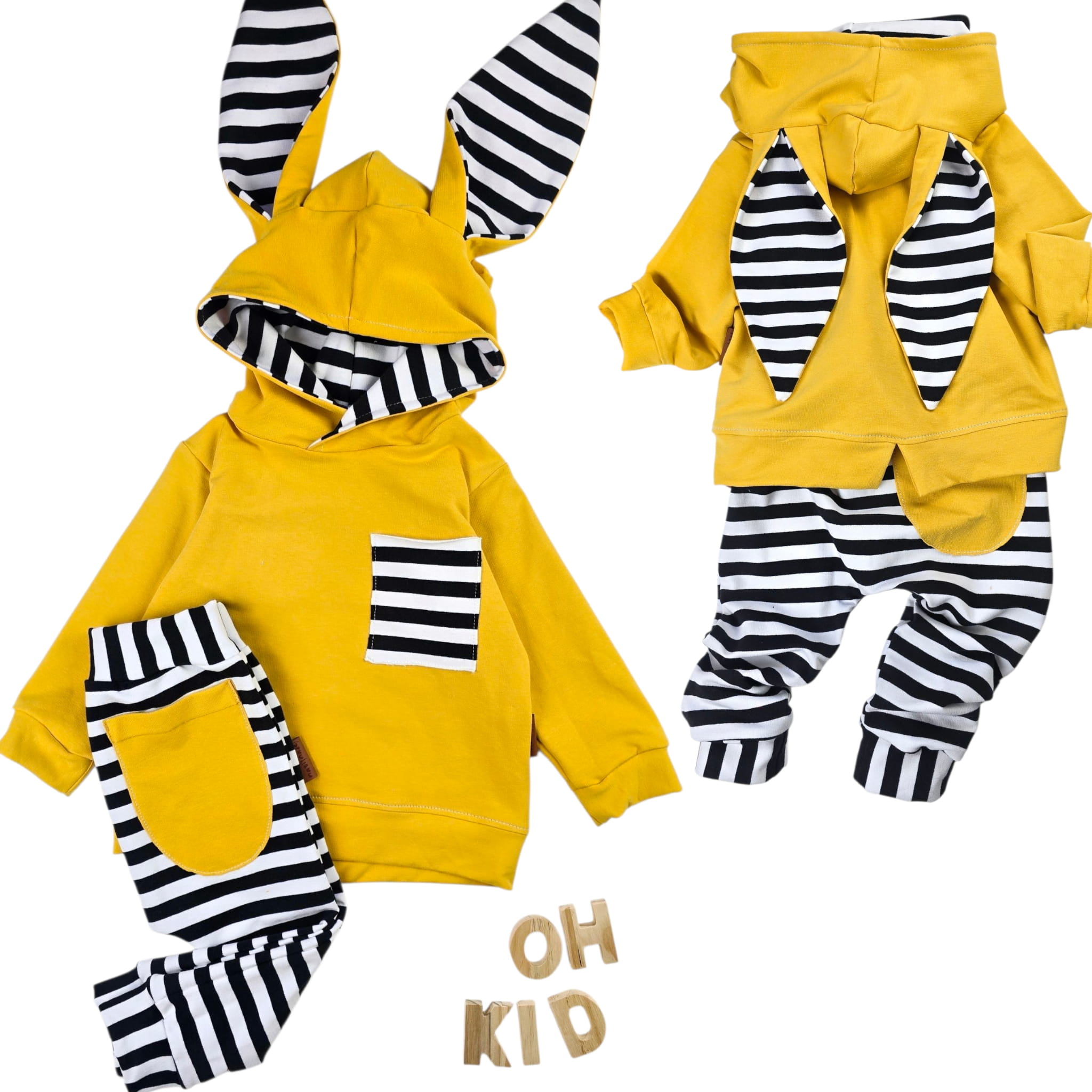 Komplet Dresowy „Króliczek” z Paskami i Mustardowym Akcentem – Stworzony w Naszej Polskiej Pracowni!