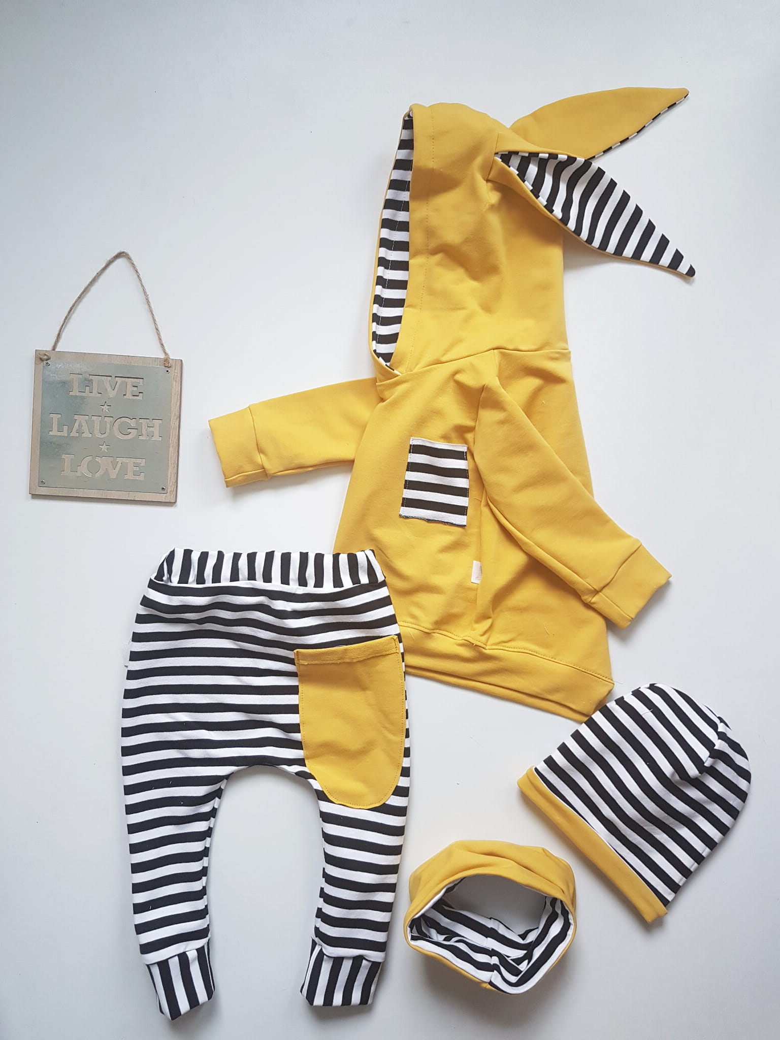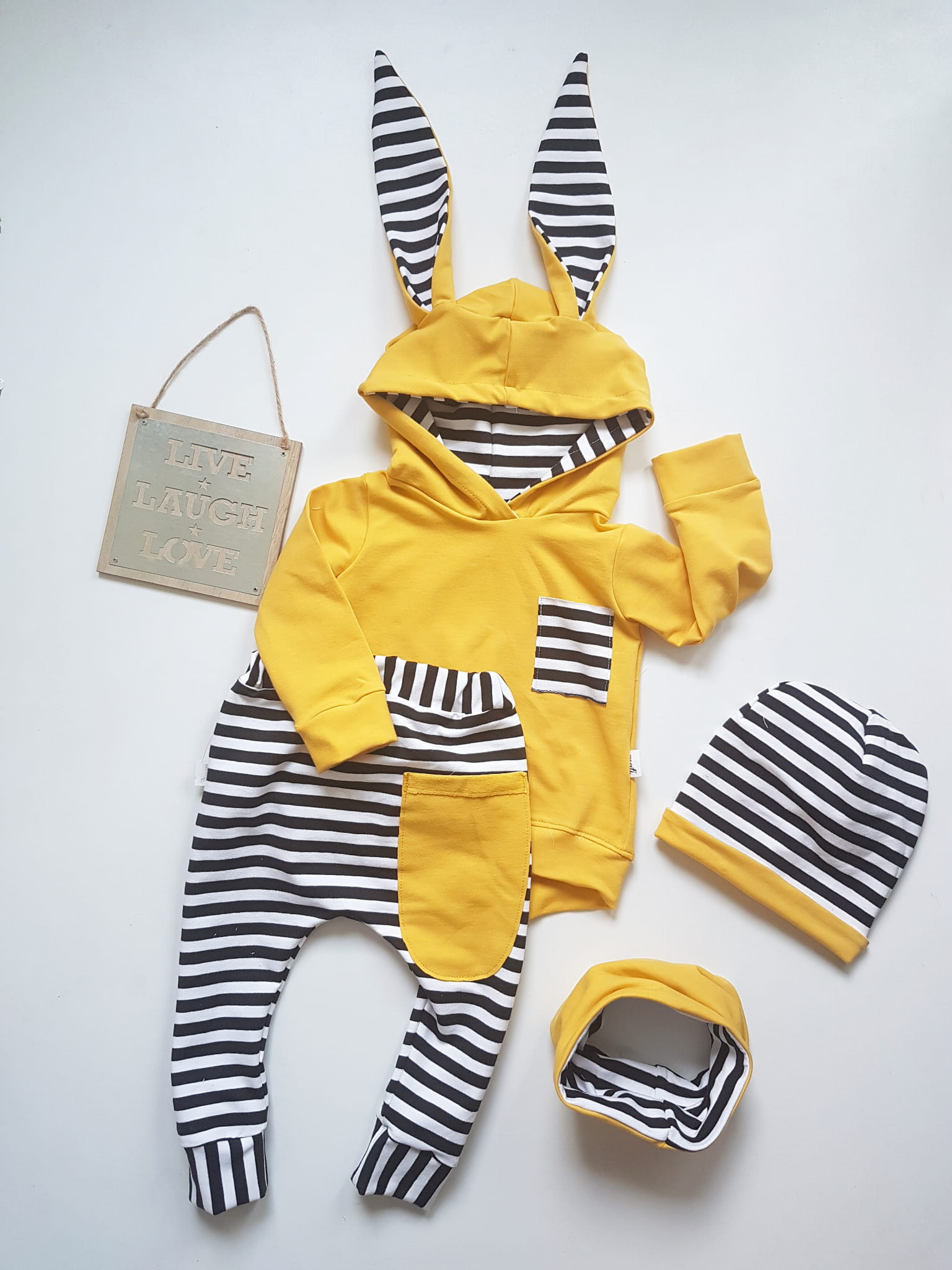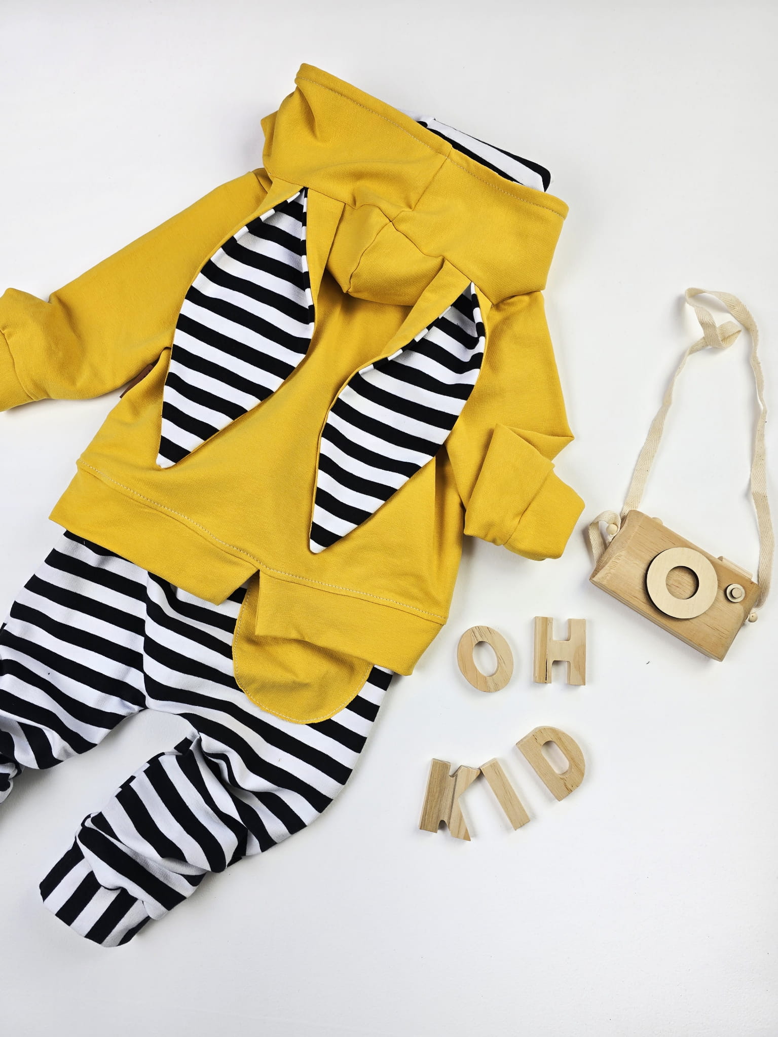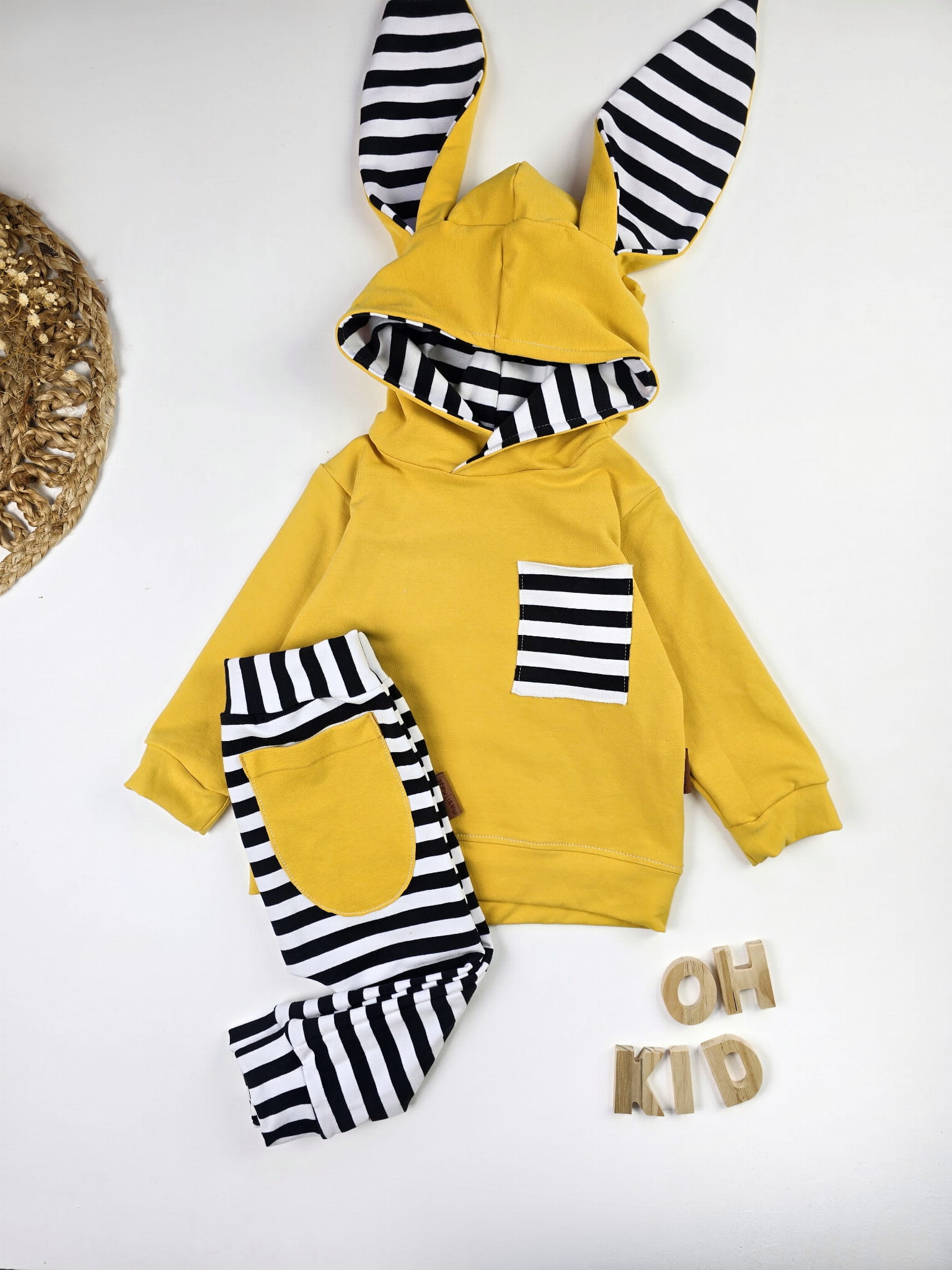 Komplet Dresowy „Króliczek” z Paskami i Mustardowym Akcentem – Stworzony w Naszej Polskiej Pracowni!