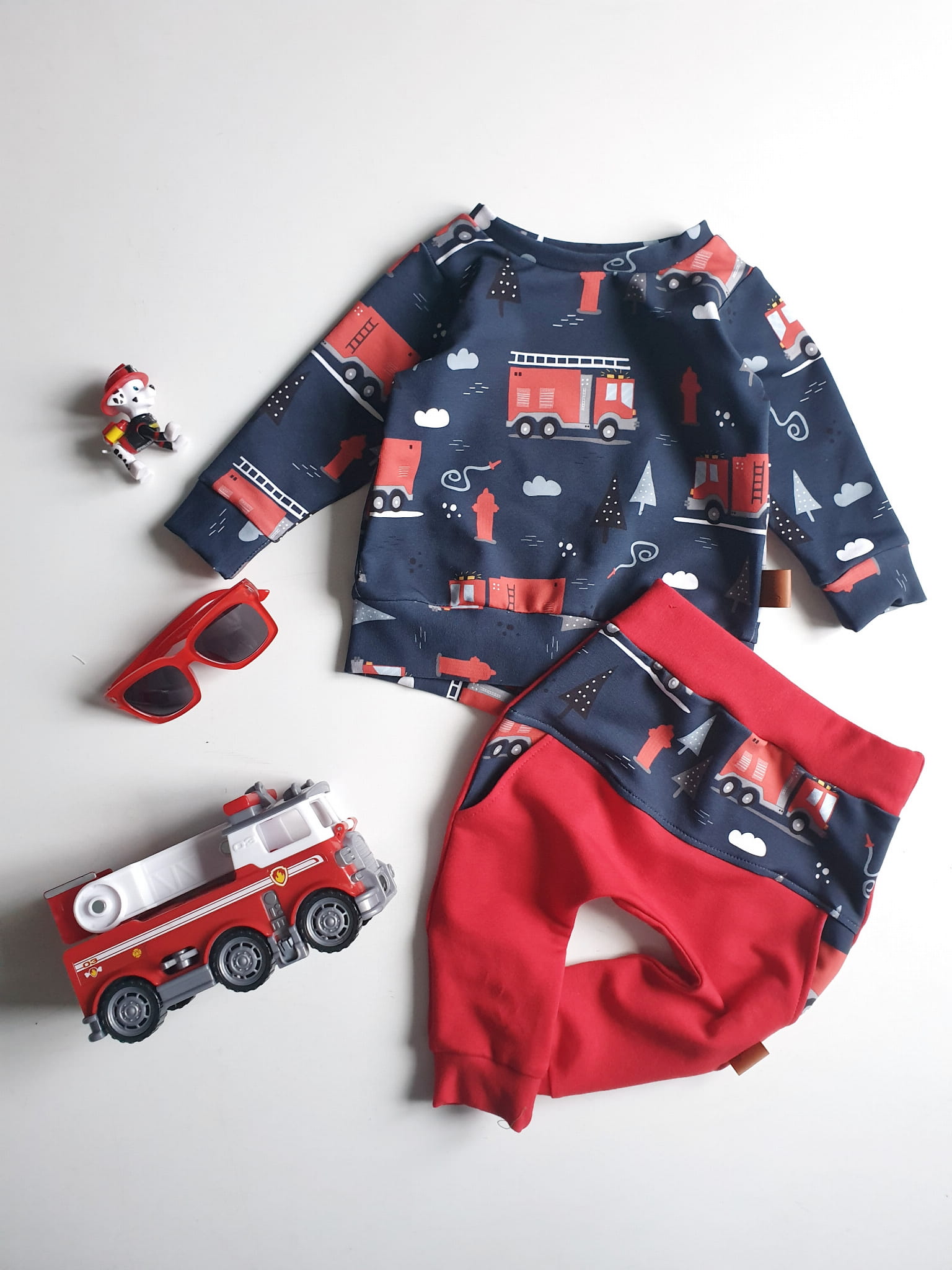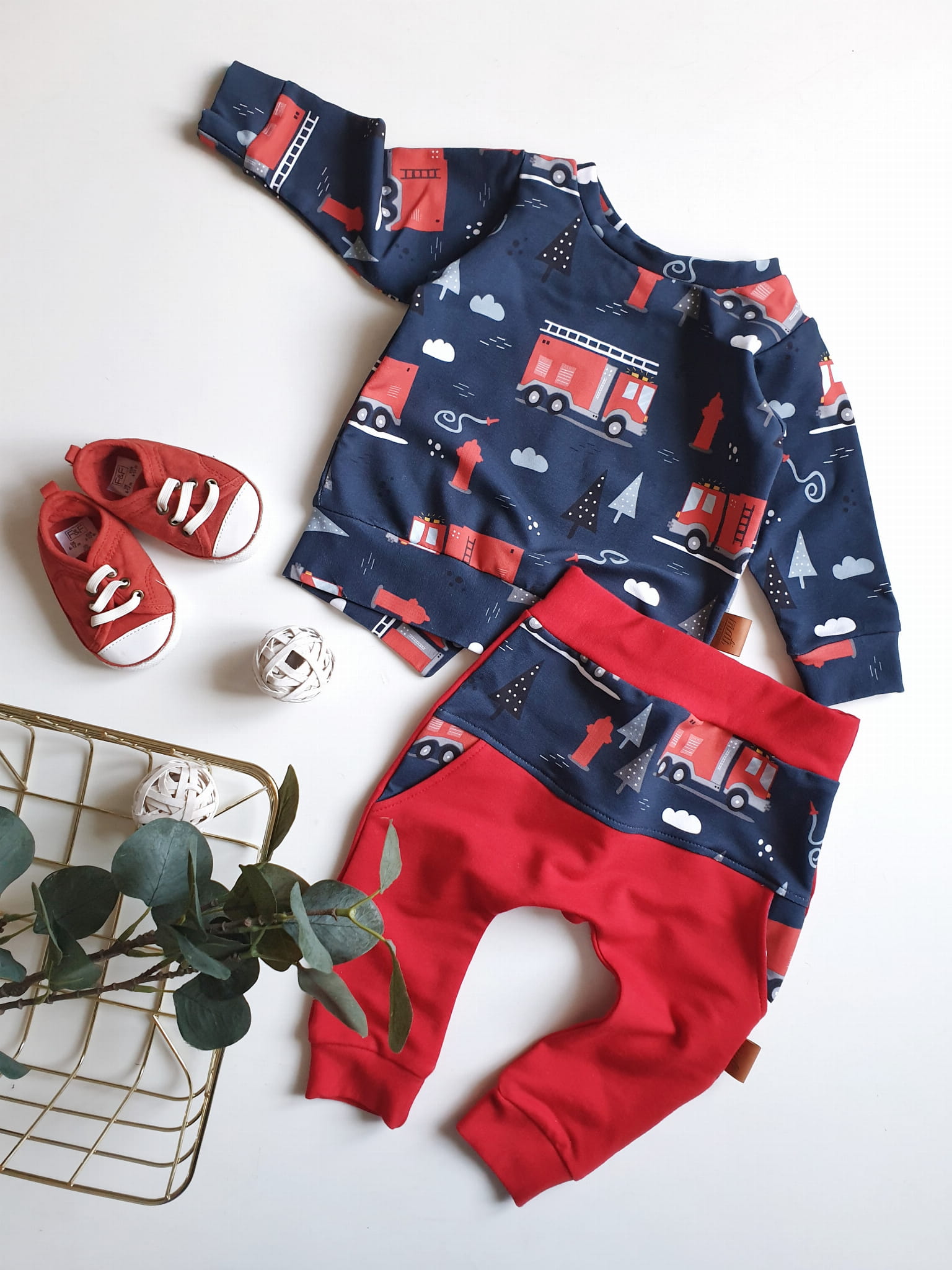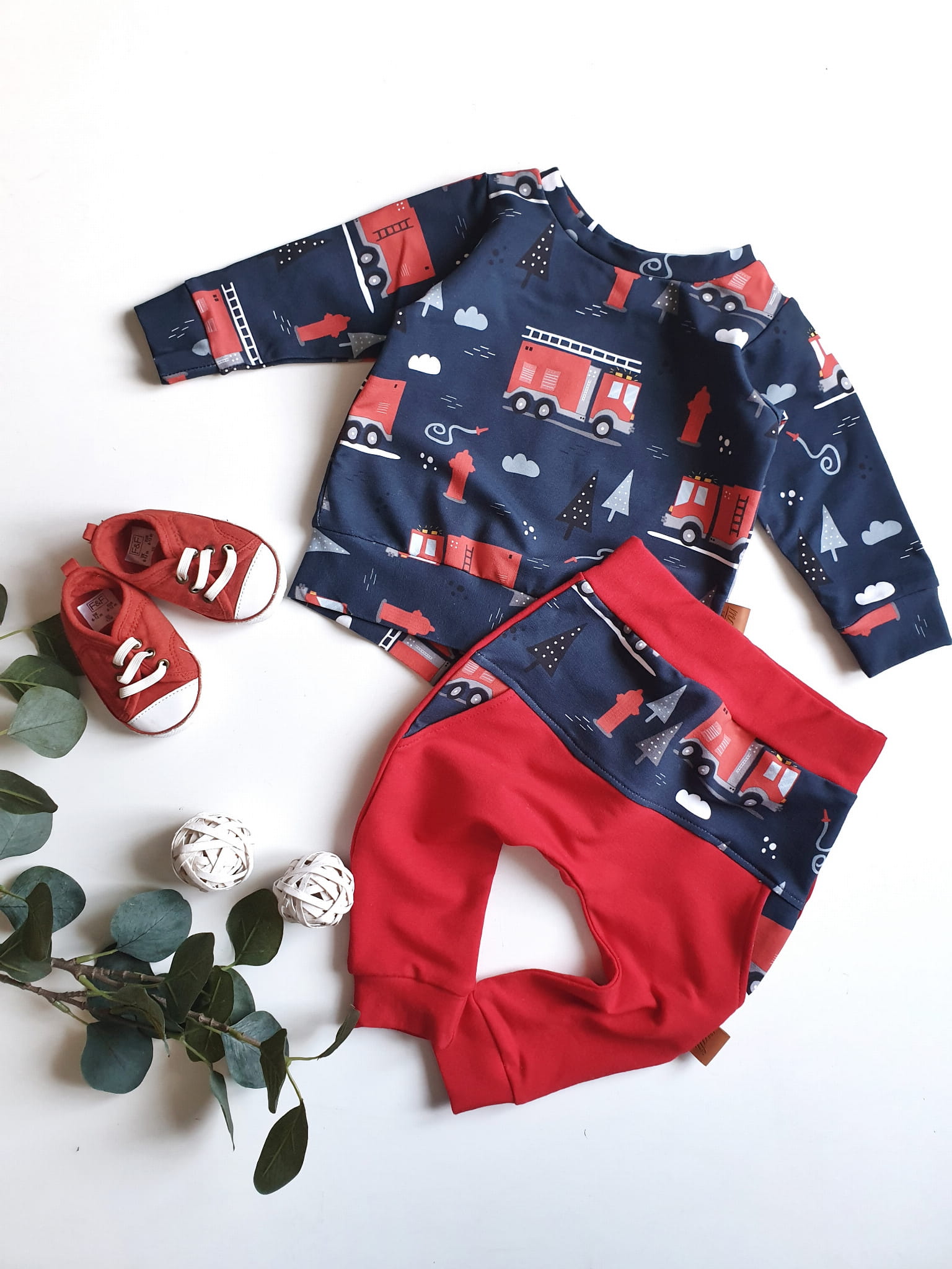 Komplet dziecięcy wykonany z dzianiny dresowej.