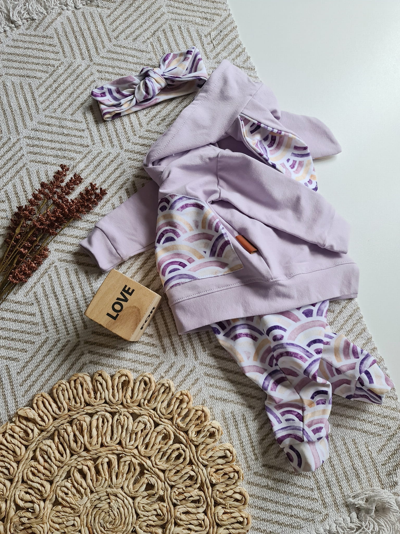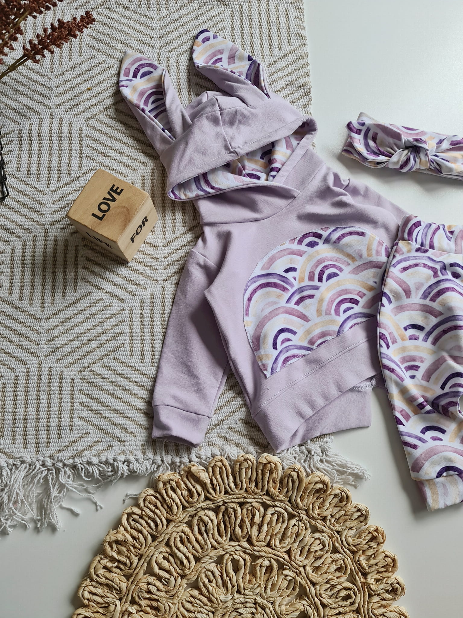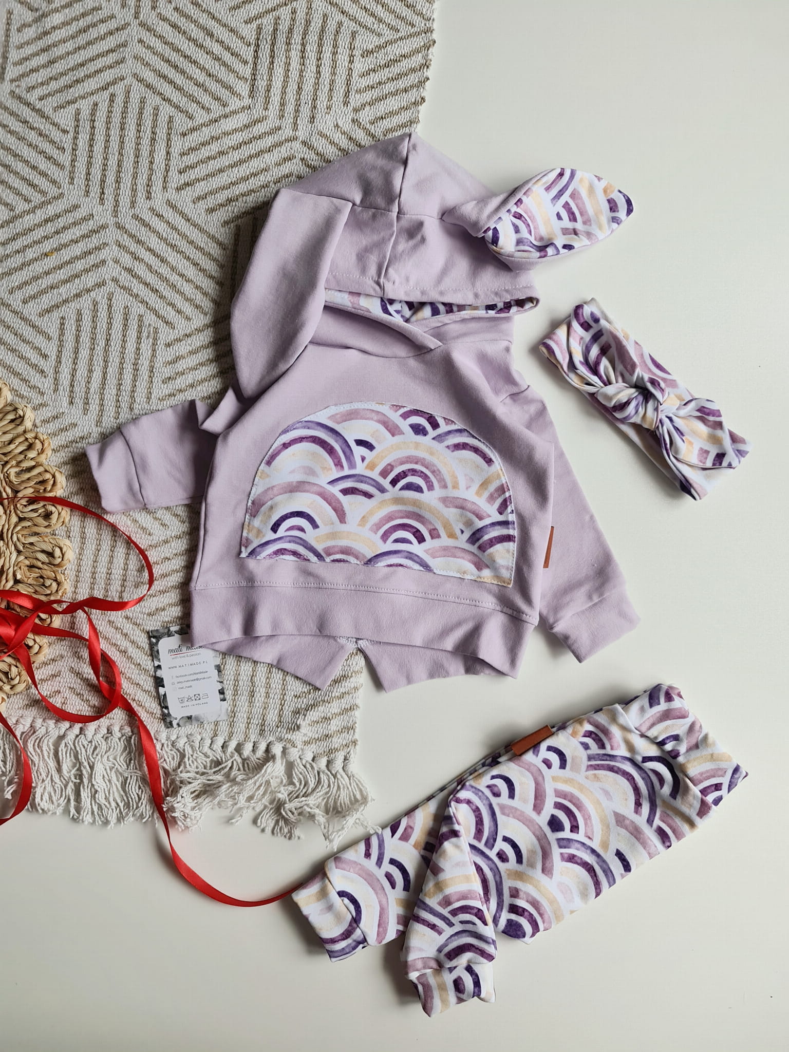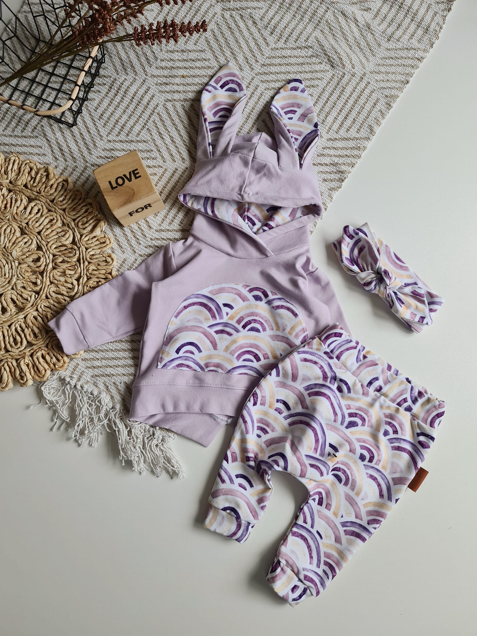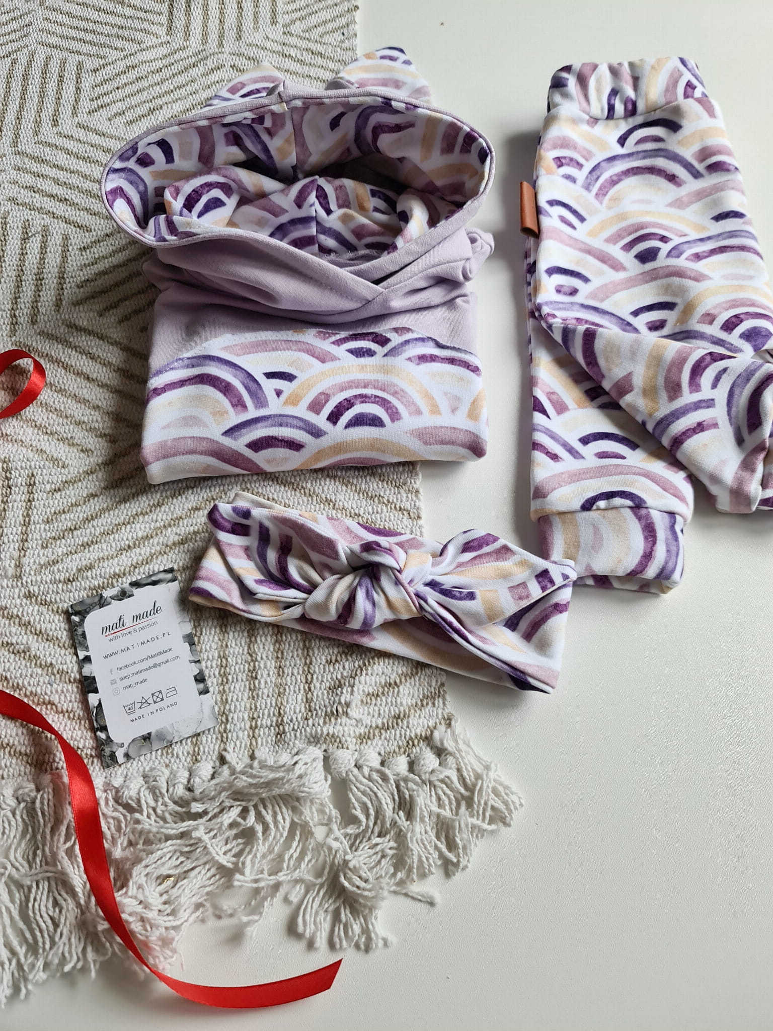Komplet dziecięcy wykonany z dzianiny dresowej.