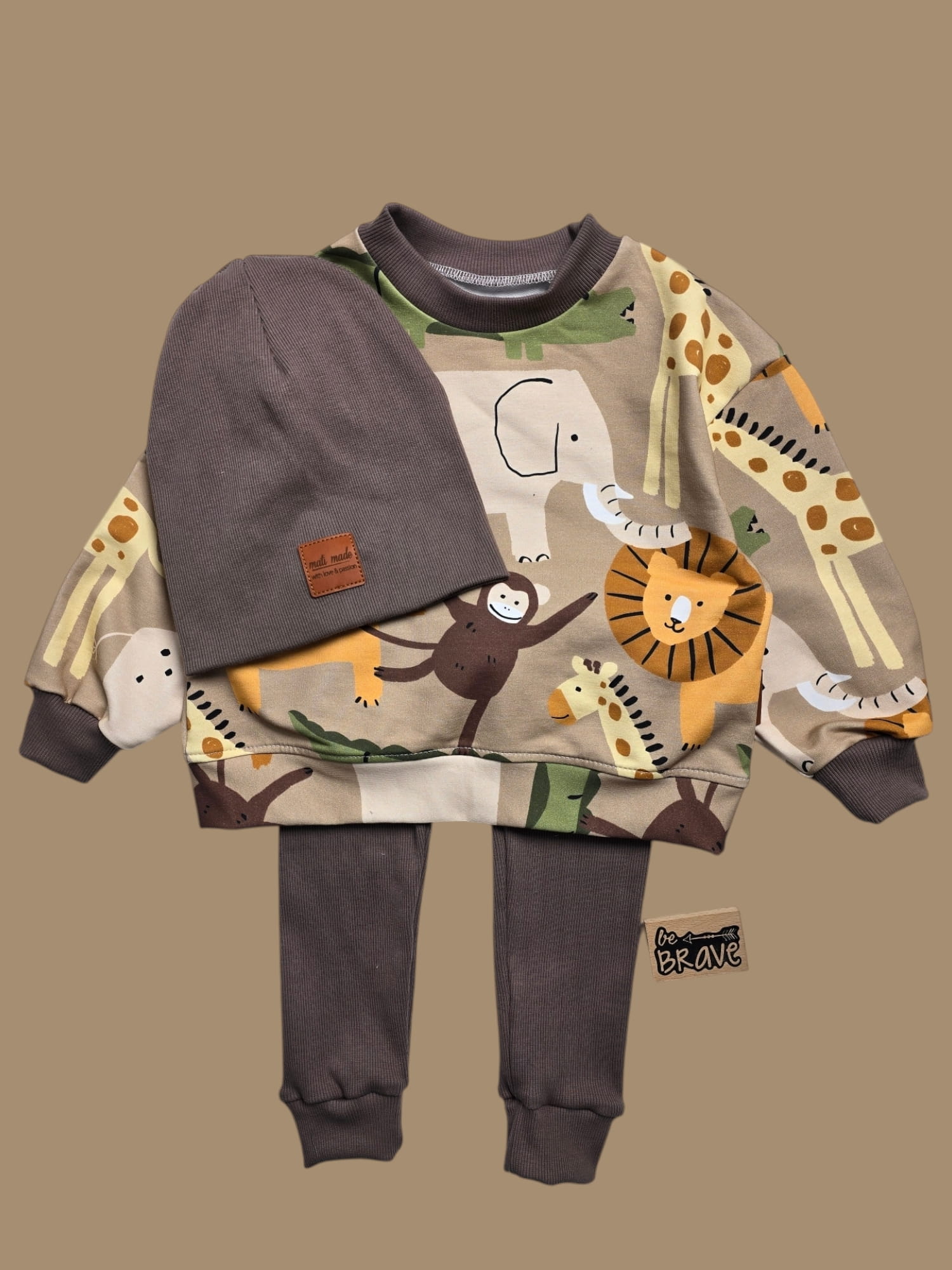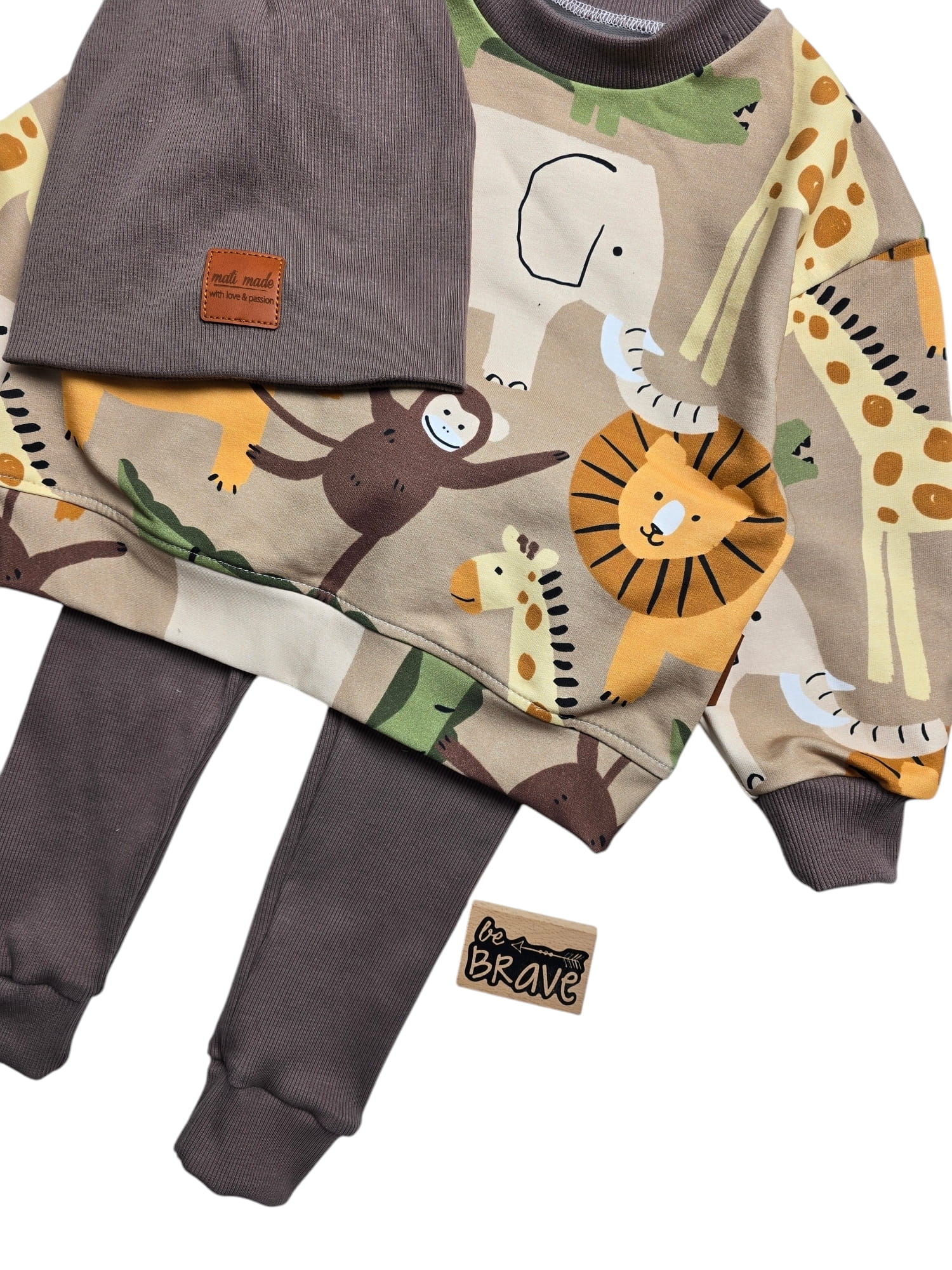 Komplet dziecięcy Safari - Bluza oversize i legginsy z prążka