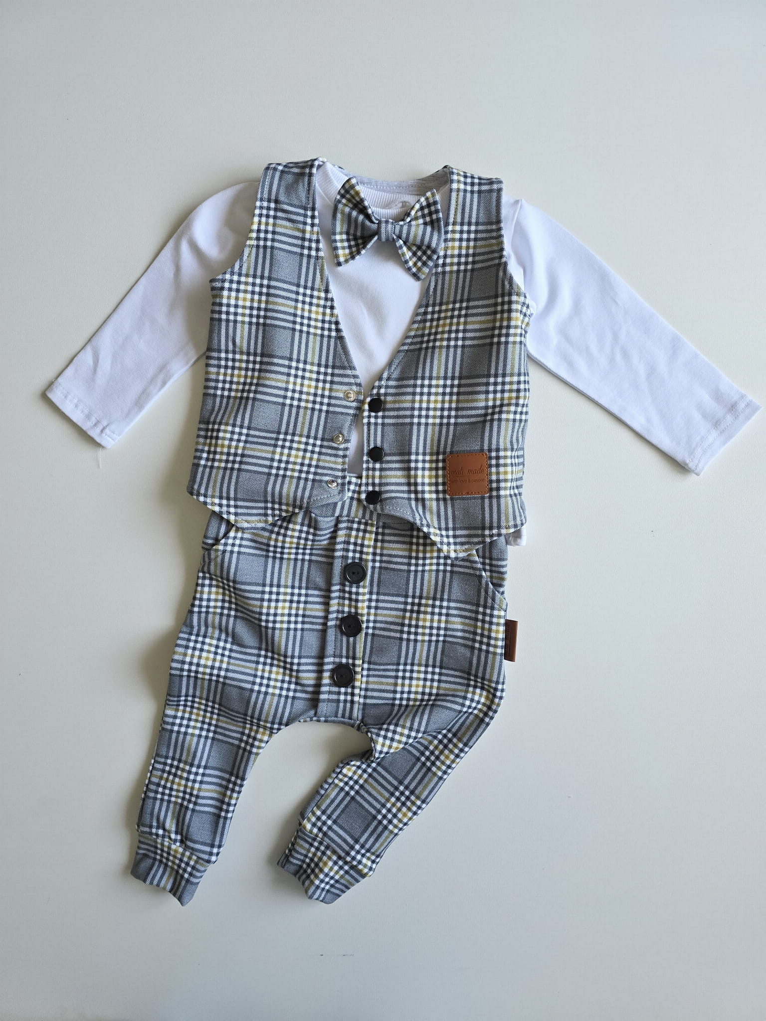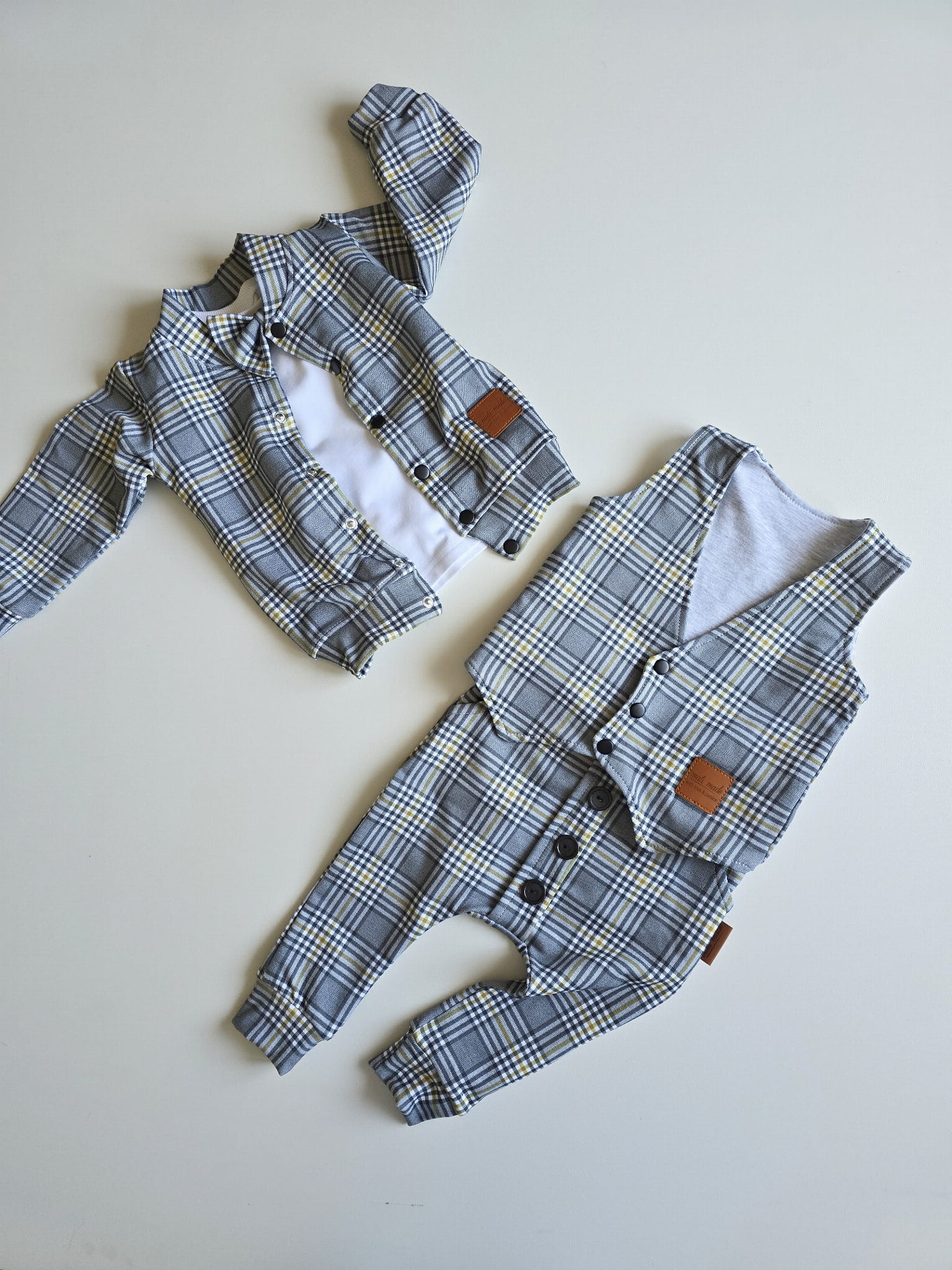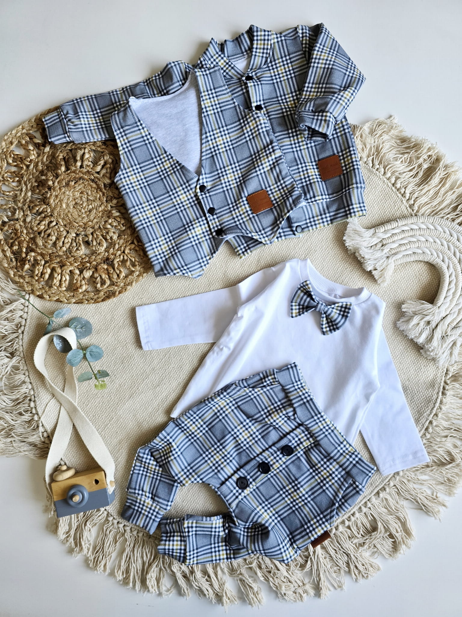 Komplet "Adaś" to elegancka i komfortowa propozycja dla chłopców, która sprawdzi się na wiele wyjątkowych okazji, takich jak chrzciny, urodziny, wesela czy sesje zdjęciowe.
