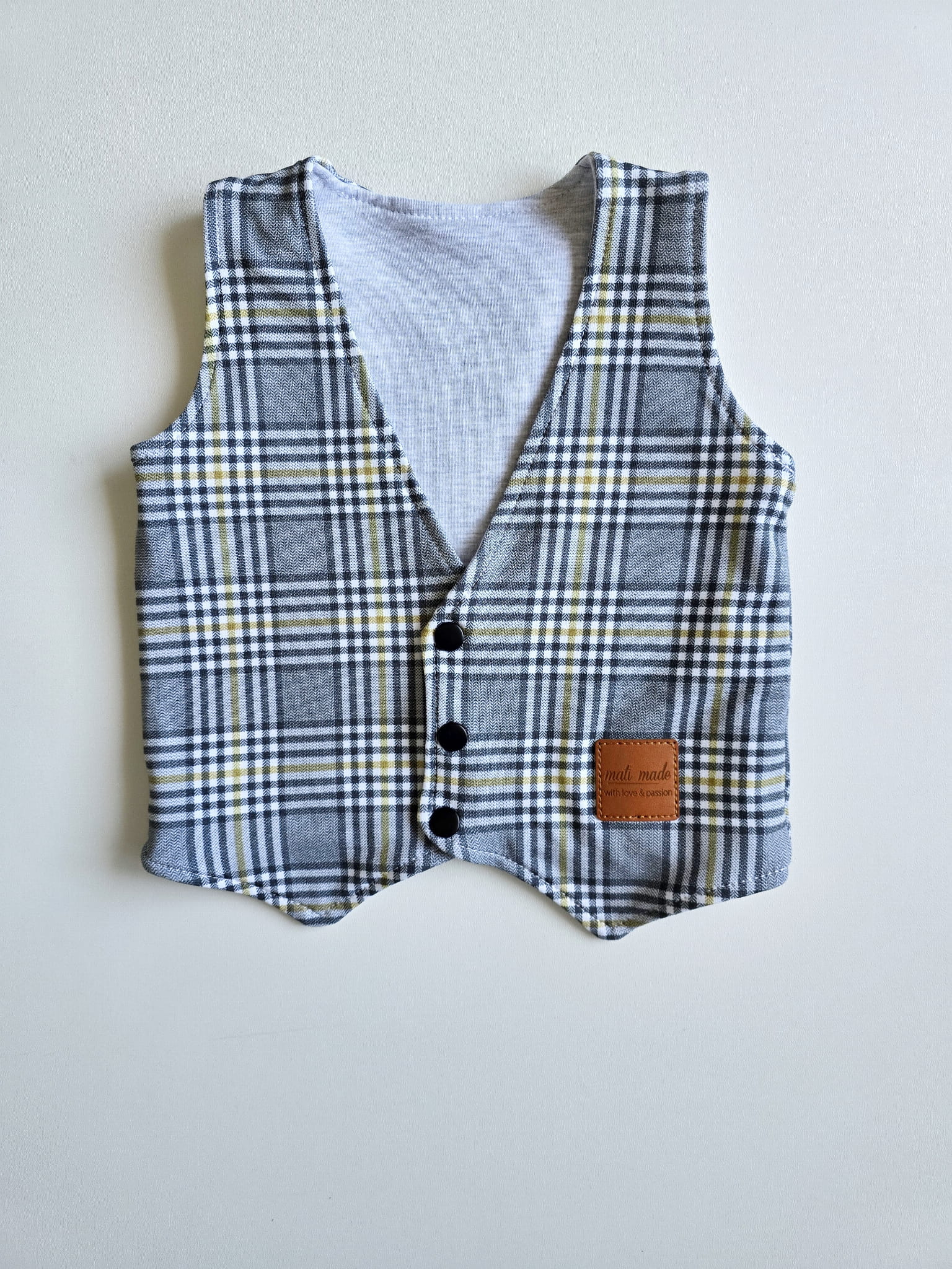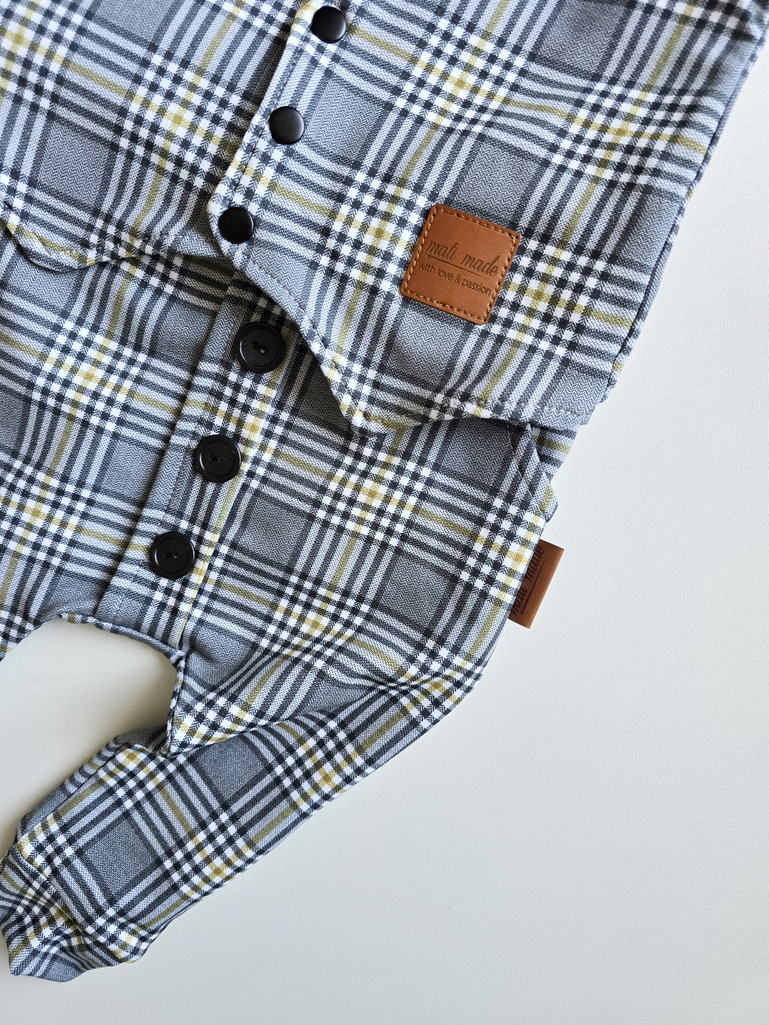 Komplet "Adaś" jest starannie i precyzyjnie szyty w naszej pracowni w Polsce, co gwarantuje najwyższą jakość i dbałość o detale. Każdy element jest tworzony z miłością i pasją, aby spełnić oczekiwania najbardziej wymagających rodziców i zapewnić maluchom komfort noszenia.