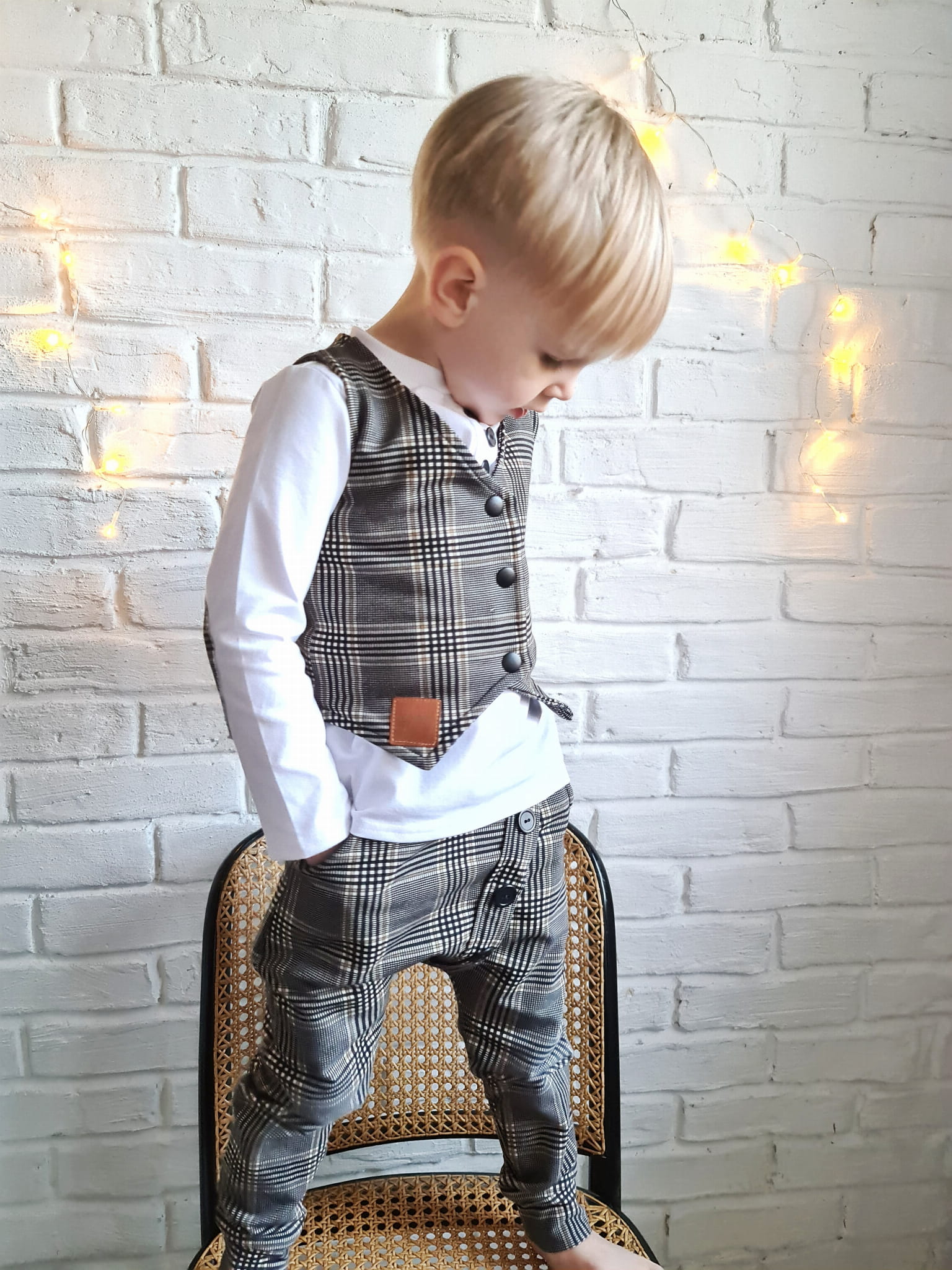 - Z Szelkami: Stylizacja z szelkami to hit modowy wśród małych dżentelmenów. Szelki nie tylko pełnią funkcję dekoracyjną, ale również praktyczną, utrzymując spodnie na właściwym miejscu.
