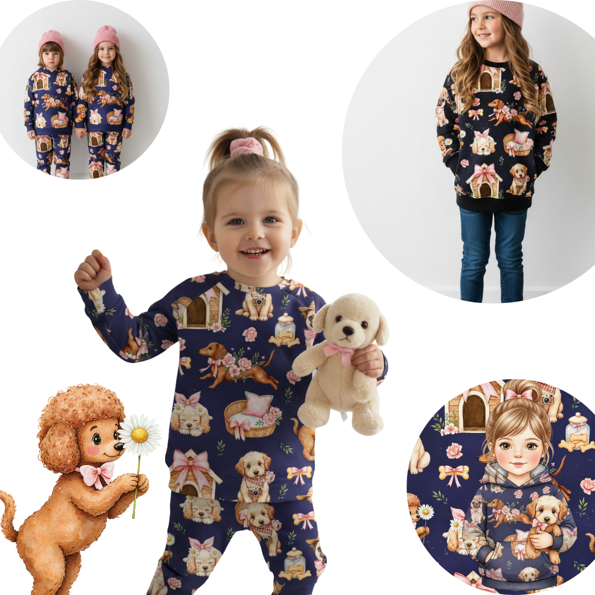 Kolekcja PUPPY LOVE to propozycja dla dzieci, które kochają pieski, przytulanki i wszystkie urocze motywy. W preorderze możesz zamówić bluzy, spodnie i komplety z wyjątkowym wzorem w słodkie szczeniaki. To idealne ubranka dla dziewczynki i chłopca do przedszkola, szkoły i na co dzień.