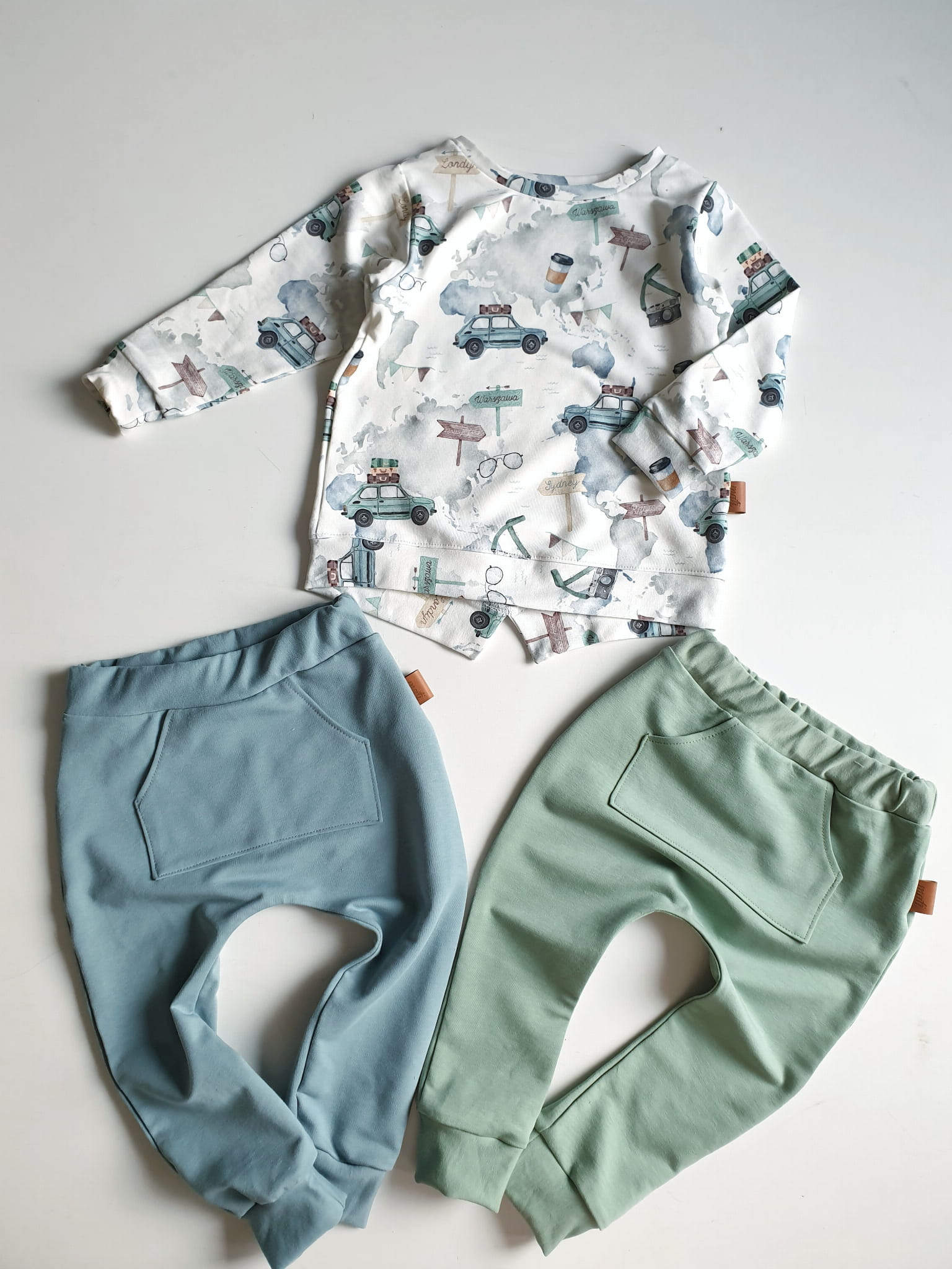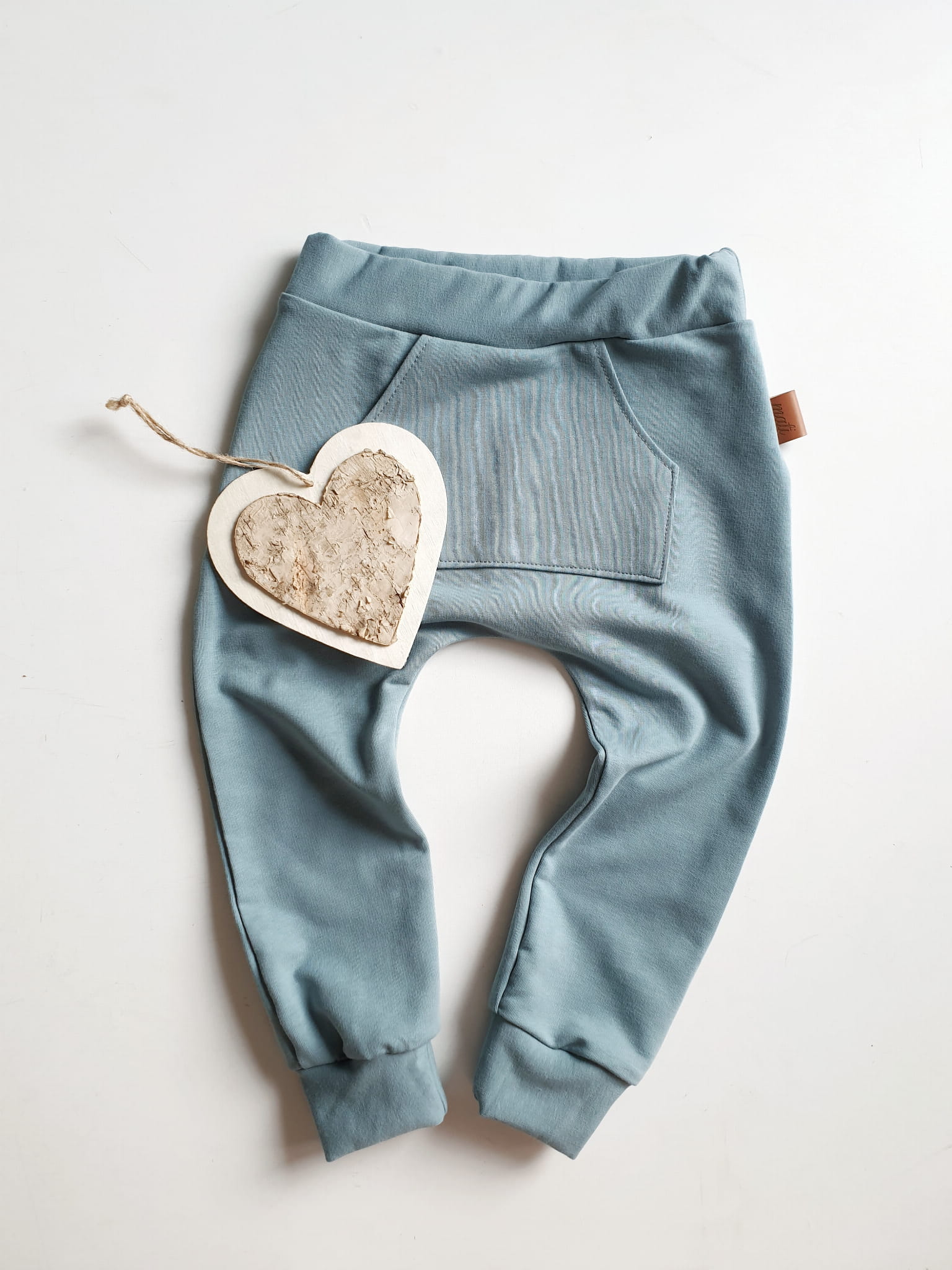 Spodnie dla Dzieci Baggy - Brudny Niebieski z Kieszenią Kangura