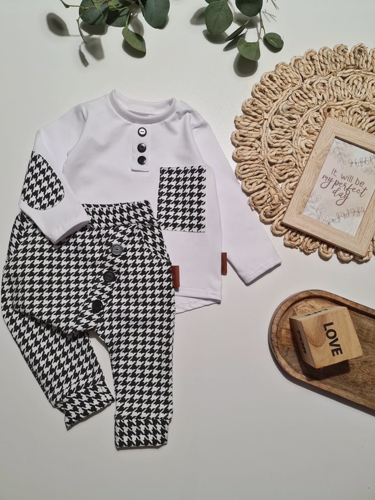 Spodnie Baggy dla Dzieci - Pepitka z Czarnymi Guzikami