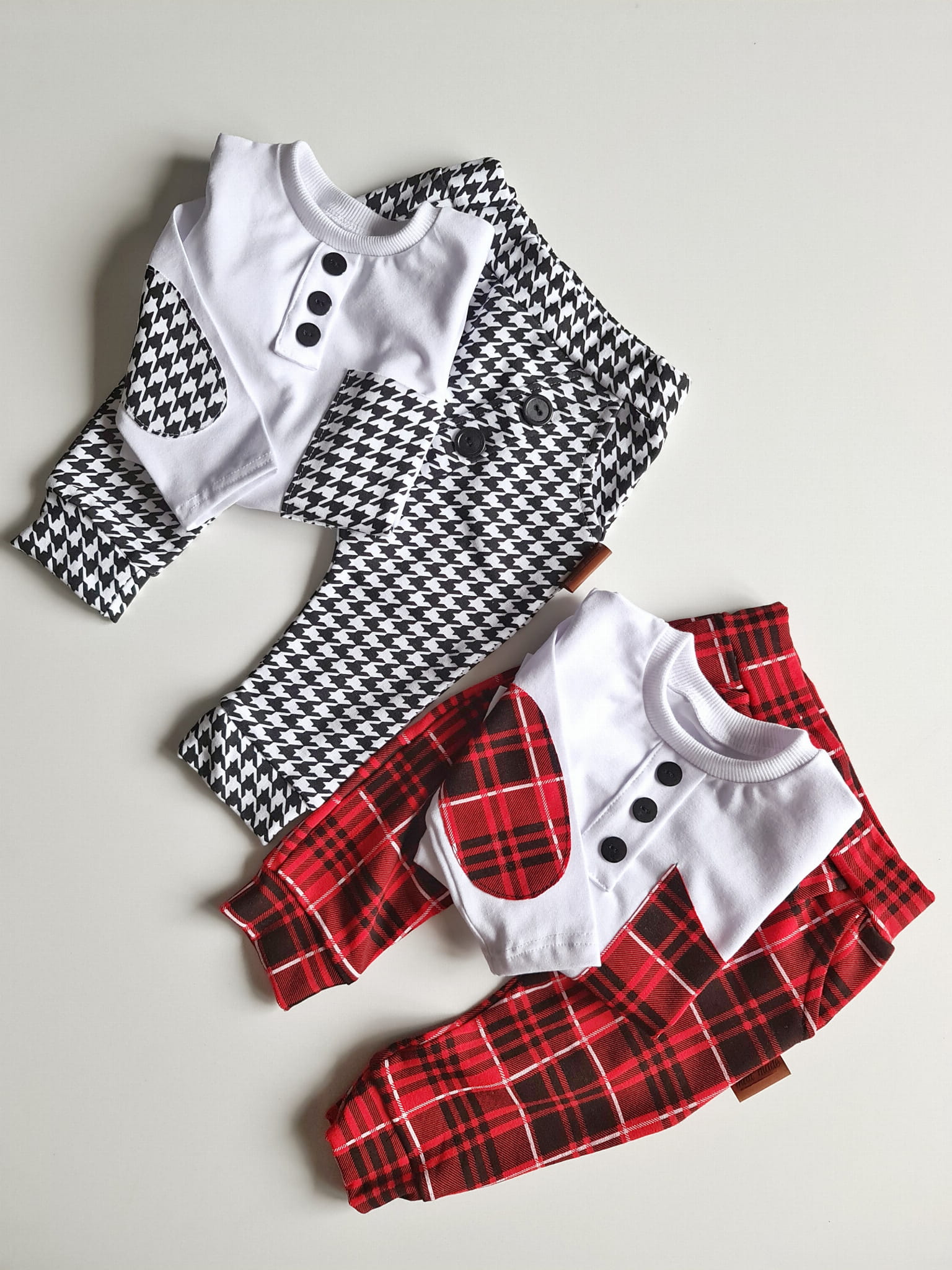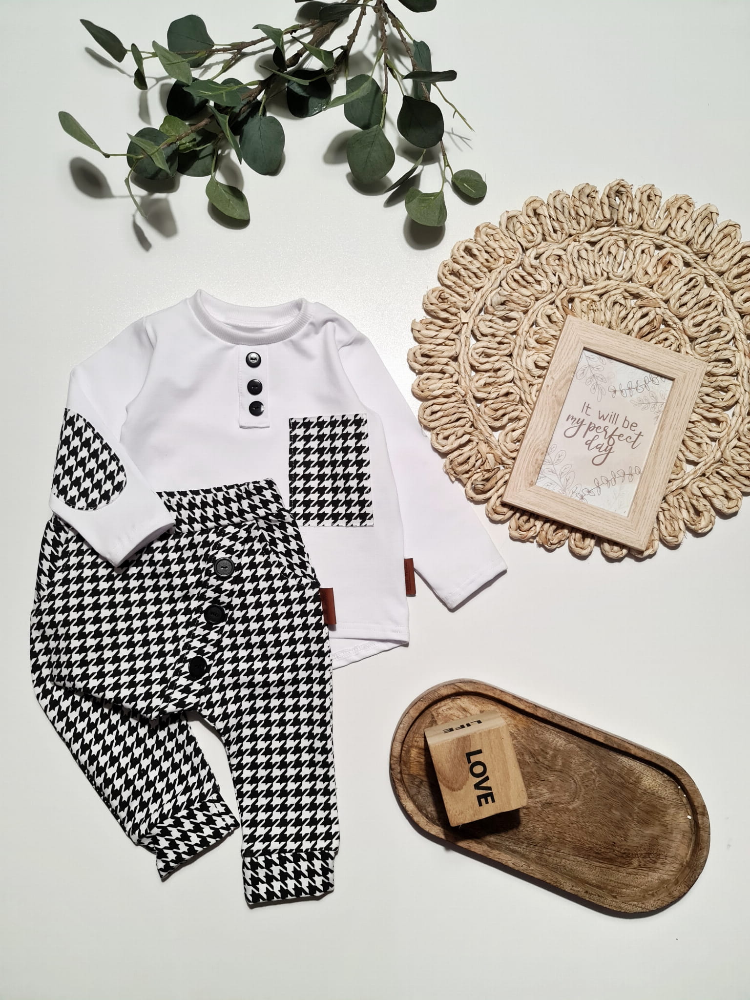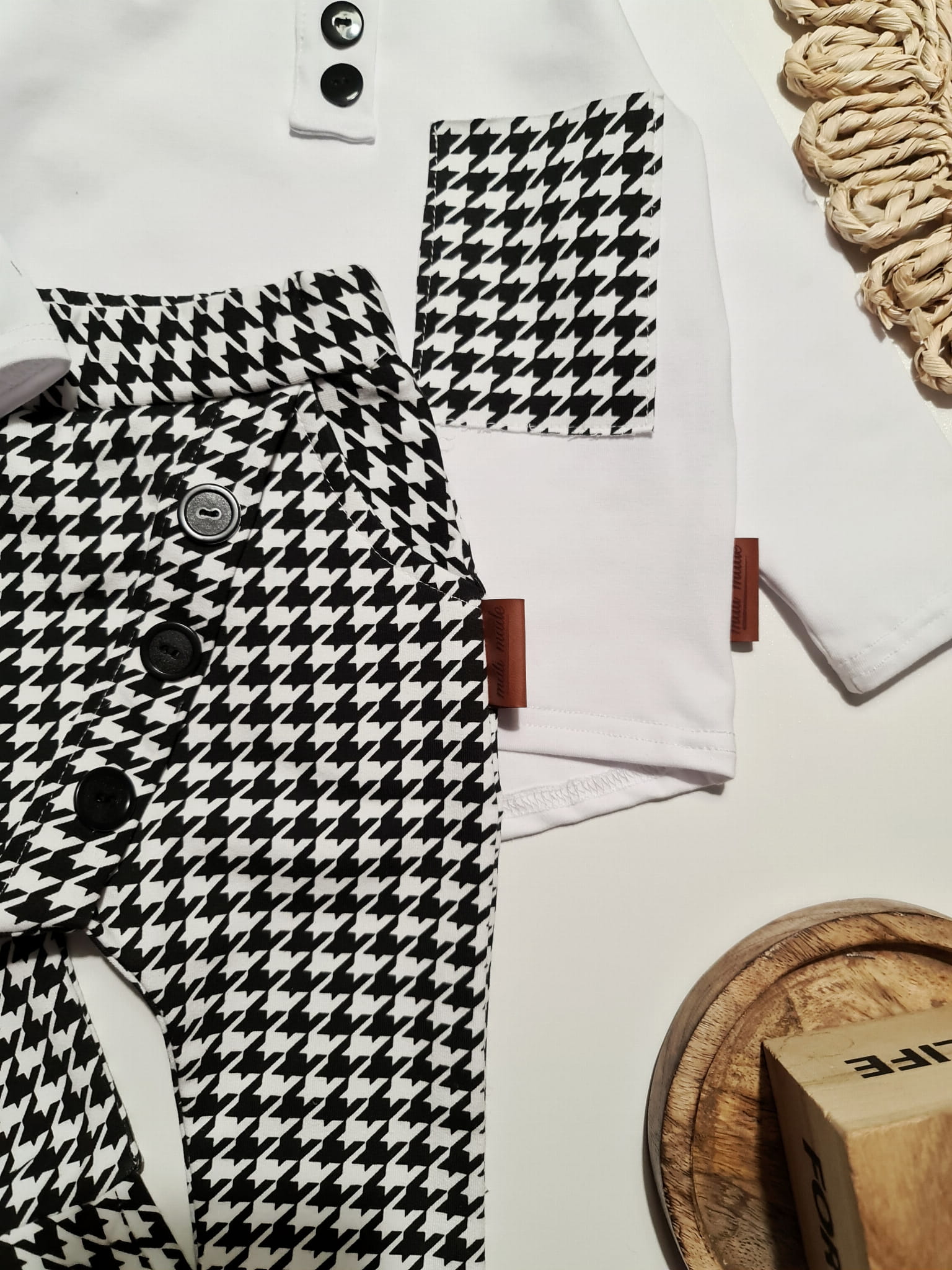Oferujemy spodnie Baggy w eleganckim wzorze pepitki, wzbogacone o czarne guziki, które dodają charakteru i stylu. Idealne zarówno na codzienne przygody, jak i na bardziej formalne okazje, te spodnie zapewniają doskonały komfort i modny wygląd.