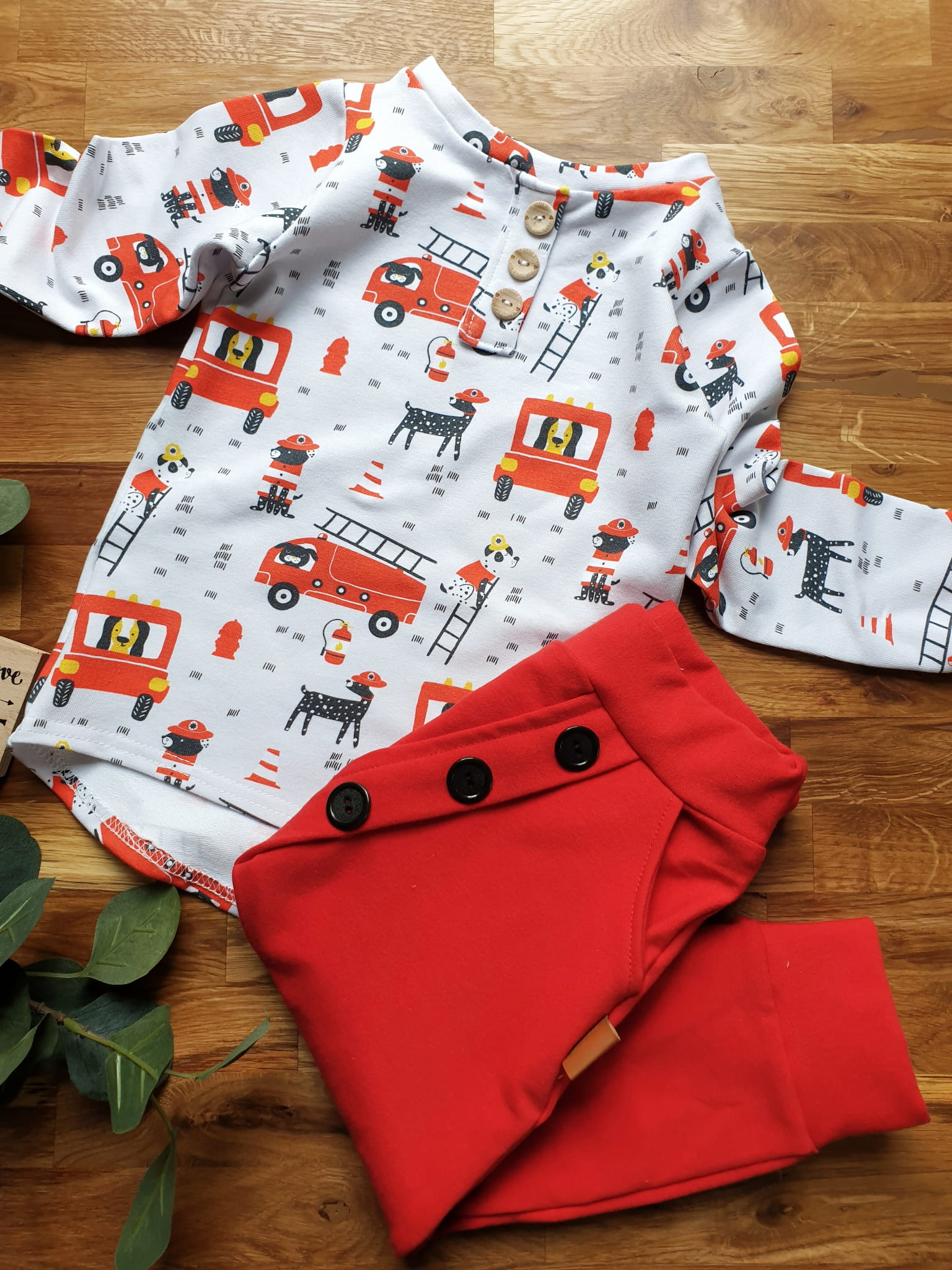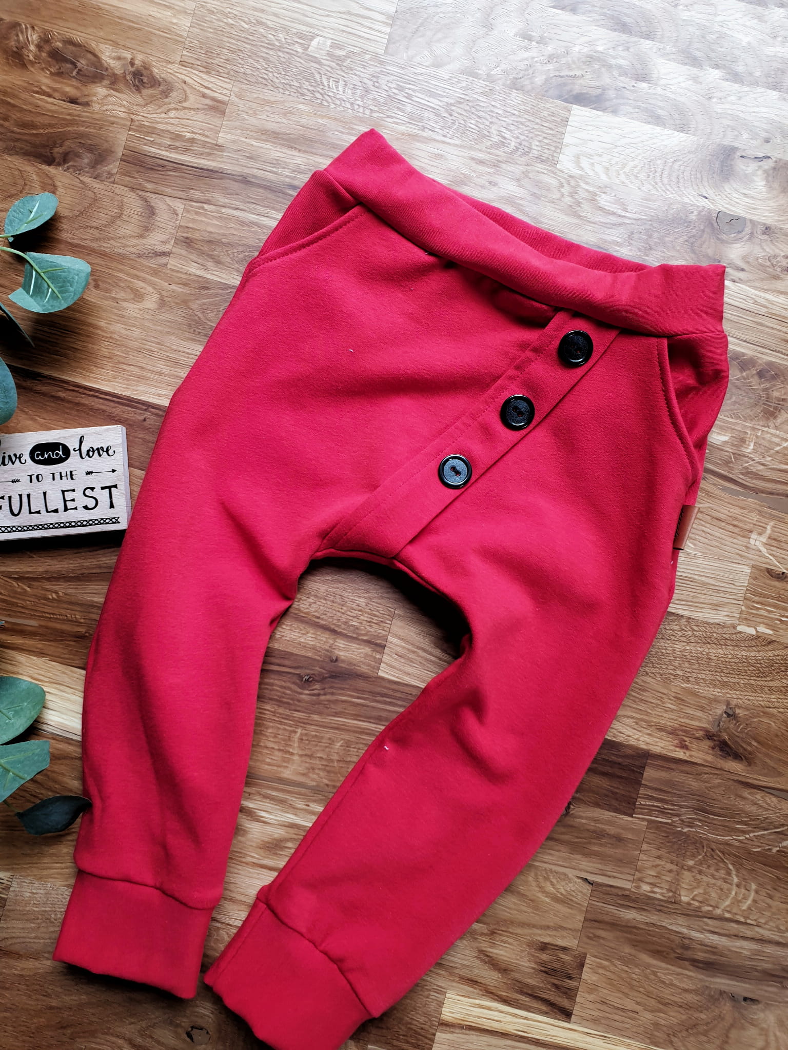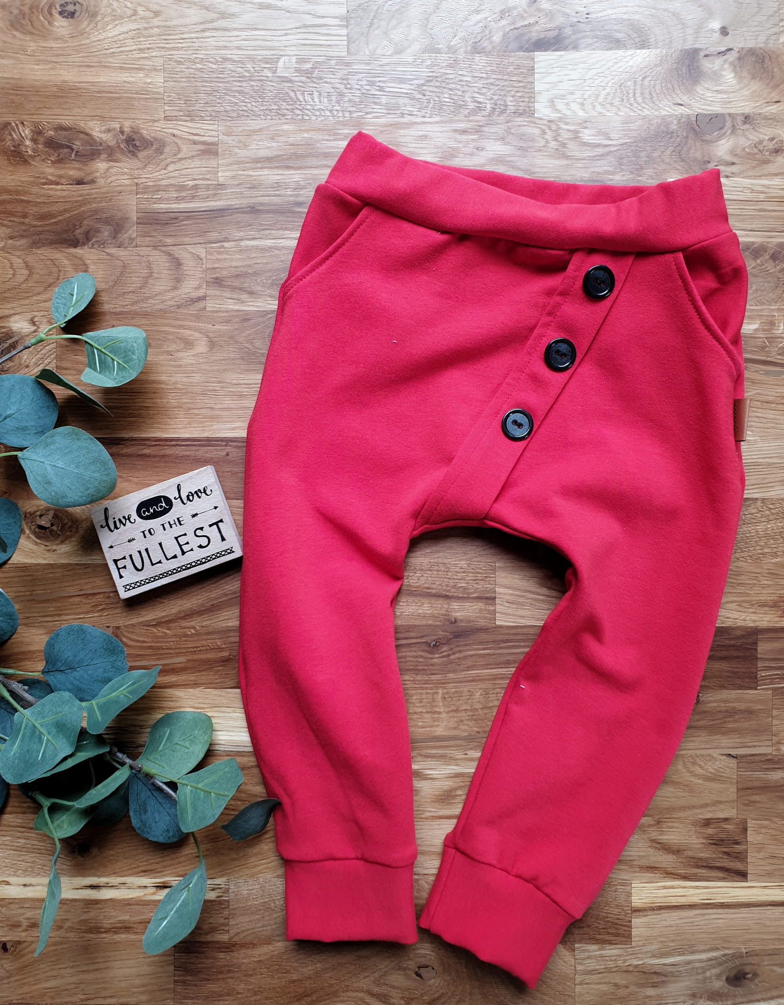 Spodnie dla Dzieci Baggy - Czerwone z Kieszeniami i Guzikami
