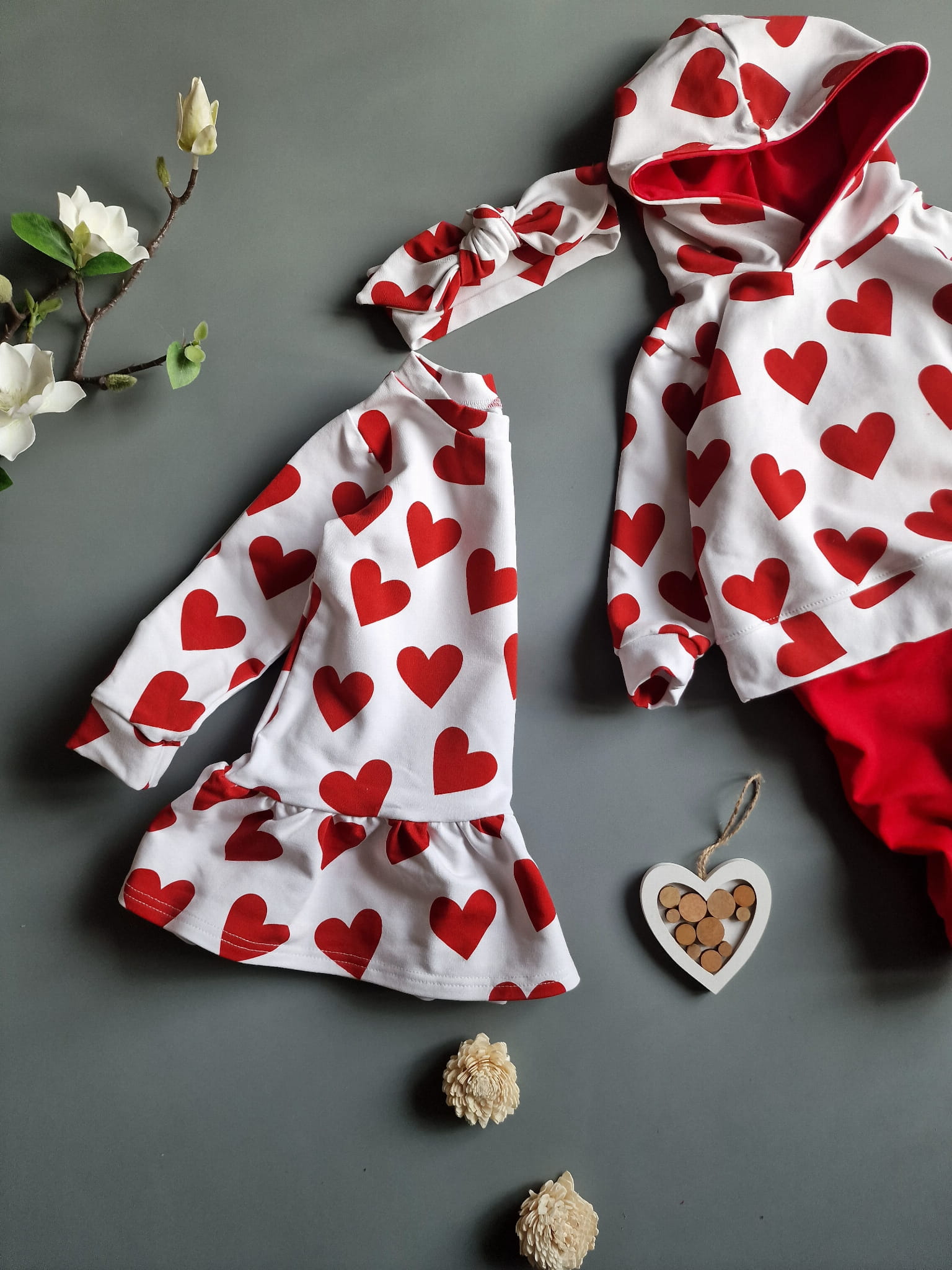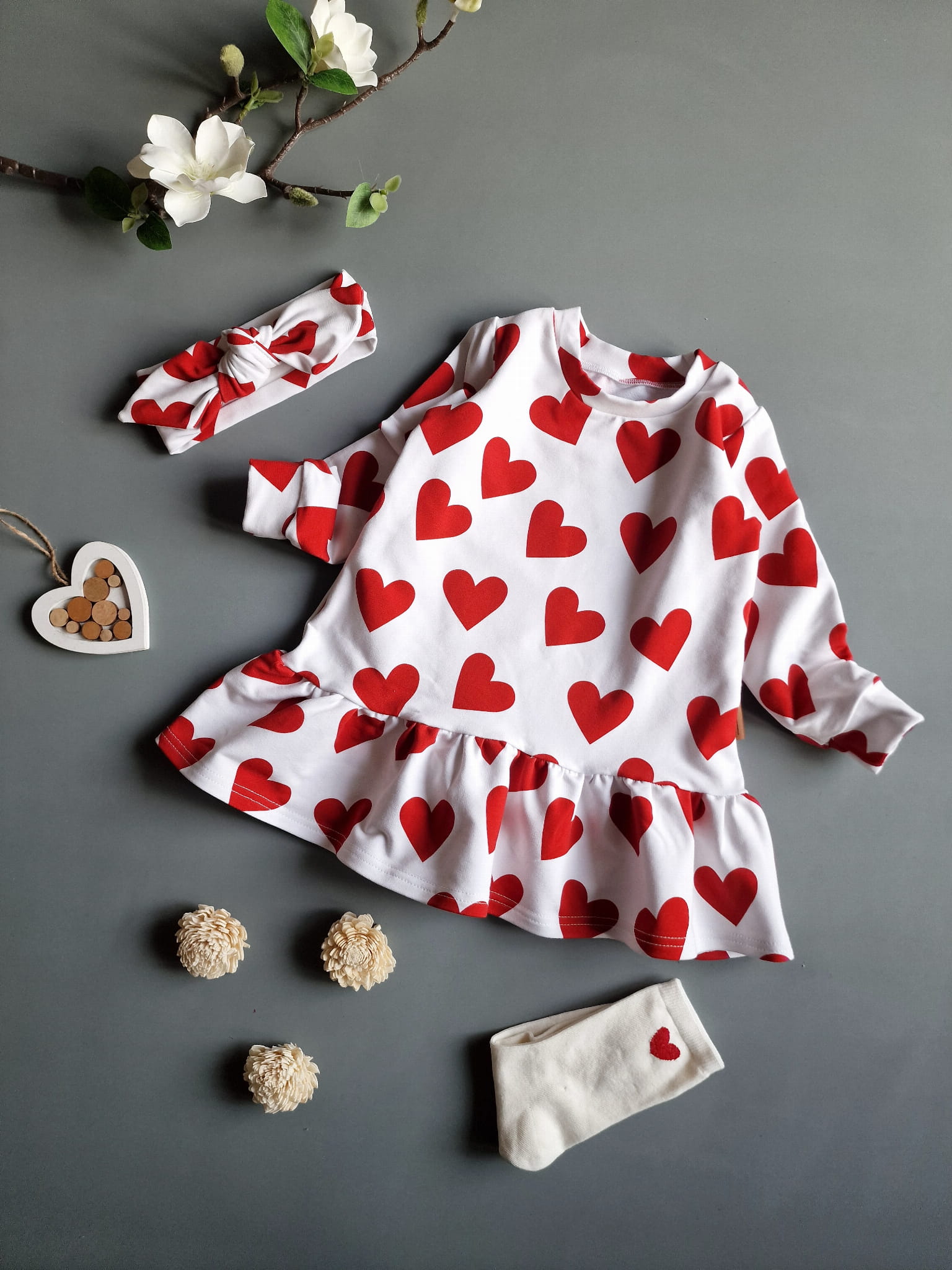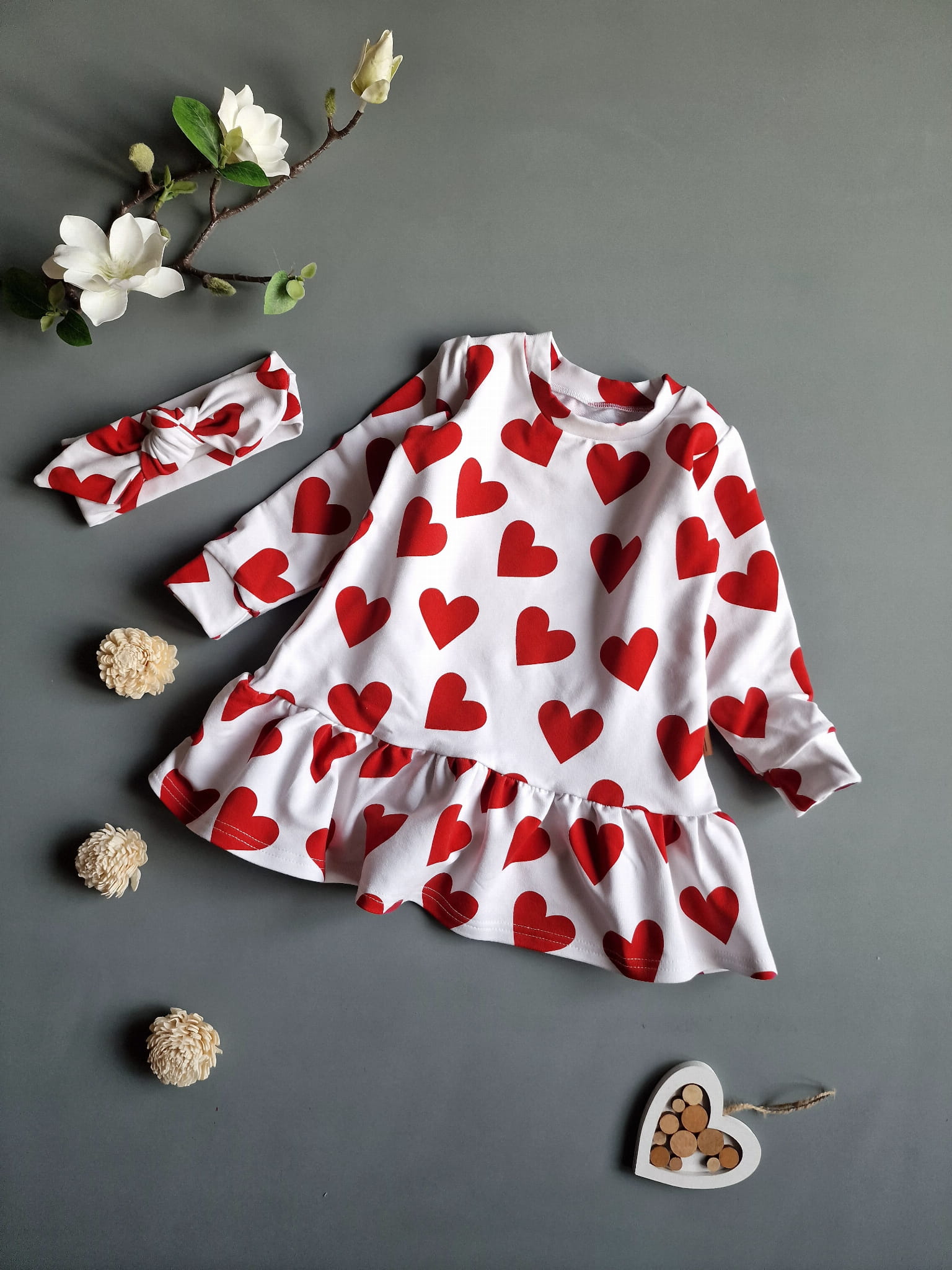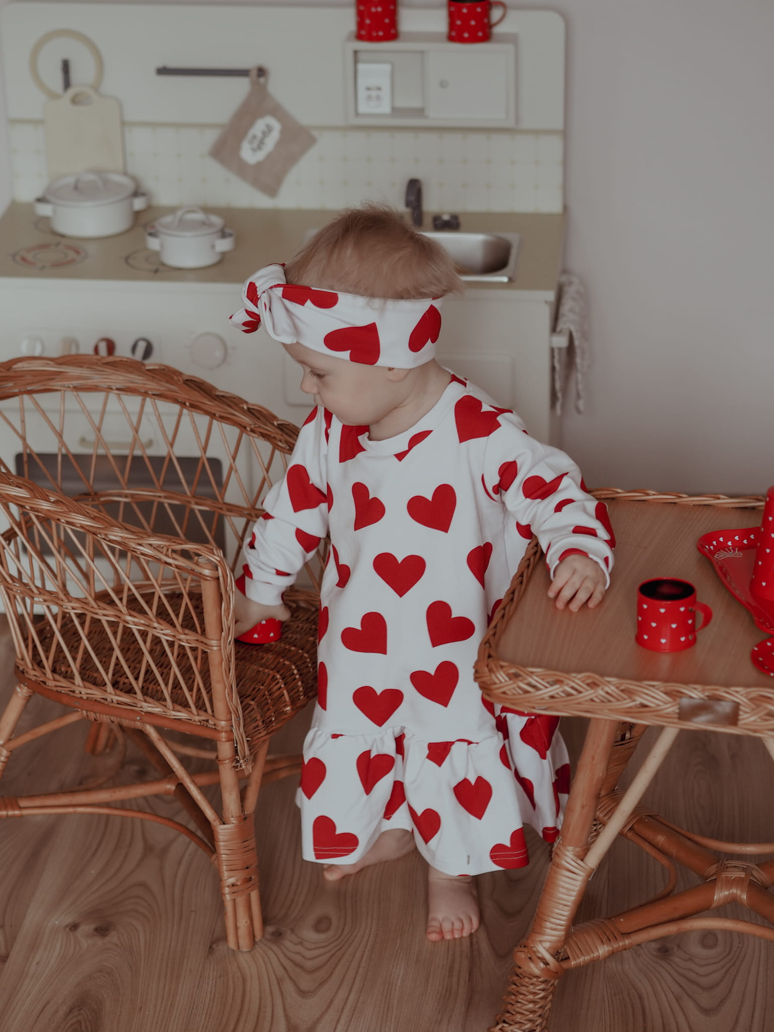 Dziewczęca, wygodna i pełna uroku – sukienka tunika z autorskim nadrukiem serduszek to model stworzony z myślą o codziennym noszeniu. Idealna do przedszkola, szkoły, na spacer czy rodzinne spotkanie. Dzięki miękkiej dzianinie i swobodnemu krojowi zapewnia pełen komfort ruchu, a urocze falbanki przy ramionach dodają lekkości i dziewczęcego charakteru.